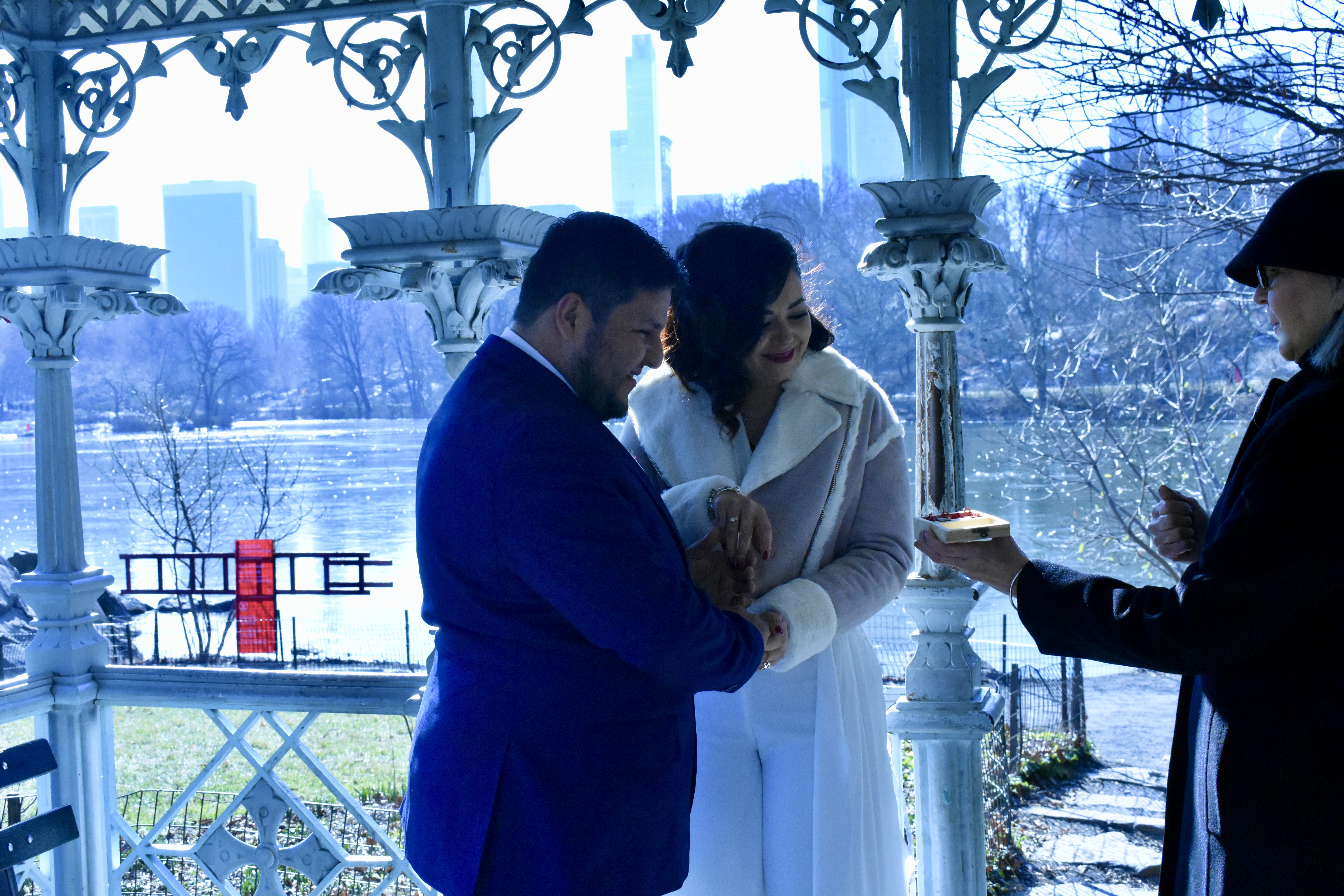 Hicieron sus planes y vinieron desde España a Nueva York, con su mejor amigo, y fue un placer casarlos el pasado 22 de enero en Central Park. Hicimos la ceremonia de la arena, cristal del amor, votos matrimoniales, atadura del lazo en las manos y el momento estuvo siempre impregnado de amor y felicidad, a pesar del frio que intentaba detenernos. Felicidades a los nuevos esposos!!!!