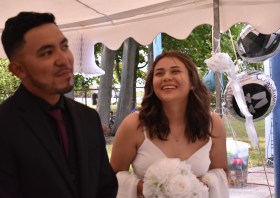 En el jardin del hermoso del hogar de los padres del novio, tuve el placer de unir en matrimonio a los simpáticos Juliana y Michael. Super felices, sonrientes y con buen humor, disfrutaron de cada momento de la ceremonia, donde estuvieron acompañados de sus padres, abuelos, tíos, hermanos y algunos amigos.