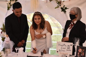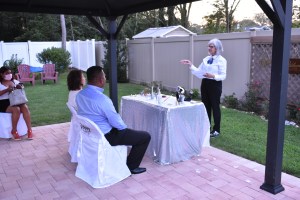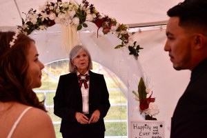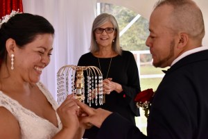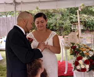Es oportuno mencionar que las parejas deben siempre verificar la responsabilidad y cumplimiento de los oficiantes de ceremonias que contratan. Esta boda había sido convenida con un oficiante de Manhathan, con el cual hubo problemas de ultima hora y a pesar del poco tiempo de aviso, hace una semana pude colocarlos en mi agenda.