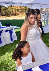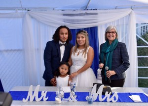 Mayra es de El Salvador y Dorian es de Guatemala. Ambos organizaron su boda para el 24 de octubre, mucho antes de que comenzara la pandemia y favorablemente, sus planes no fueron afectados. La pareja fue presentada por unos amigos en común, y de ello hace 8 años, en los cuales siempre han estado juntos. Ambos tienen un buen humor que los hacia hacer chistes de todo y el grupo de amigos y familiares seguían con atención nuestras palabras. Los invitados no dejaban de aplaudir durante la celebración. La energía fue de alegría y felicidad.