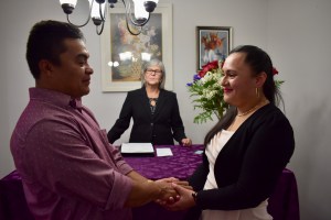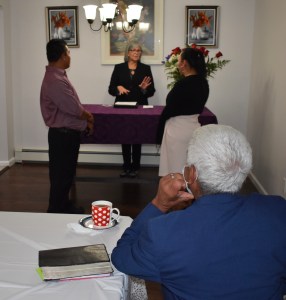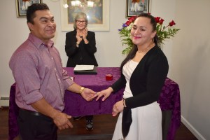 A través de los años, he sido dedicada en investigar, estudiar y comprender las religiones. Por ello, me es fácil adaptar mis palabras a las creencias de la pareja y eso es del agrado de Pastores en el area de Long Island. En este caso, el Pastor Sergio De la Iglesia Bautista Fundamental, fue quién me llamó para solicitar que oficiara, en su casa, la boda de Angelica y Byron. Durante la ceremonia civil, incluimos un momento de palabras y bendiciones del Pastor; quien también sirvió de testigo legal del evento.