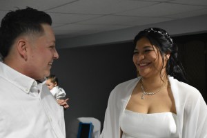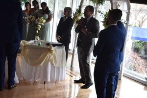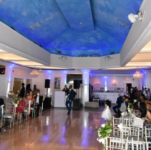 Como el club estaba a maxima capacidad, los invitados iban pasando por un gazebo exterior, donde les hacían el covid test y tomaban la temperatura. Igualmente, uso de mascaras en el evento. Estuvieron presentes, los padres de ambos, tíos, familiares y amigos. Un tío del novio, dio las bendiciones religiosas para la pareja incluyendo lectura de corintios 13.