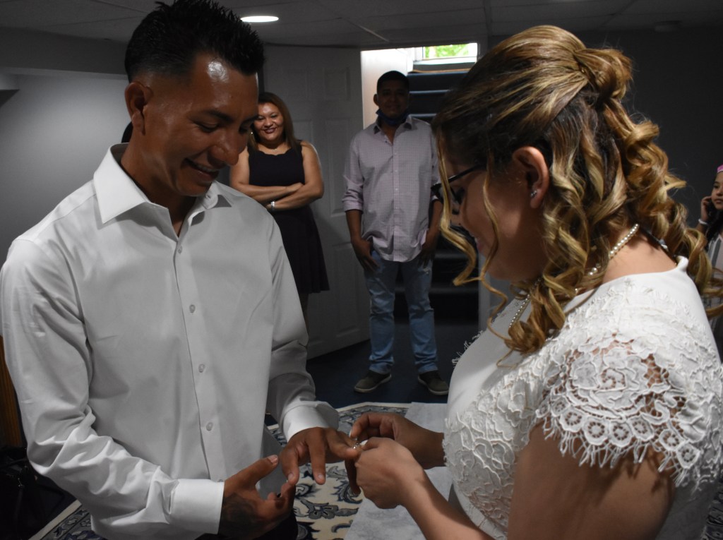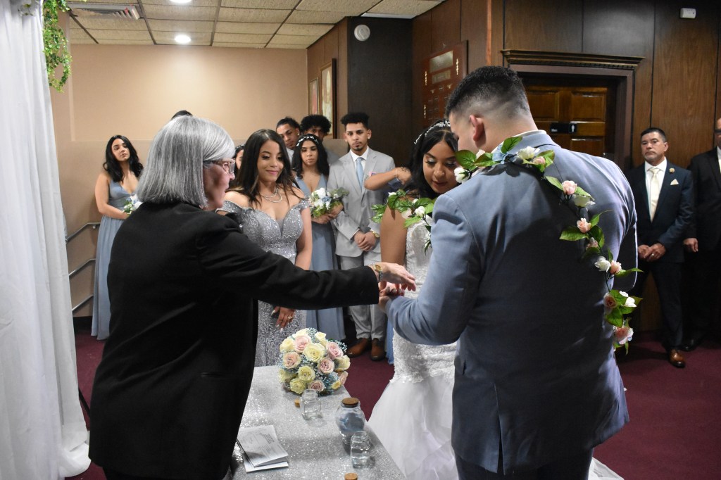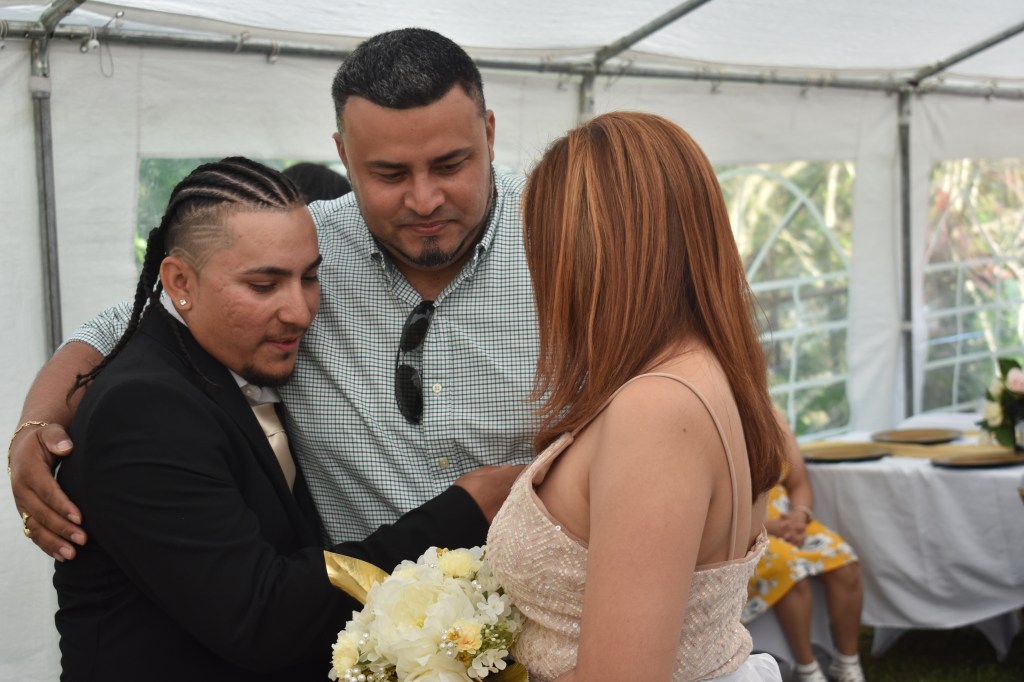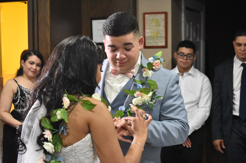 A veces conocemos a nuestra alma gemela cuando somos niños y no lo sabemos. Arisleidy y Adrian jugaban juntos de pequeños, en su país natal, República Dominicana. Dejaron de verse por unos años y se reencontraron en las paginas sociales online e iniciaron un noviazgo a distancia, que pudo contra todos los contratiempos y los llevó a realizar su sueño de unirse en matrimonio a pesar de la corta edad de ambos. Estuvieron acompañados de sus padres, familiares y amigos. Los novios pasaban de risas a lagrimas y contagiaban a sus invitados con las emociones del momento. Un elegante cortejo en colores cálidos pasteles y en el lindo Knights of Columbus de Bayshore.