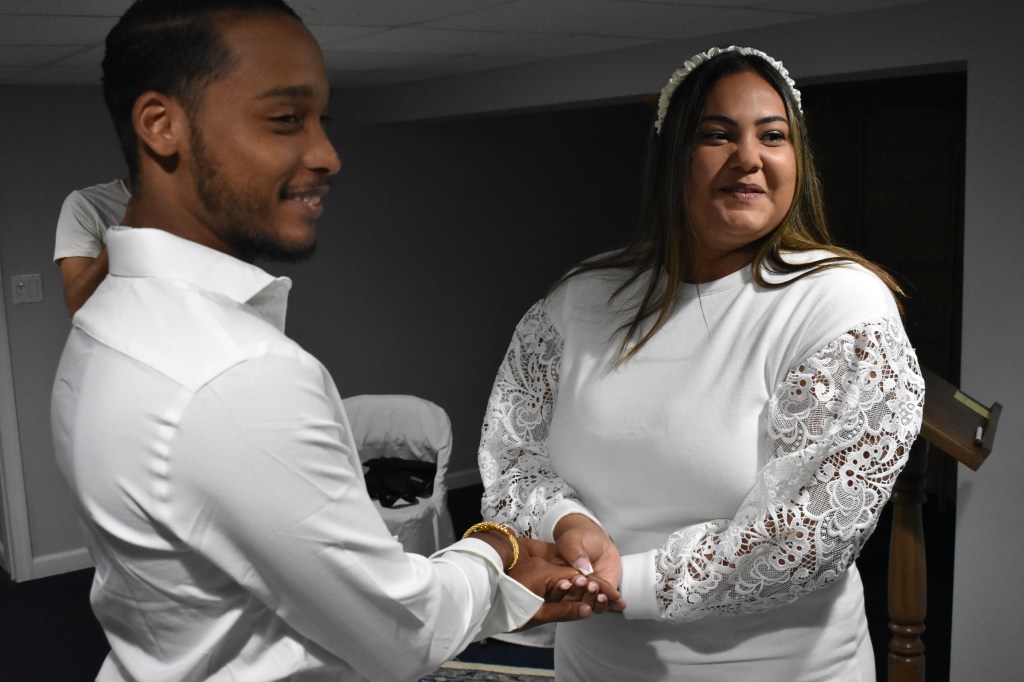 Larianyu y Freili, dos jóvenes de 21 y 22 años, ambos de República Dominicana, planificaron casarse el 10 de junio e hicieron cita con un oficiante que al llegar el dia, les dijo que no podía atenderlos. Con tristeza comentaron con amigos y uno de ellos les recomendó que me llamaran y así lo hicieron. Por algo me dicen “ministro correcaminos”. No me agrada saber de esos oficiantes embarcadores que le rompen el Corazon a las parejas, así que les di cita para ese mismo dia a las 7 PM. Vinieron acompañados del hermano de la novia y los tres disfrutaron a su manera, jugando bromas unos a otros.