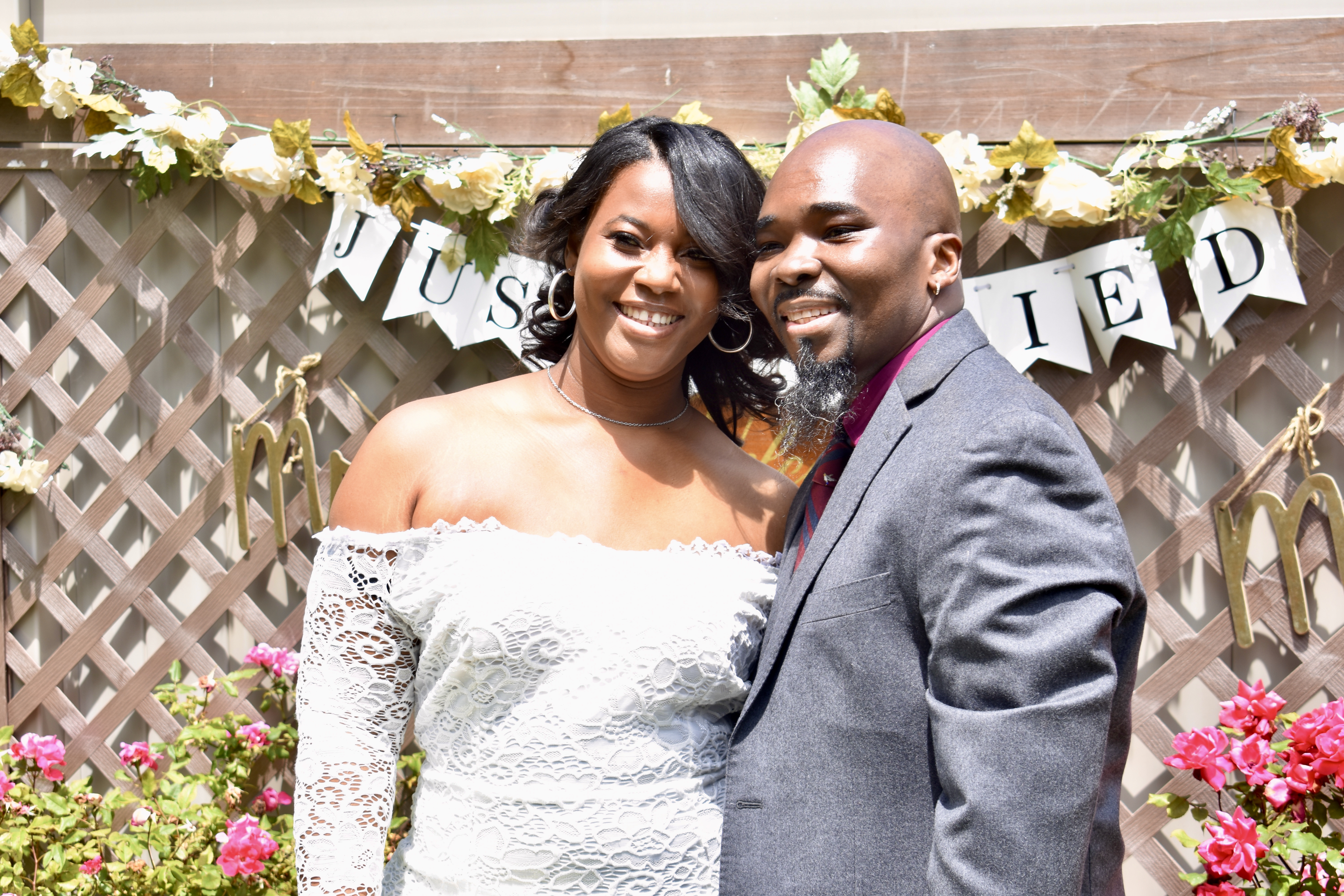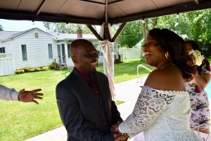 Dexter es un señor de Jamaica, con una constante sonrisa y una manera romántica de contar historias sobre su novia. El 11 de junio, llegó super temprano, acompañado de su hermana y la novia vino una hora después. Eso dio tiempo de oír anécdotas de su noviazgo. Dexter trabajaba como operario en el subway, con parada en Jamaica, donde Delsy se montaba para ir a trabajar. Un dia el tren ya había cerrado y Dexter la vio venir corriendo. Sin pensarlo, abrió las puertas y la invito a subir. El sabia que arriesgaba su empleo al hacerlo, sin embargo, fue amor a primera vista y desde ese dia, estuvo pendiente de verla subir y bajar del tren. El dice: “yo la veía y ella no me miraba”. Comenzó a saludarla y en unos meses se atrevió a invitarla a salir y con su constancia, recibió amor de vuelta. Ahora ambos ya tienen varios años juntos y se unen en matrimonio.