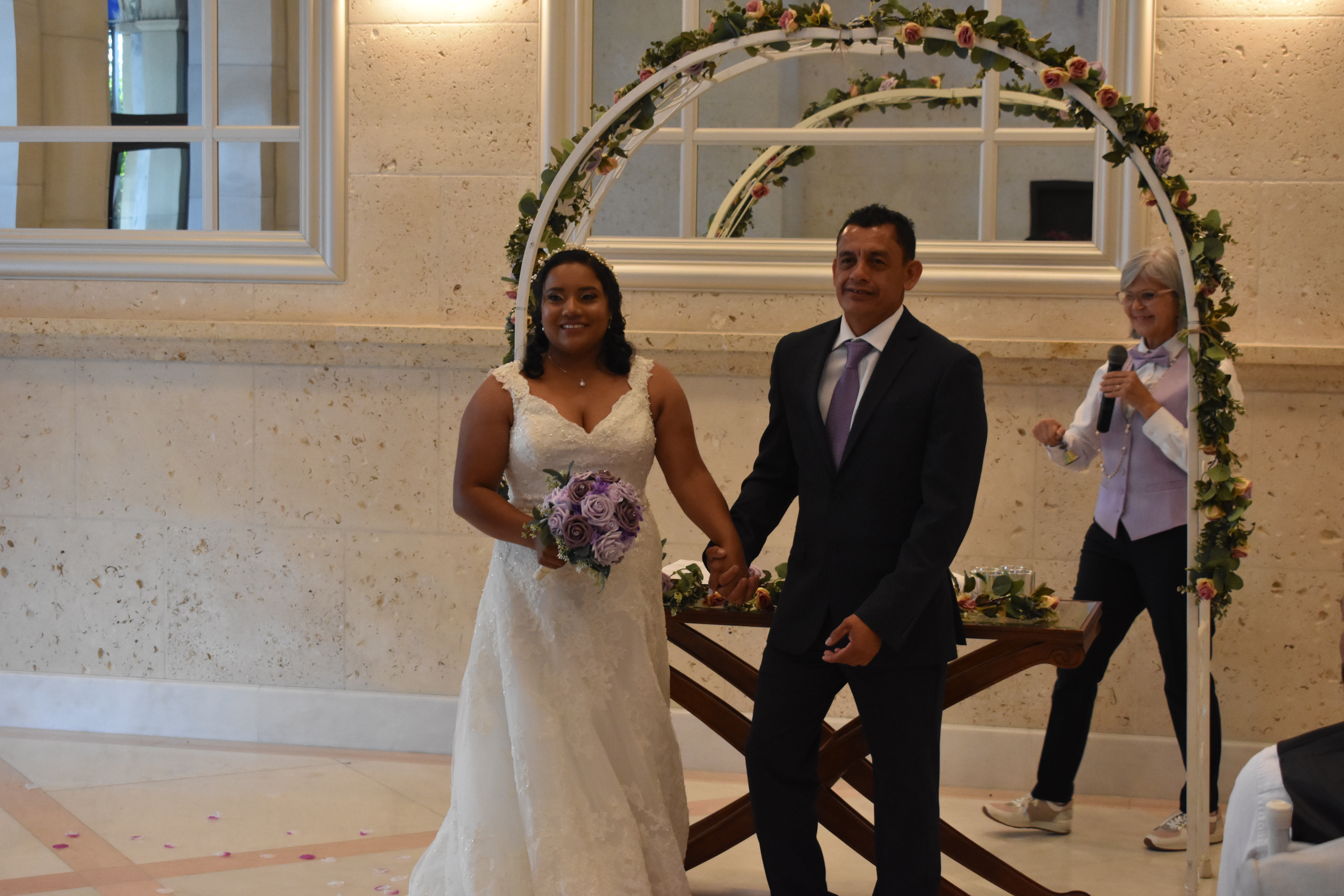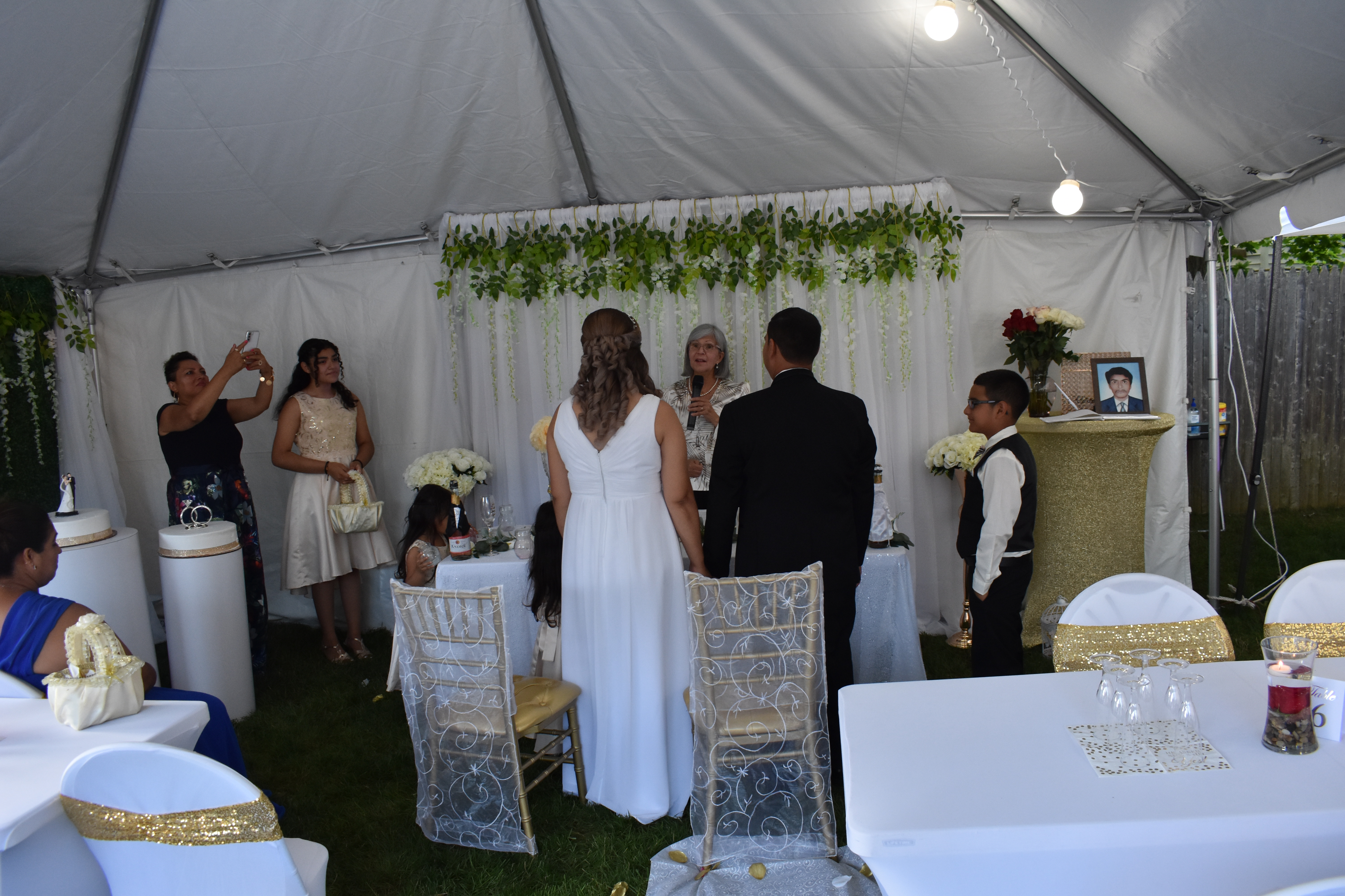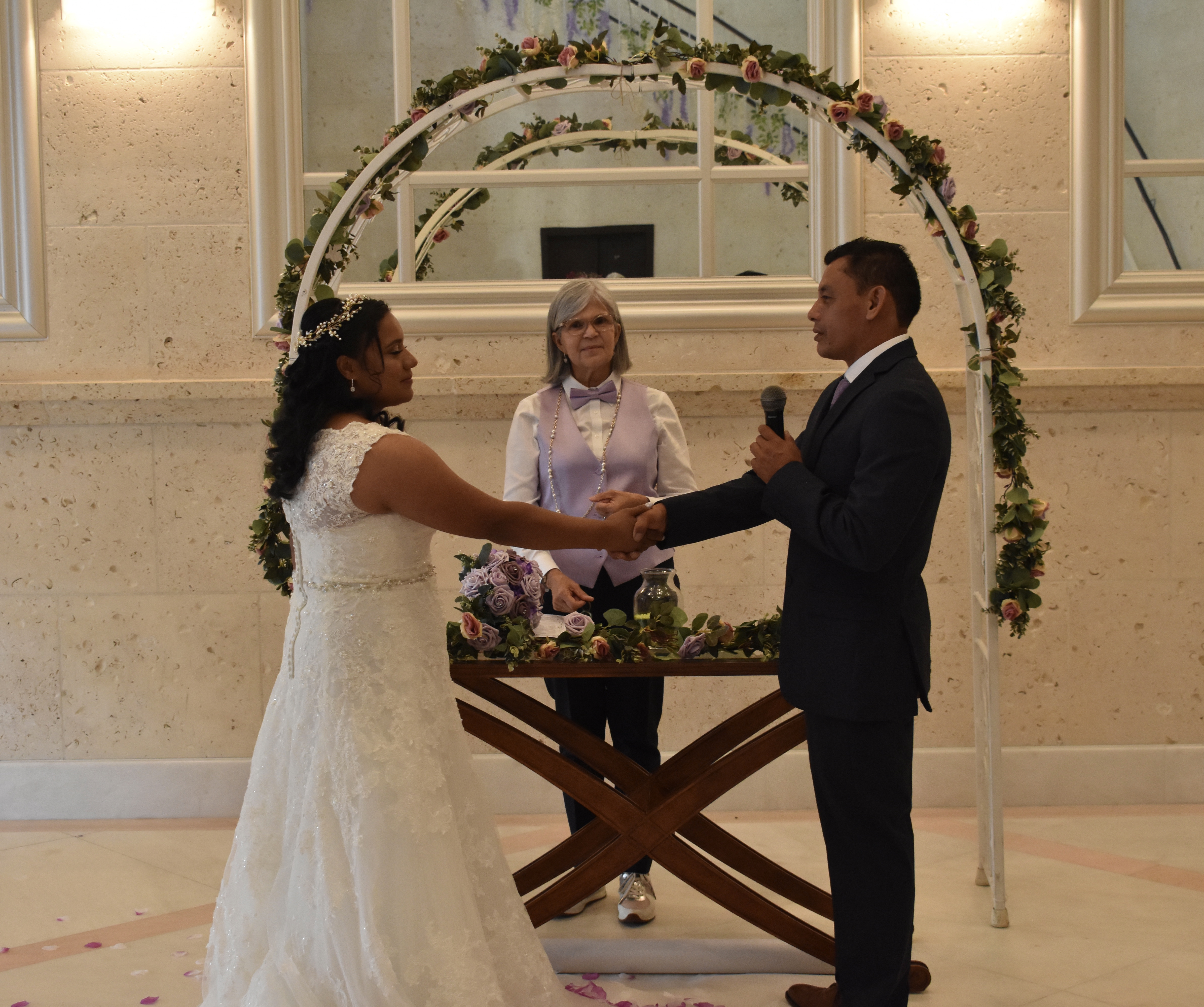 en ese matrimonio. En este caso, fueron referidos por la simpática y amable, Elizabeth Castillo, a quien tuve el honor de casar el 25 de agosto del 2018, vino desde Texas para asistir a la ceremonia de Rosa, a quien quiere como a una hermana. En la foto, se acerca a hacer bromas y a tomar fotos.