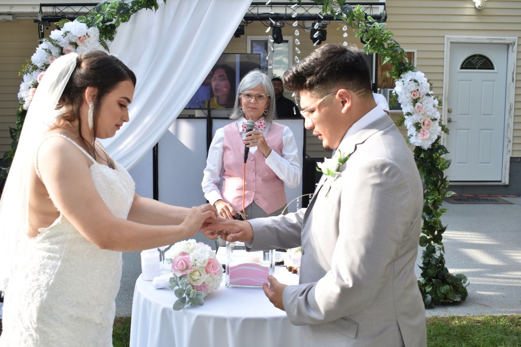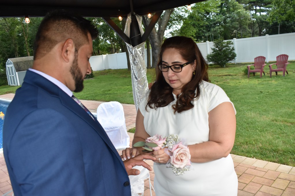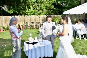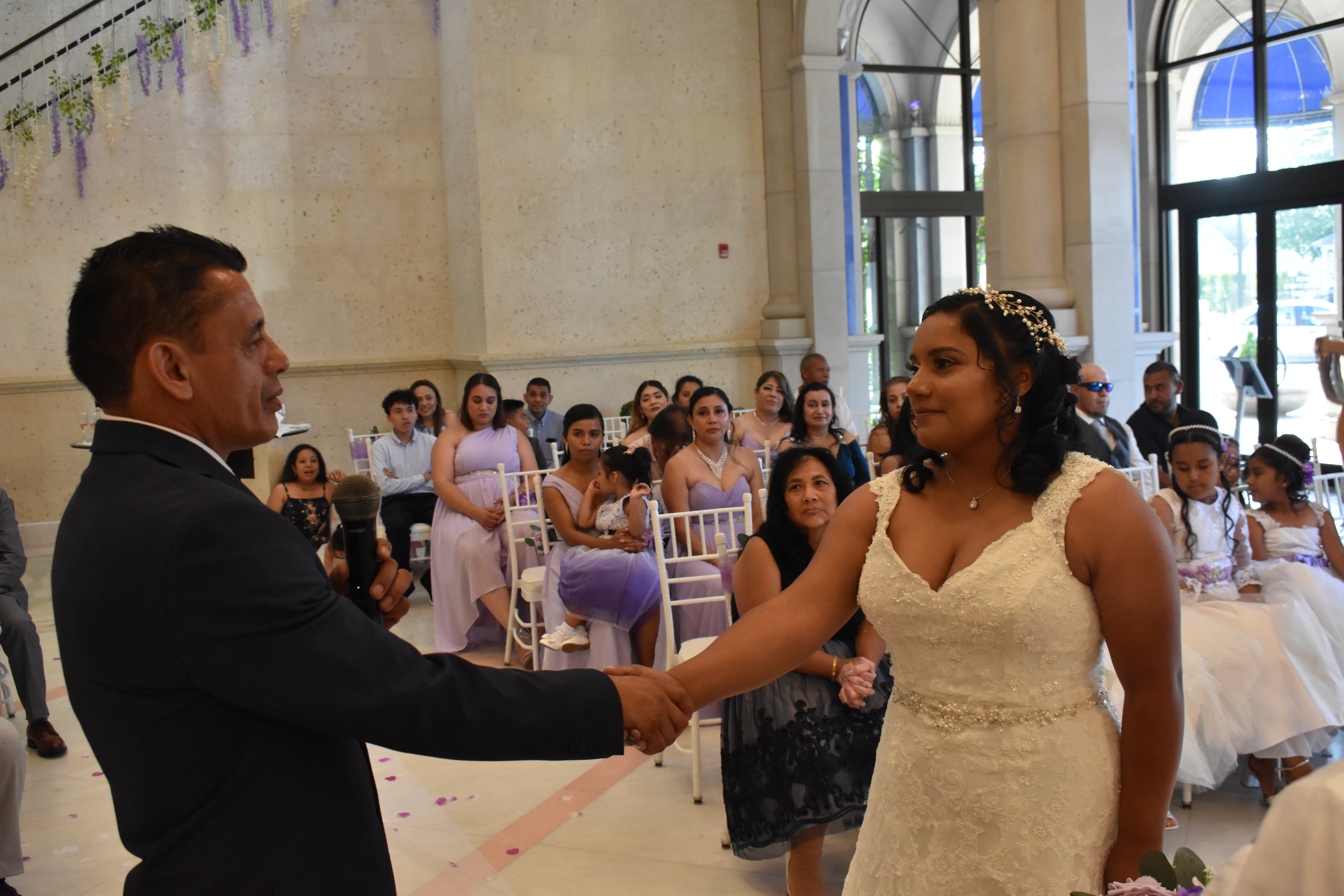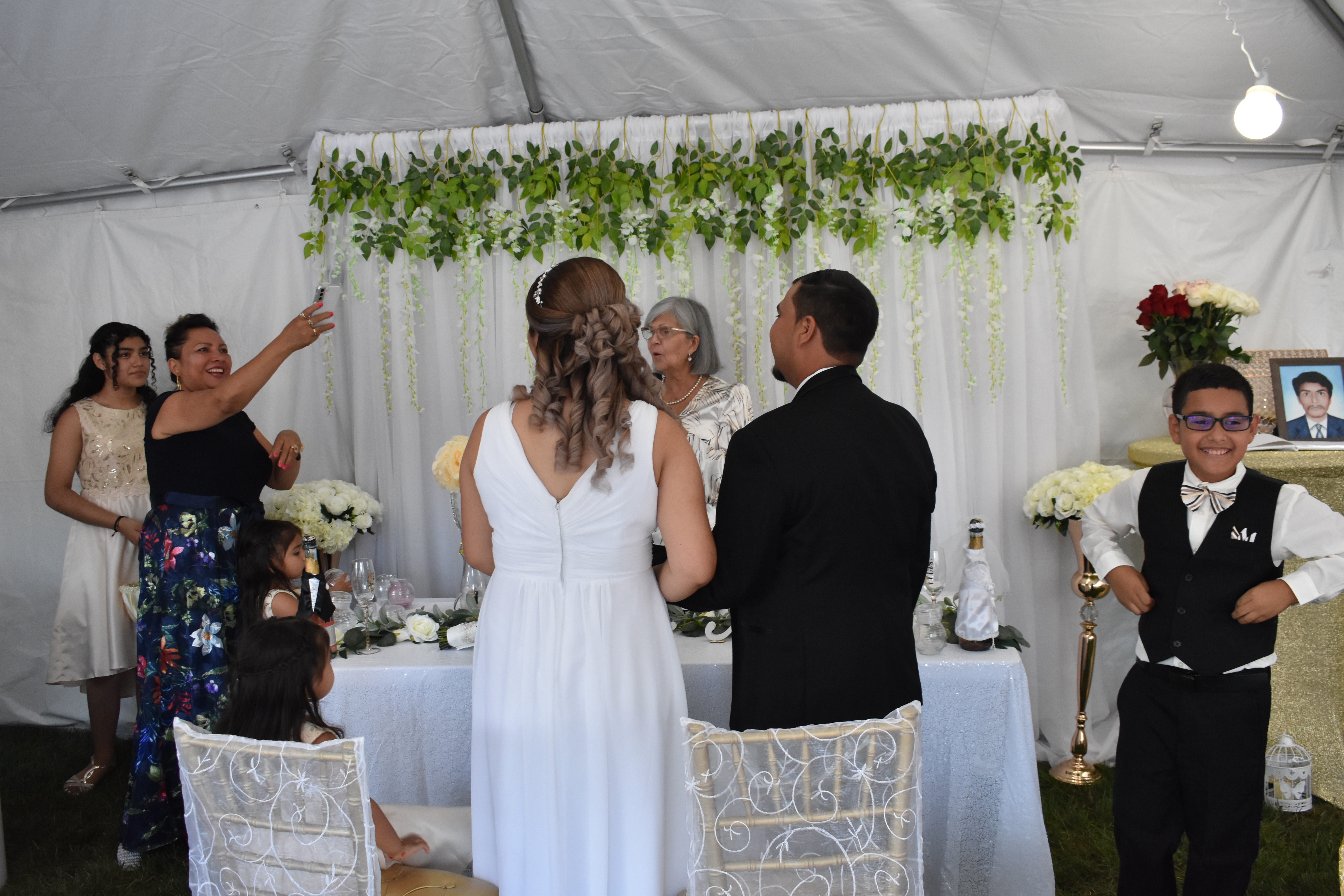 en ese matrimonio. En este caso, fueron referidos por la simpática y amable, Elizabeth Castillo, a quien tuve el honor de casar el 25 de agosto del 2018, vino desde Texas para asistir a la ceremonia de Rosa, a quien quiere como a una hermana. En la foto, se acerca a hacer bromas y a tomar fotos.
