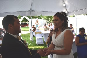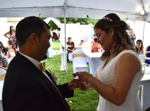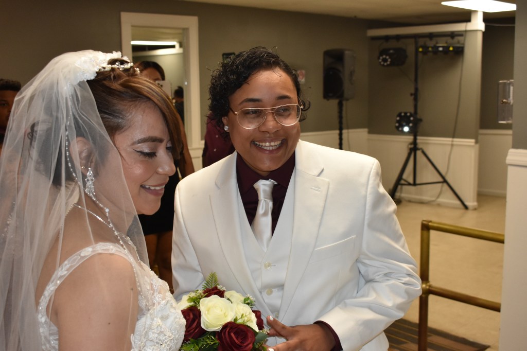 A veces no hace falta decir palabras para entenderse; especialmente, cuando surge un sentimiento de amor entre dos personas. Así es el caso de María, de El Salvador y Douglas, de Nueva York. El lenguaje que hablan entre ellos es el Amor y ese es suficiente para entenderse mutuamente. El novio dijo sus promesas en ingles y la novia en español. Ambos rieron pícaramente al hacerlo y luego se unieron en un fraternal abrazo al ser unidos legalmente en matrimonio.
