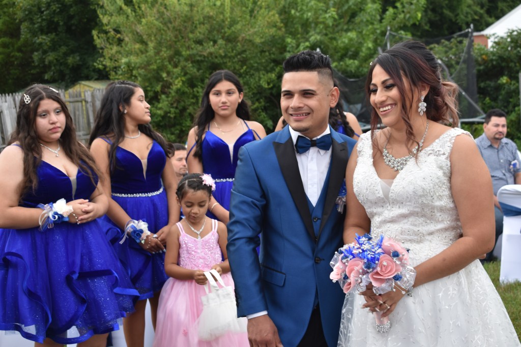 Karla y Santiago, ambos de El Salvador tienen quince años de conocerse y once de estar enamorados. Desde que cursaban 8vo. grado en bachillerato. Tienen un bebe de 18 meses y uno en camino. Hace un par de años tuve el placer de unir en matrimonio a la hermana del novio, quien en esta oportunidad fue la testigo y madrina de la boda.