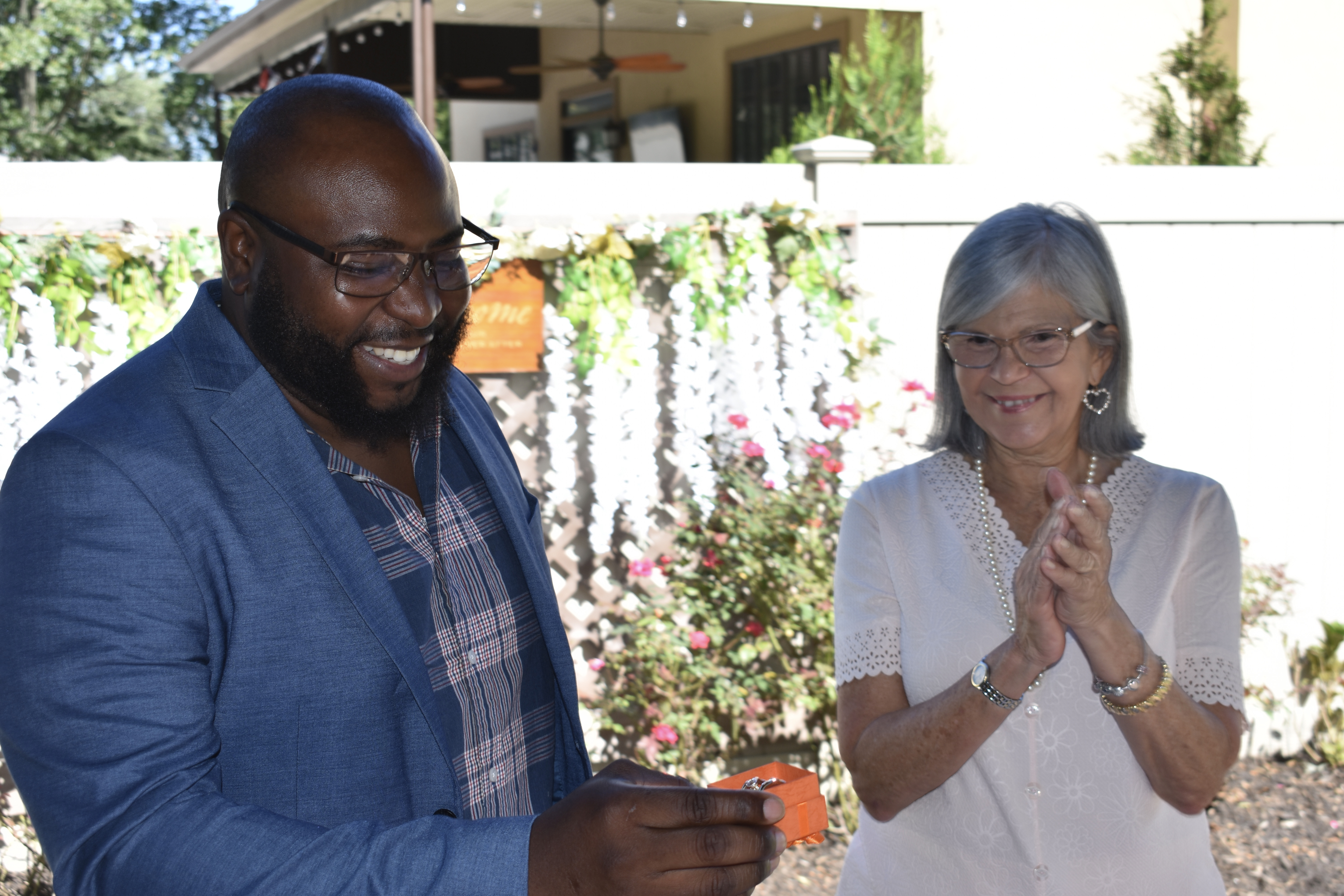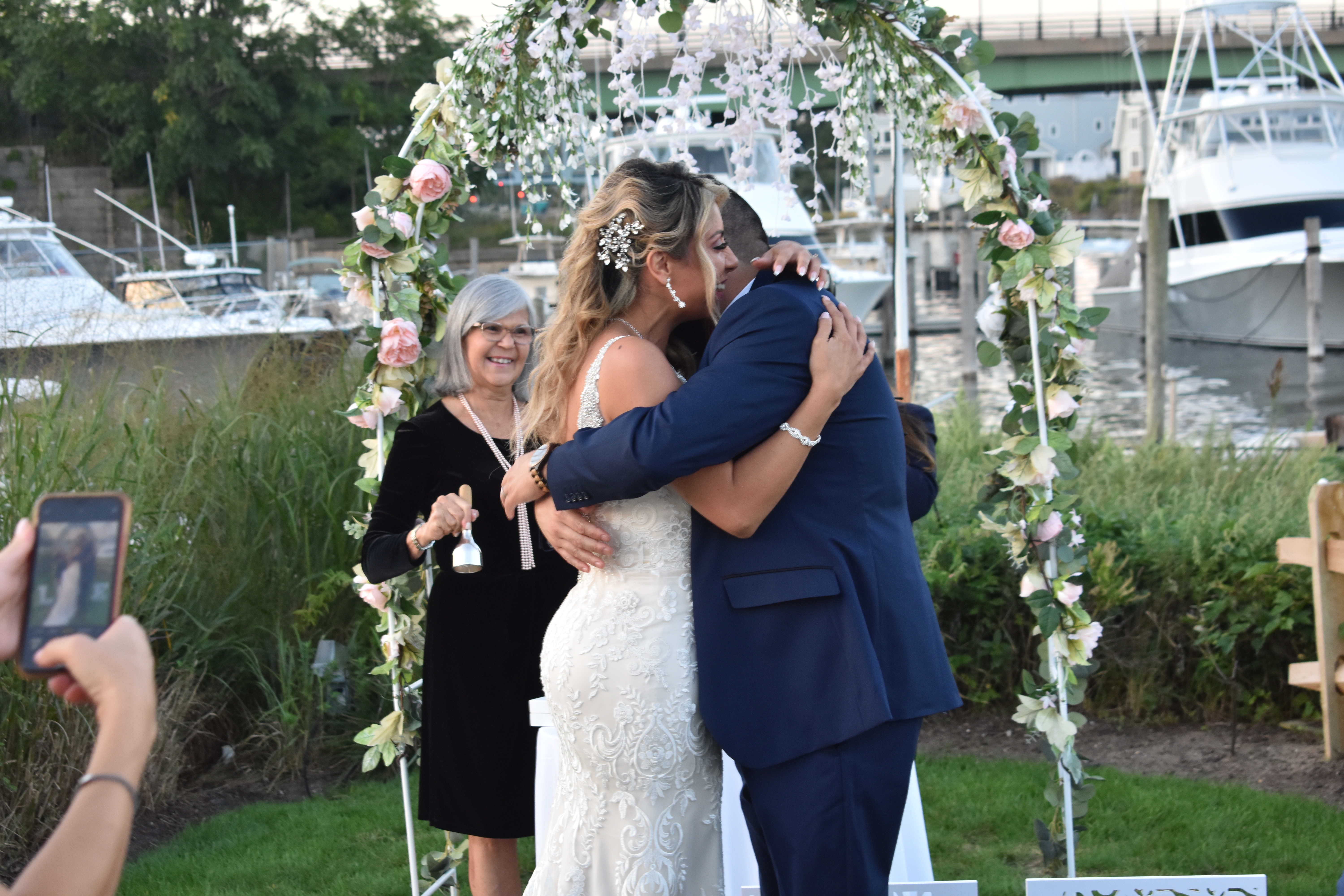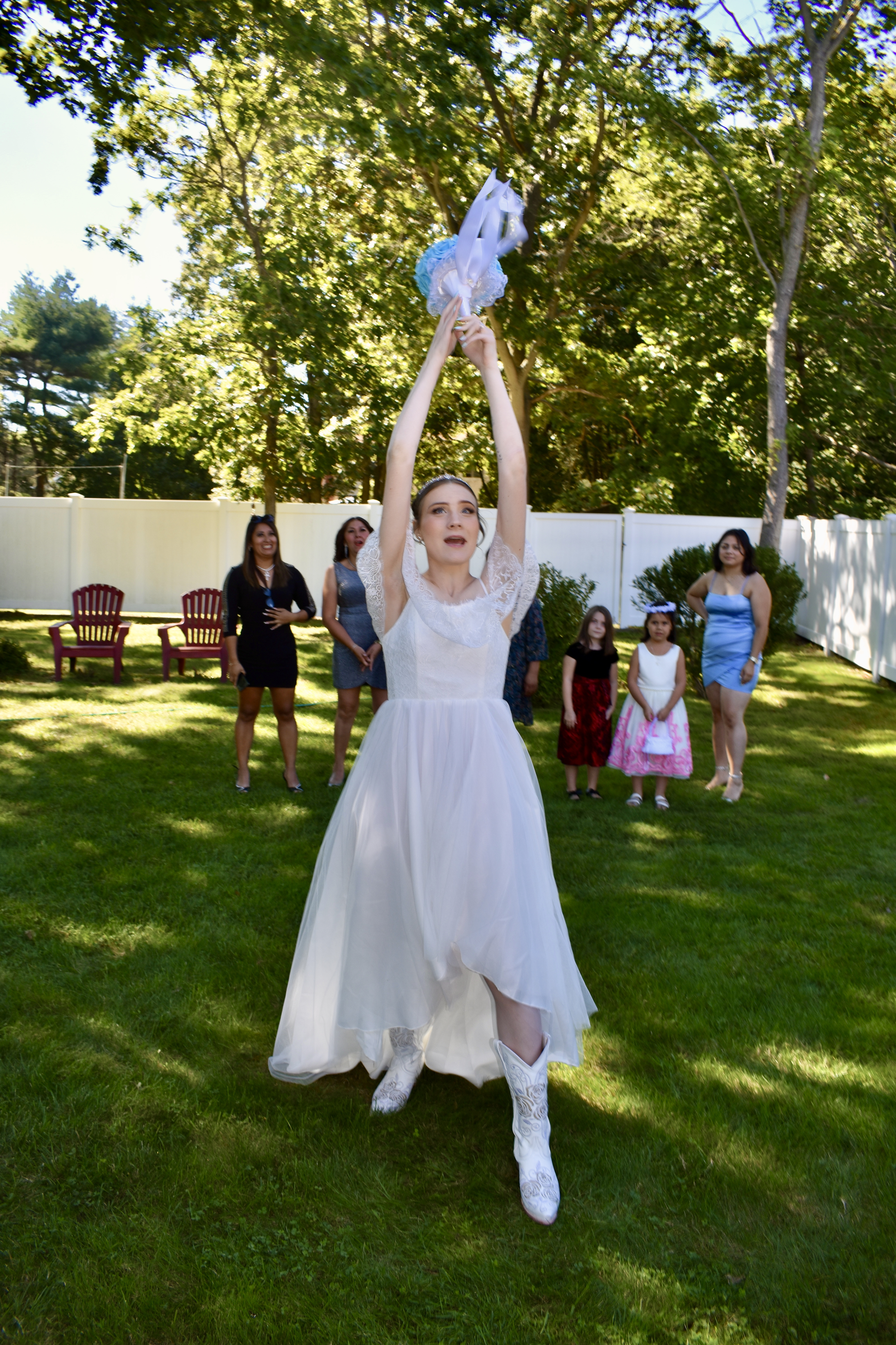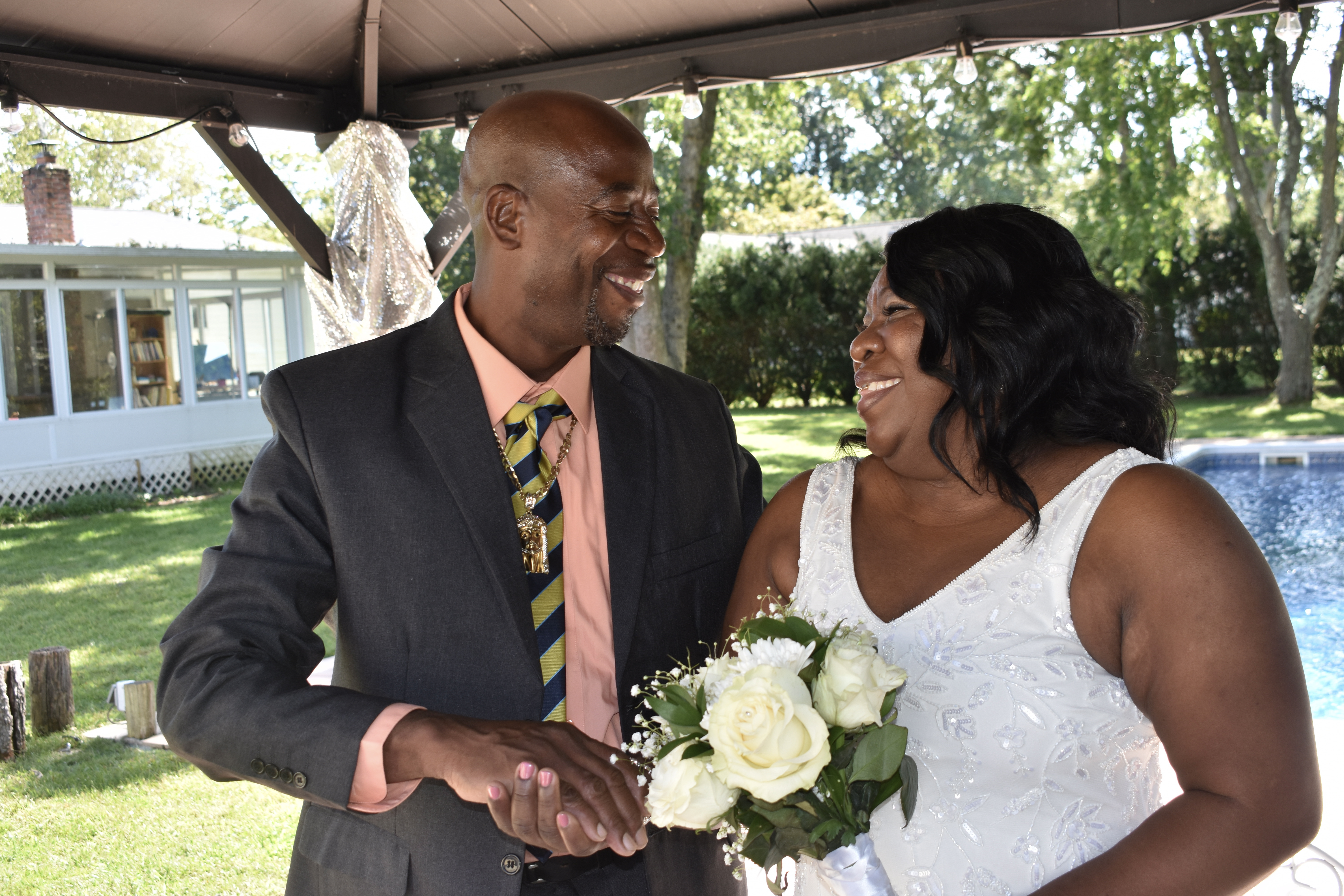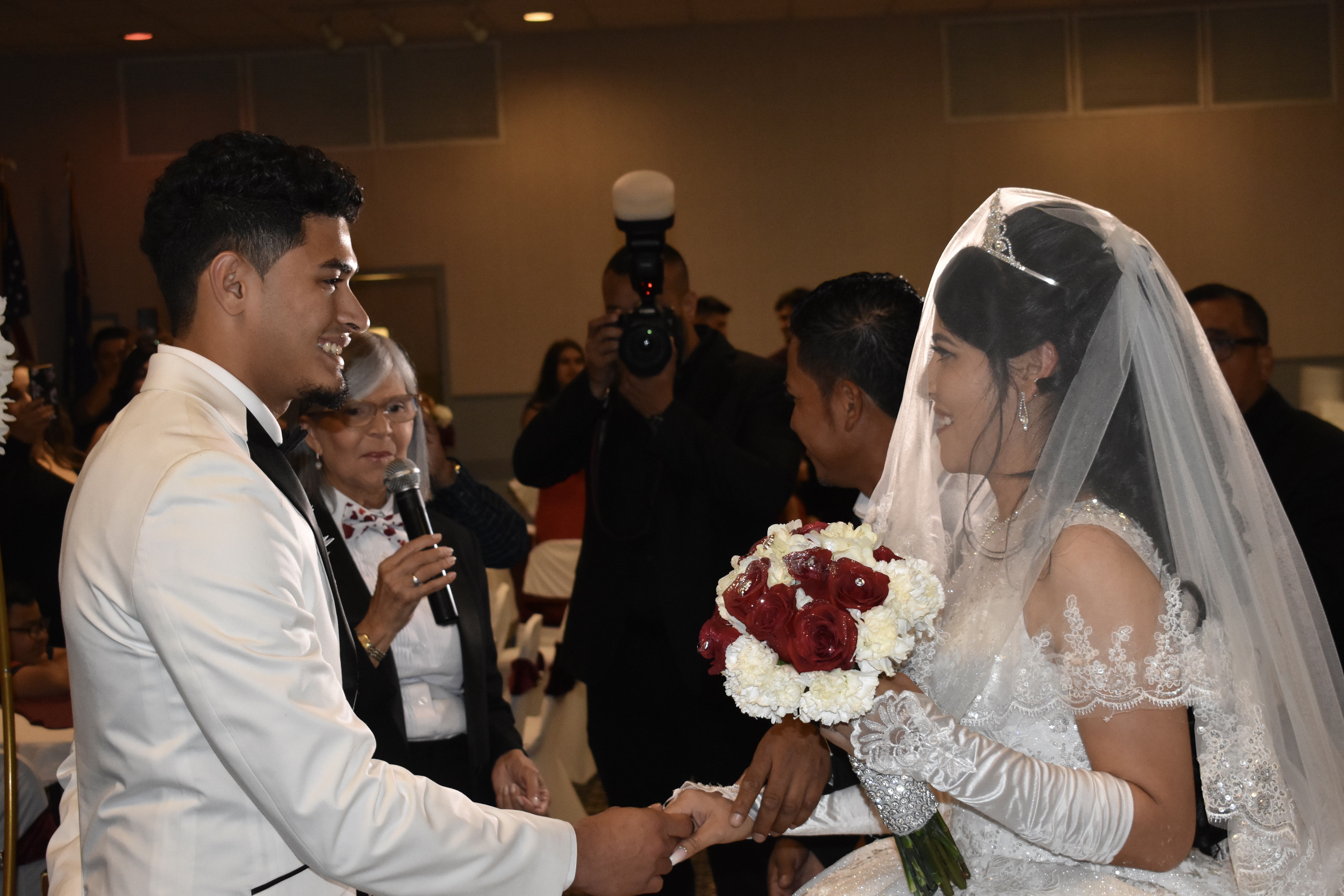 Andrea y Fabian, crecieron en el mismo barrio, en Colombia. Están juntos como pareja, desde que tenian 11 y 14 años de edad, respectivamente. Tienen dos perritos que formaron parte del cortejo. La decoración tenia tonos rosa viejo y habían detalles de su amor en cada rincón del jardín. Los padres de ambos estuvieron presentes, así como un grupo de familiares y amigos. Para el ritual del lazo, la novia, divertidamente, en lugar de usar el tradicional, hizo que su madre les uniera con un mecatillo, lo cual dio un toque diferente y simpático al momento. La boda fue el 2 de octubre, 2021.