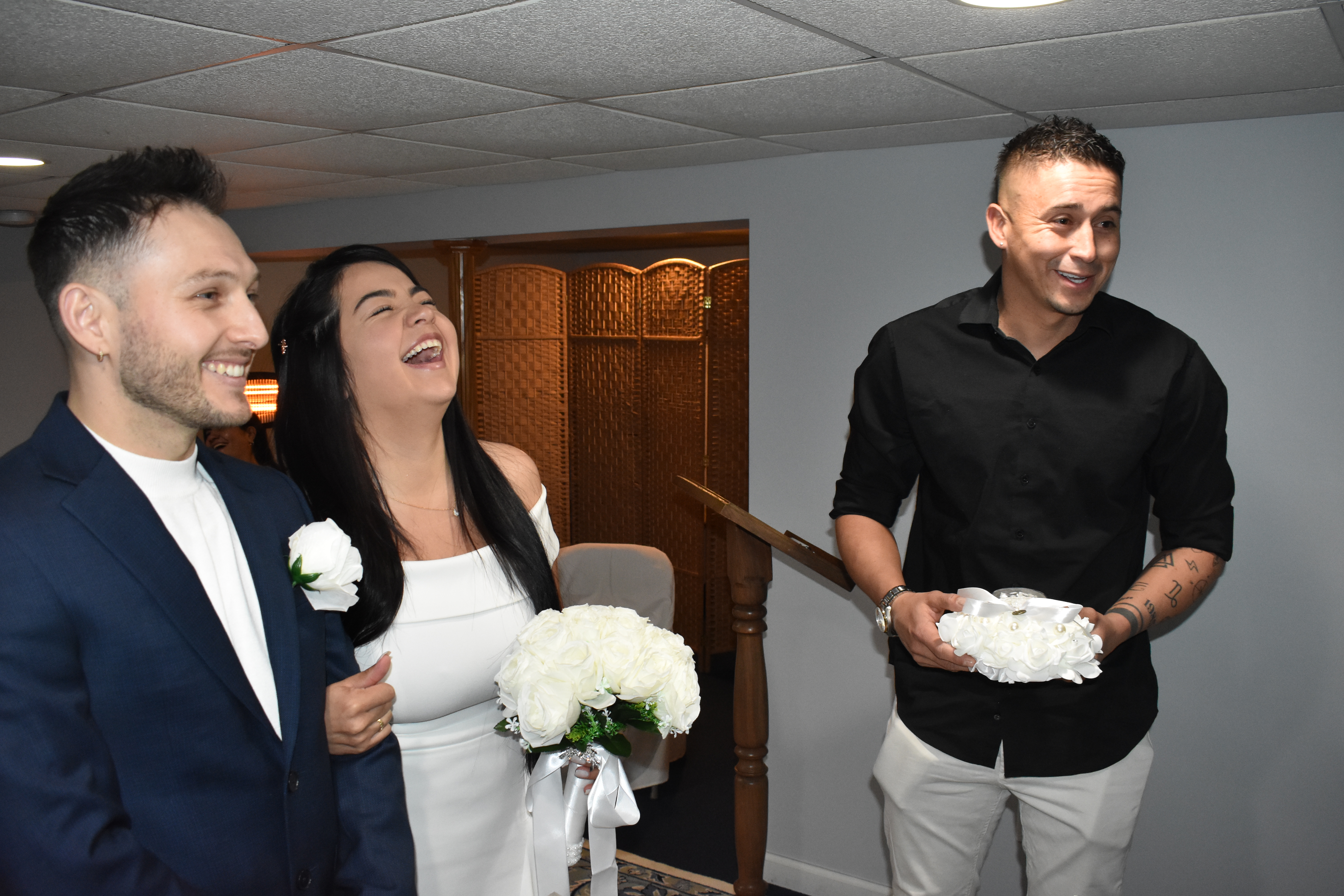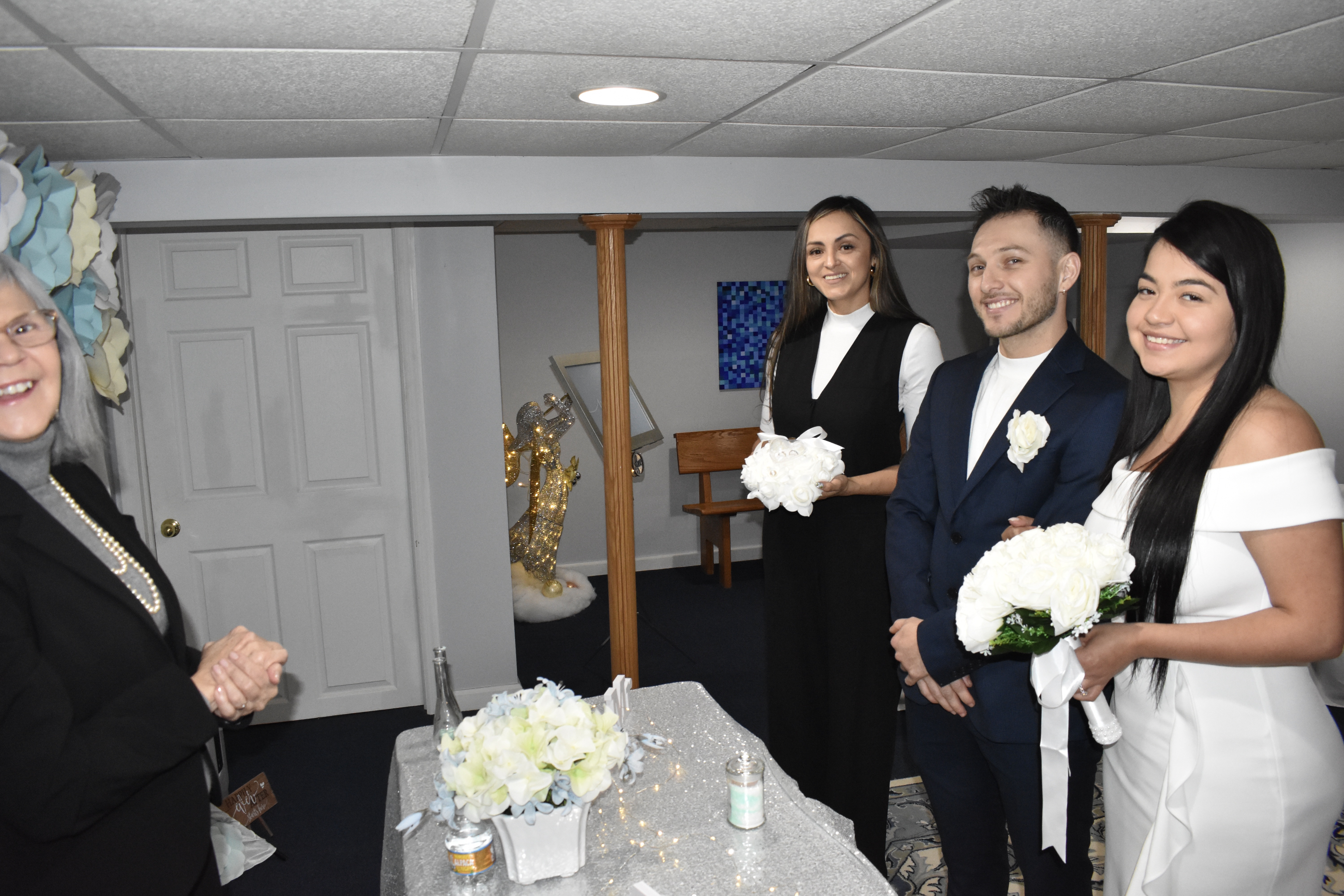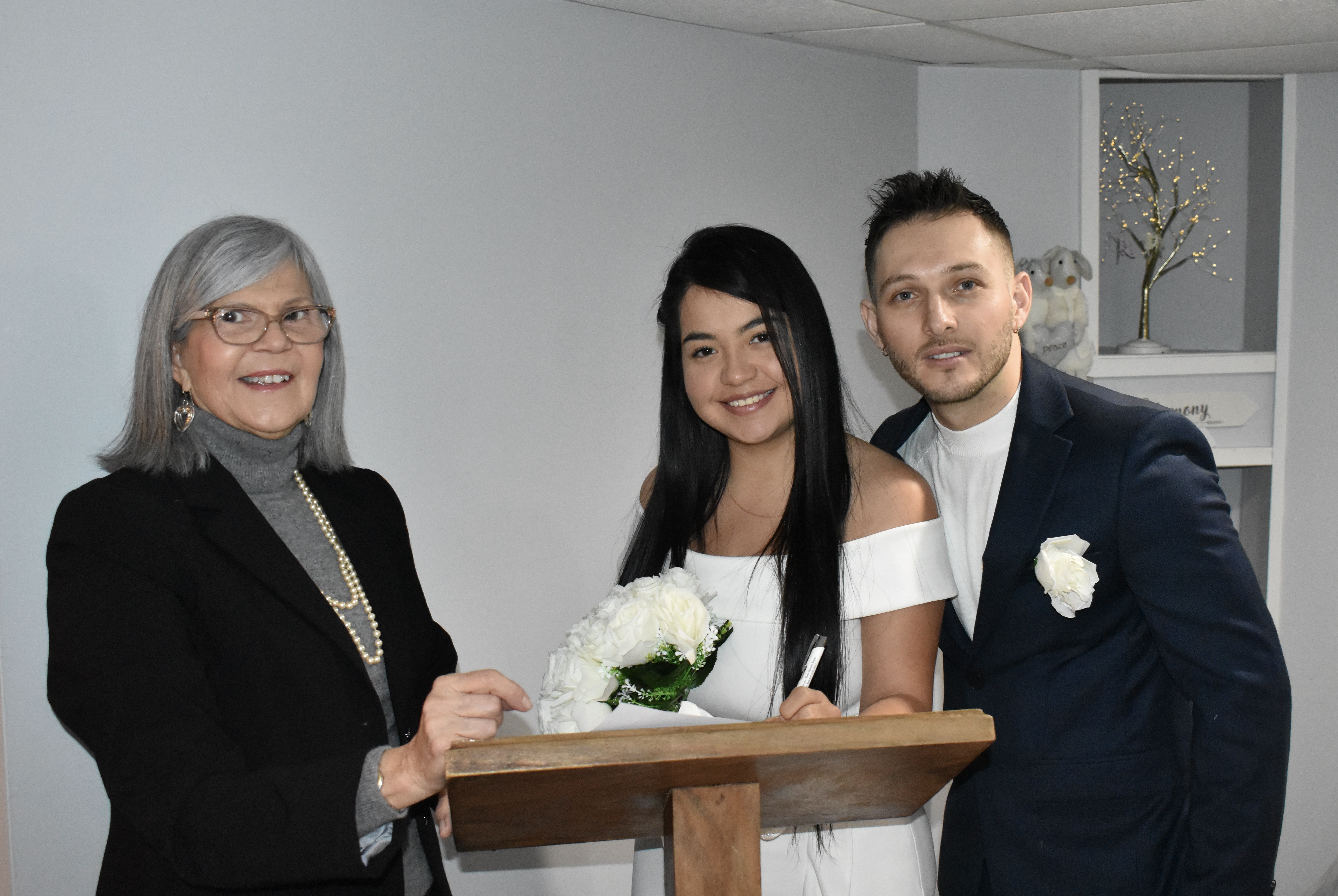 Kimberly y Javier, son dos jóvenes colombianos, llevan dos años de noviazgo y sus caras brillan de felicidad al hablar de su relación. No dejan de demostrar su alegría y sus sonrisas de amor en todo momento. Vinieron acompañados de dos de sus mejores amigos, los cuales hicieron de padrinos y testigos del evento.