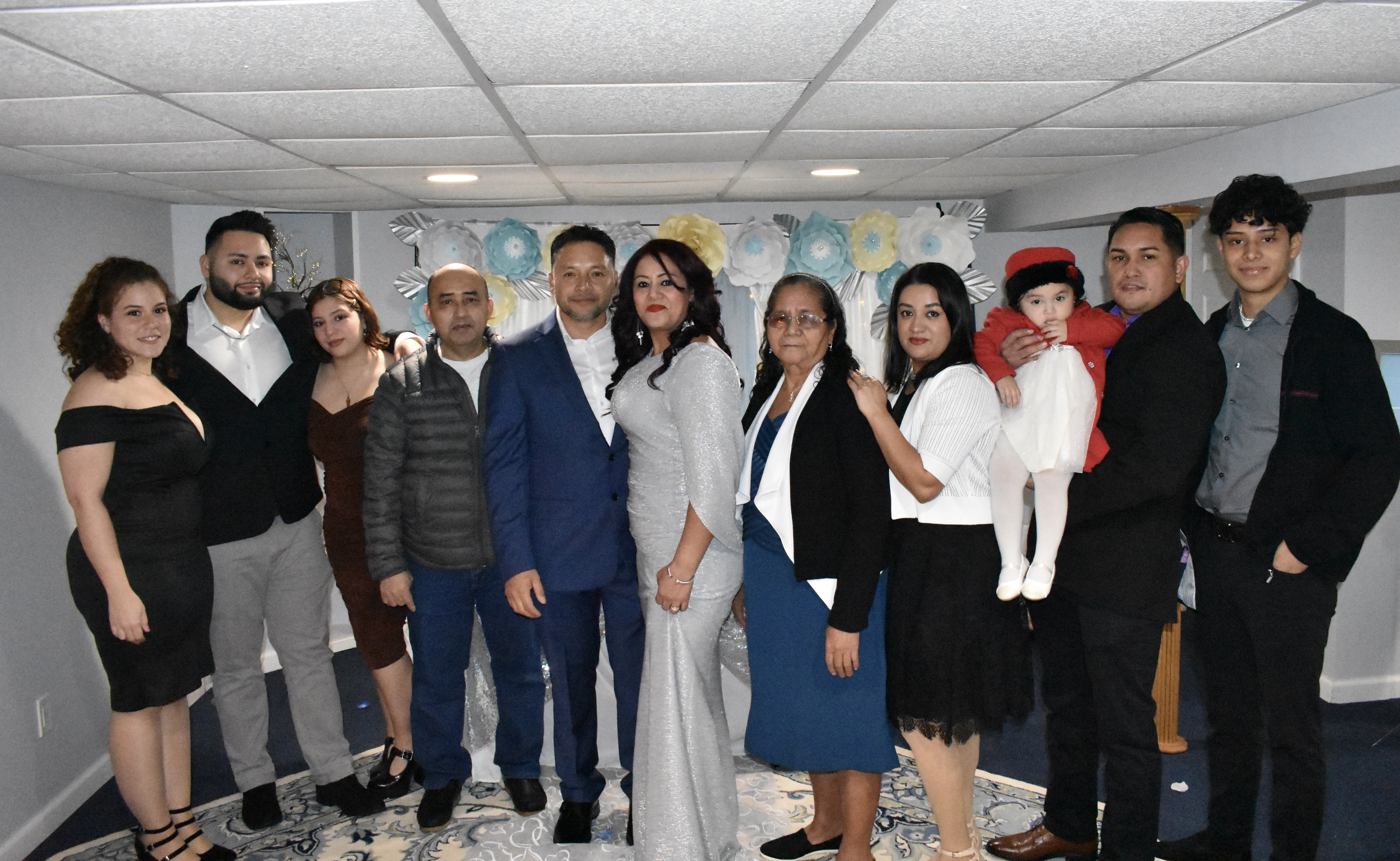 Silvia y José, son ambos salvadoreños, se conocieron en Long Island y tienen seis años de noviazgo. La novia escogió para la ocasion, un elegante vestido gris plata. Estuvieron acompañados de los dos hijos de la novia, el hijo del novio con su prometida, hermano del novio con esposa e hija, un amigo y la madre de la novia. Tanto la madre de la novia como el hijo del novio, dijeron emotivas palabras a los novios.