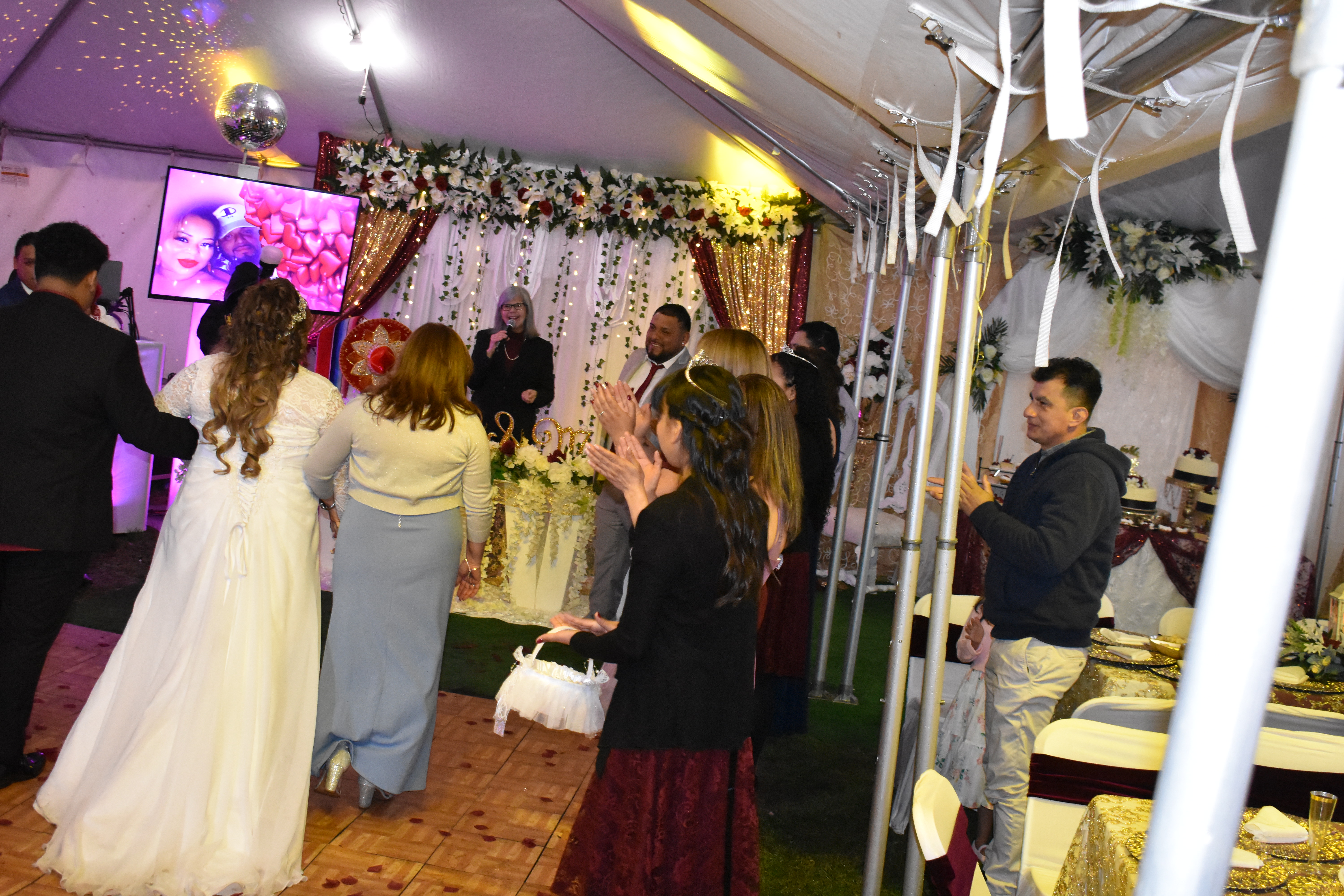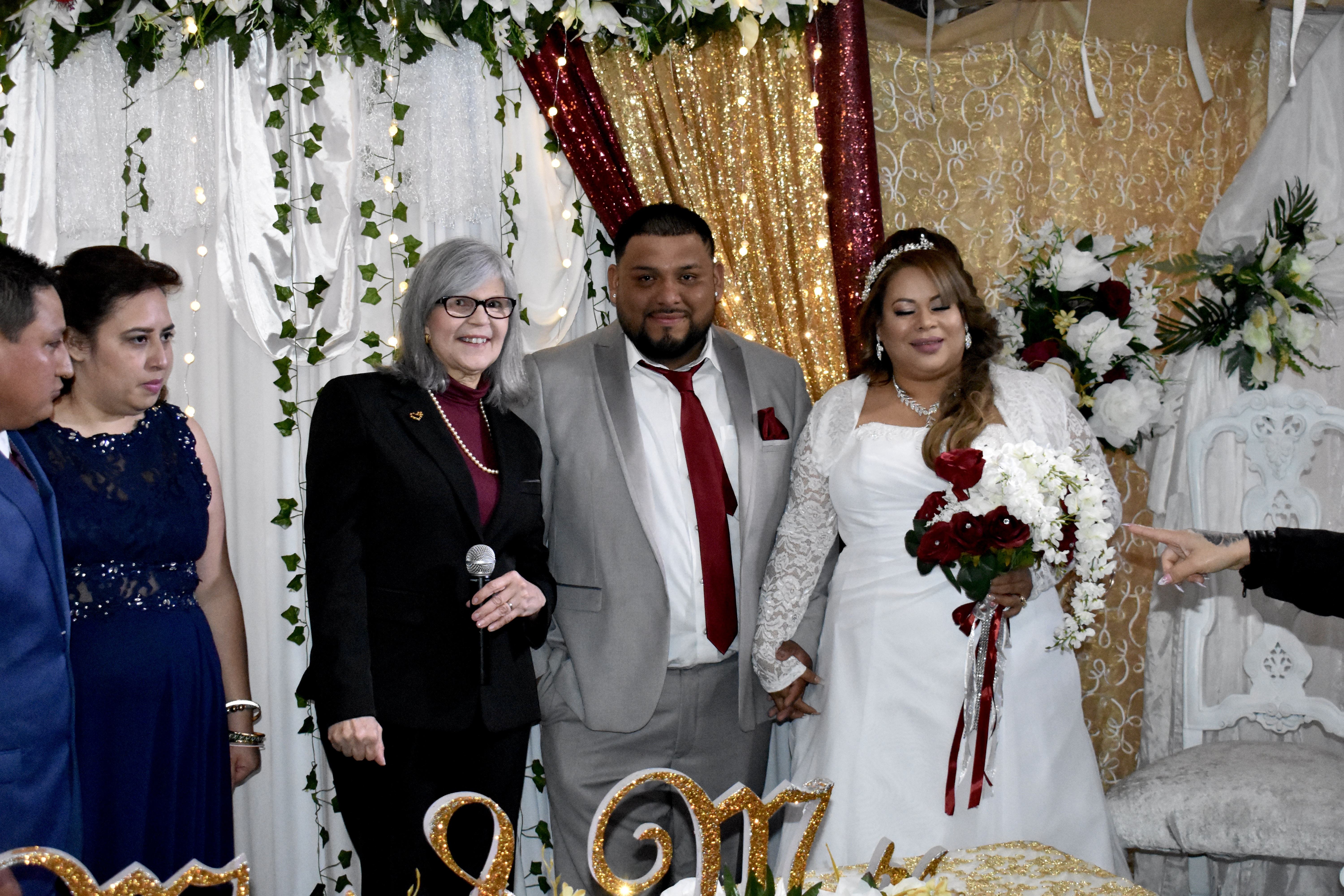 Karla es una linda novia hondureña y Carlos es mexicano. Detalles de la cultura de ambos, estaban unidos en la decoración de la linda mesa, donde hicimos la boda. Karla y Carlos llevan once años juntos. En un lindo ambiente familiar, en el jardin del hogar de la pareja, se dieron cita, familiares y amigos para disfrutar del evento. El novio, Carlos entró acompañado de su abuela, Ana Guadarrama y su tío, Carlos Guadarrama. Los testigos fueron Alma Juarez y Rafael Sanchez. La corte de honor: Katerin Bonilla y José Perez, Heidi Rodriguez y Roberto Bonilla y Anilu Peralta y Roberto Gonzalez. Los anillos los llevó la hija de la novia, Maricruz Amador. Las niñas de las flores fueron Kimberkly Sanchez y Andrea Rodriguez. La pareja de mini novios Valeria y Jayden Bonilla. La novia llego Acompañada de su tía, Adela Iglesias y su hijo, Elvin Rivera. La ceremonia tuvo detalles románticos y religiosos, incluyendo el ritual de los tres cordones y el rosario de amor infinito.