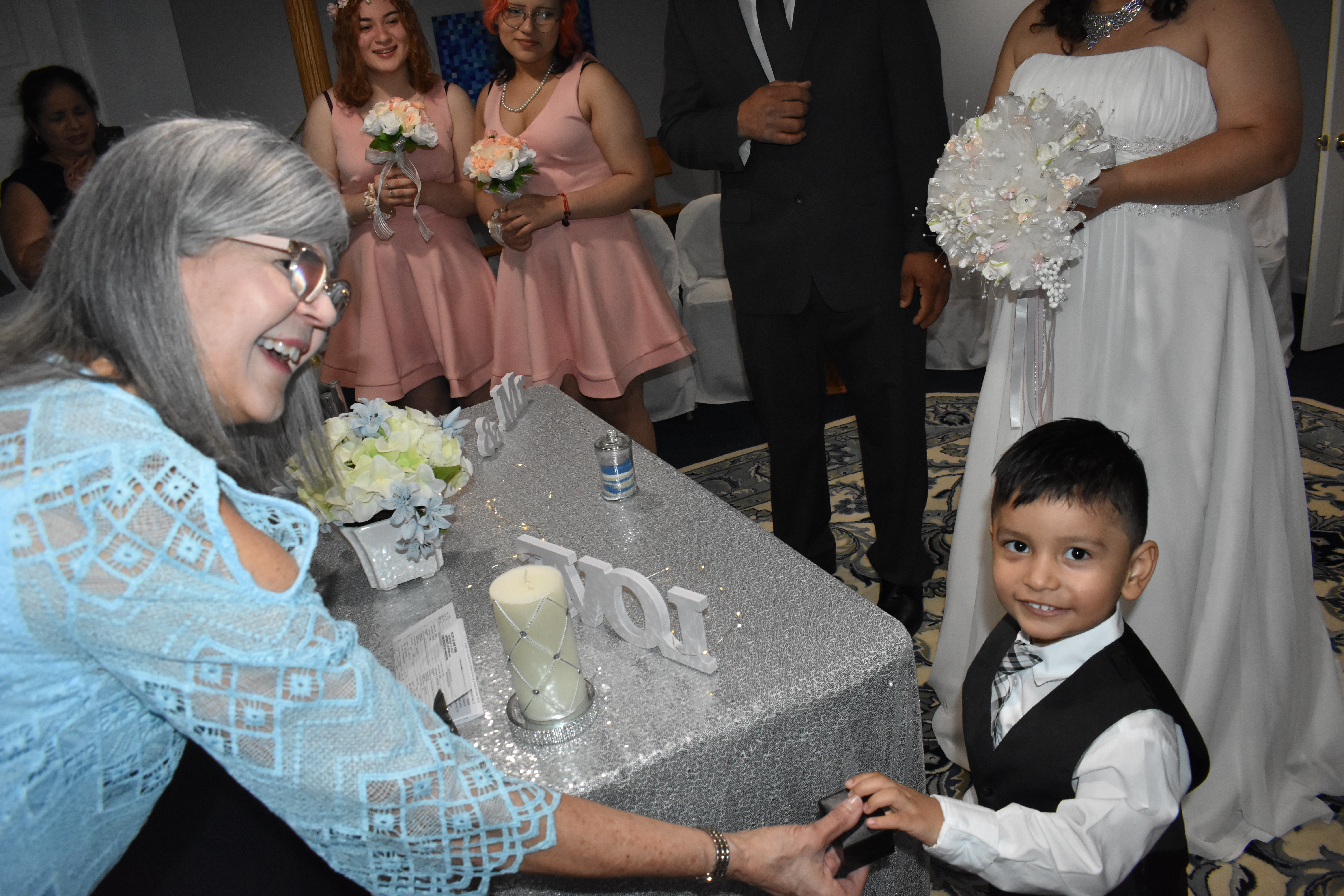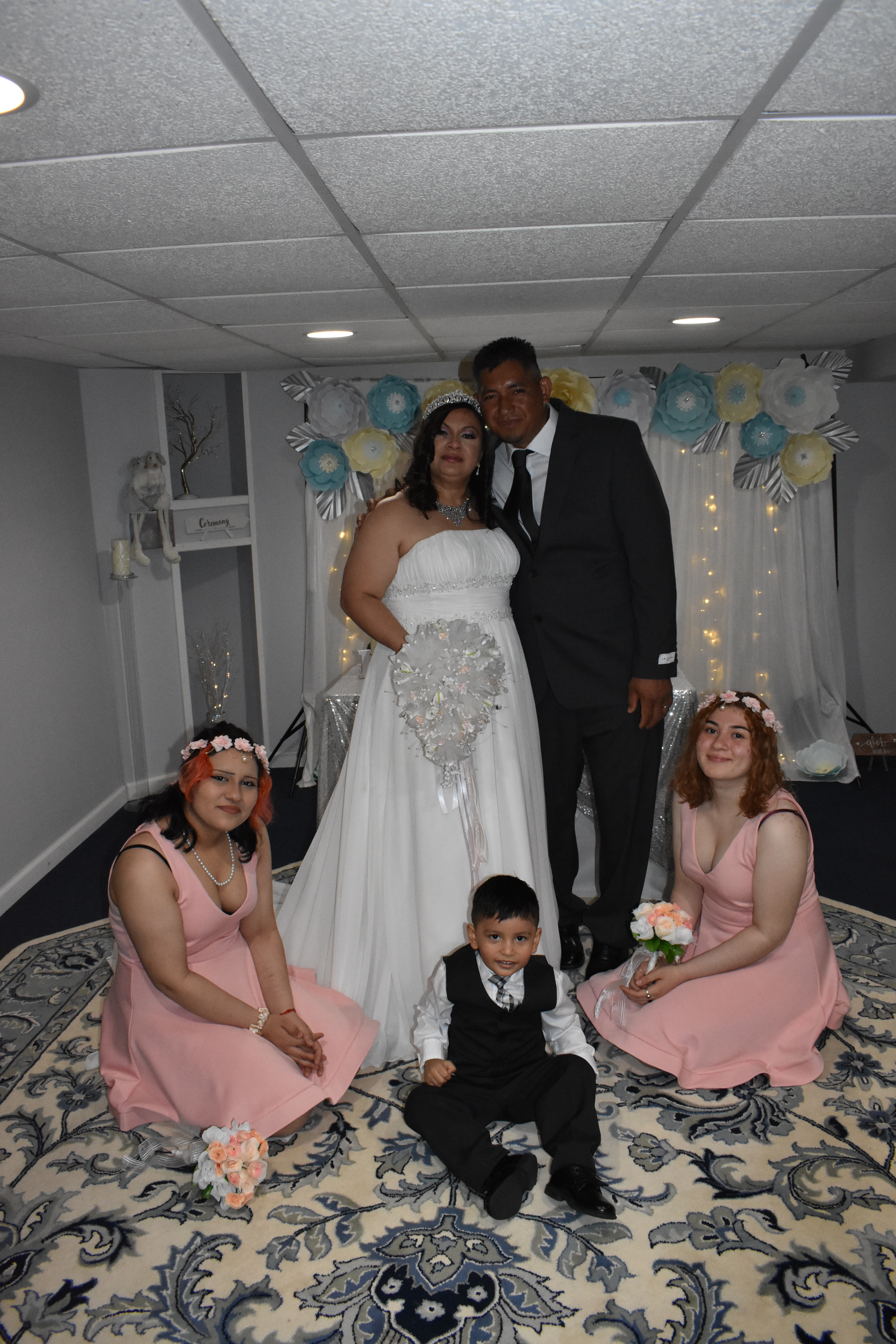 Vilma y Santos son salvadoreños; tienen diez años juntos y comparten tres hijos: Keila, Isain y Melody. Los novios vinieron acompañados de sus hijos y una amiga. Todos vestidos en armonía de colores pasteles creando una linda sensación de unión familiar.
