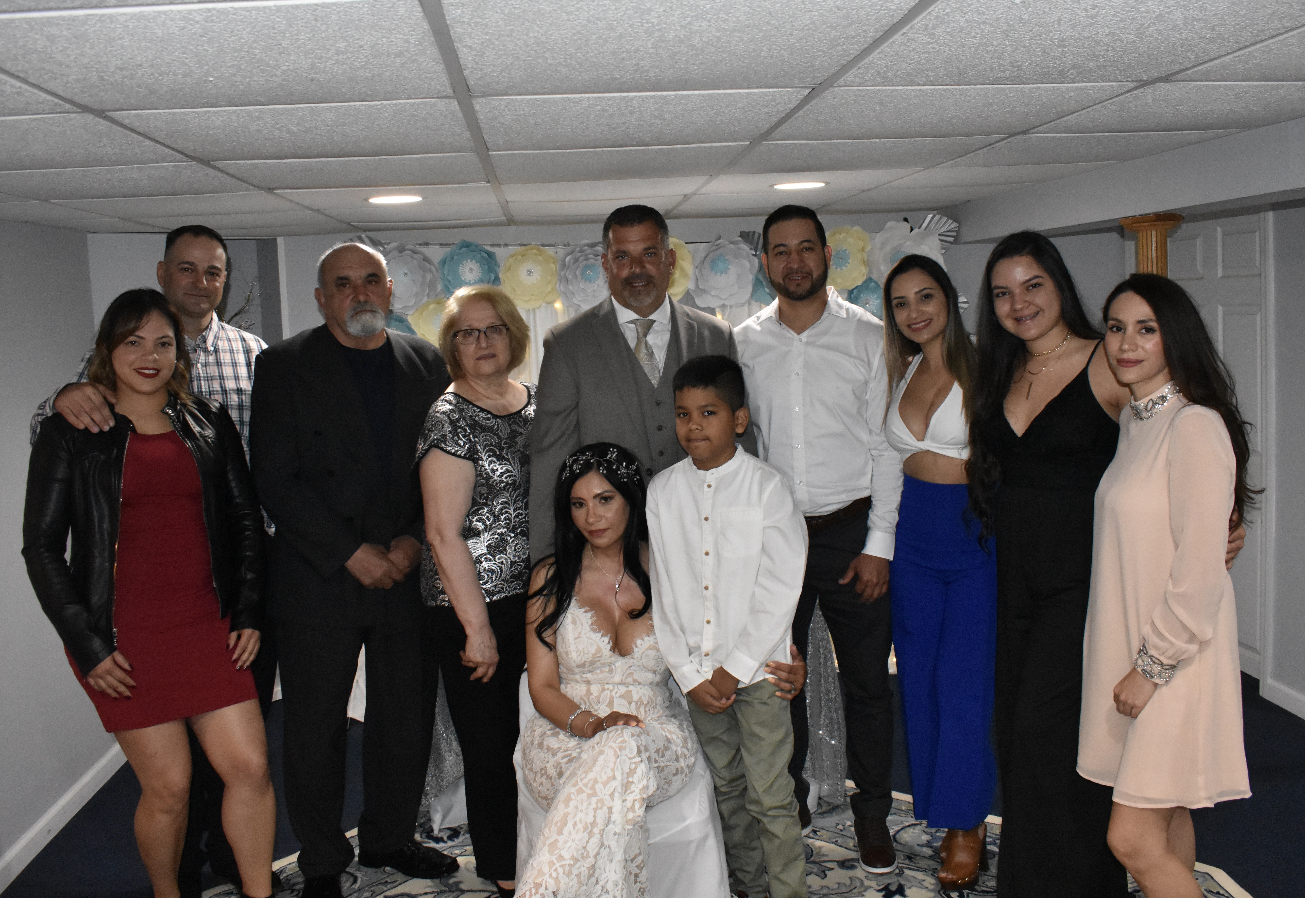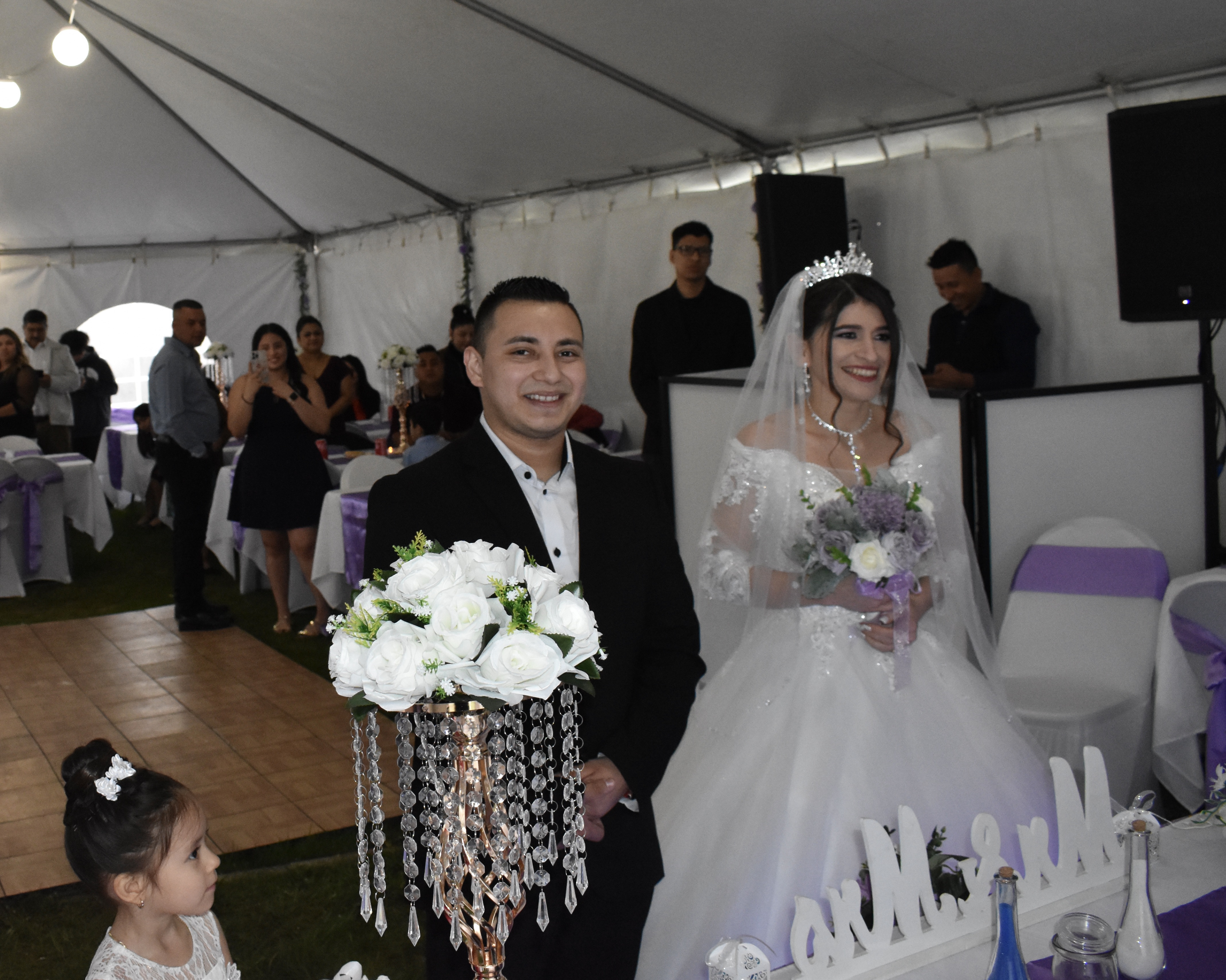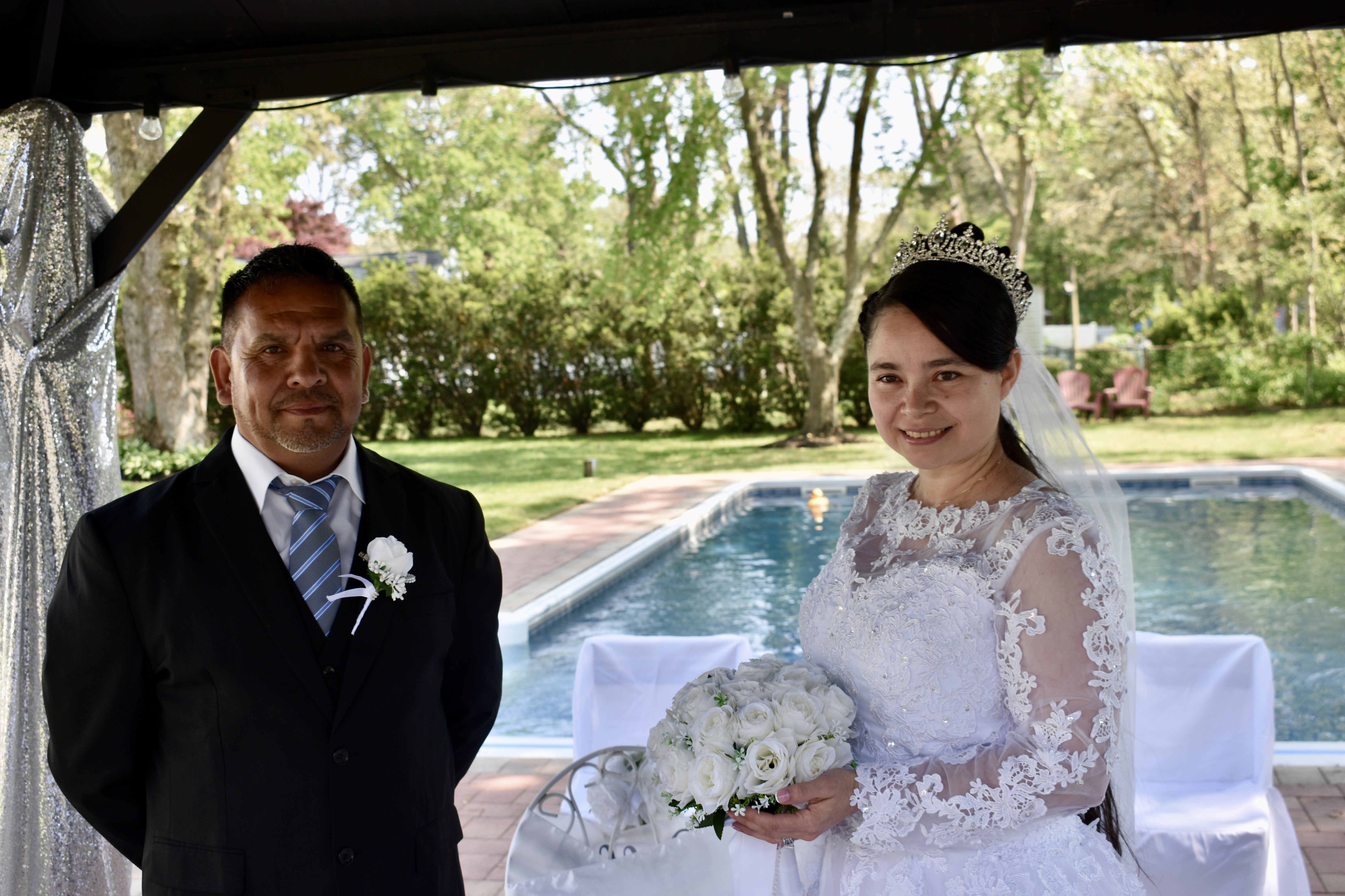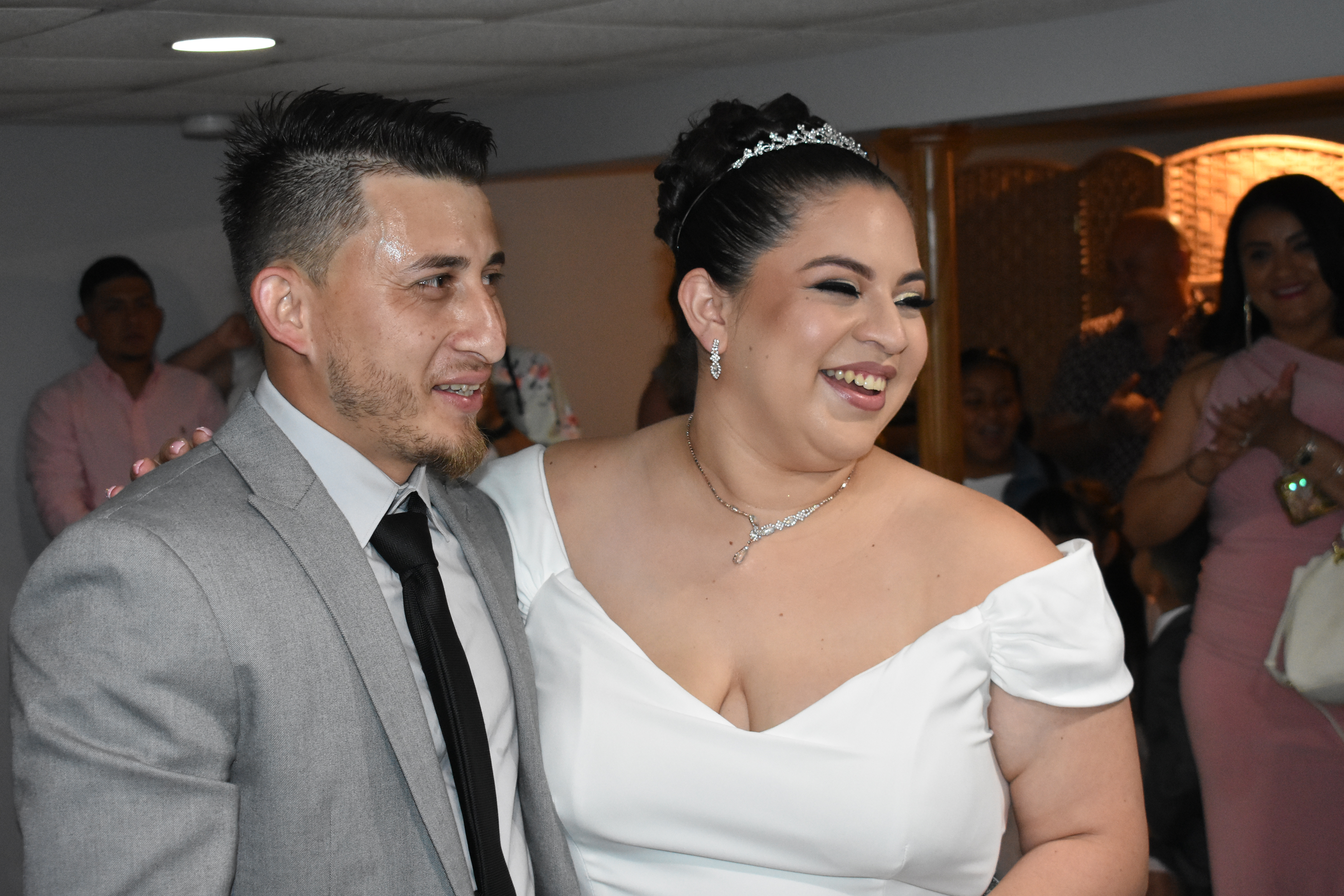 Fatima y Gilberto son salvadoreños, se conocieron en Long Island y tienen diez años viviendo juntos. Disfrutan de una linda familia conformada con sus dos hijas, Katherine y Belen. Gilberto llegó acompañado de su abuela, Herminia Mejía. Las damas de honor fueron las hermanas del novio; Cruz, Griselda y Maria Mejias, y la hermana de la novia, Erika Alfaro. Los pétalos los regaron las hijas de los novios. La novia llegó acompañada de su madre, Maria Arias. La boda fue el dia 22 de mayo a las 4:30 y cómo rara vez sucede, antes de las hora fijada, ya estaban presentes los novios, familiares y amigos.