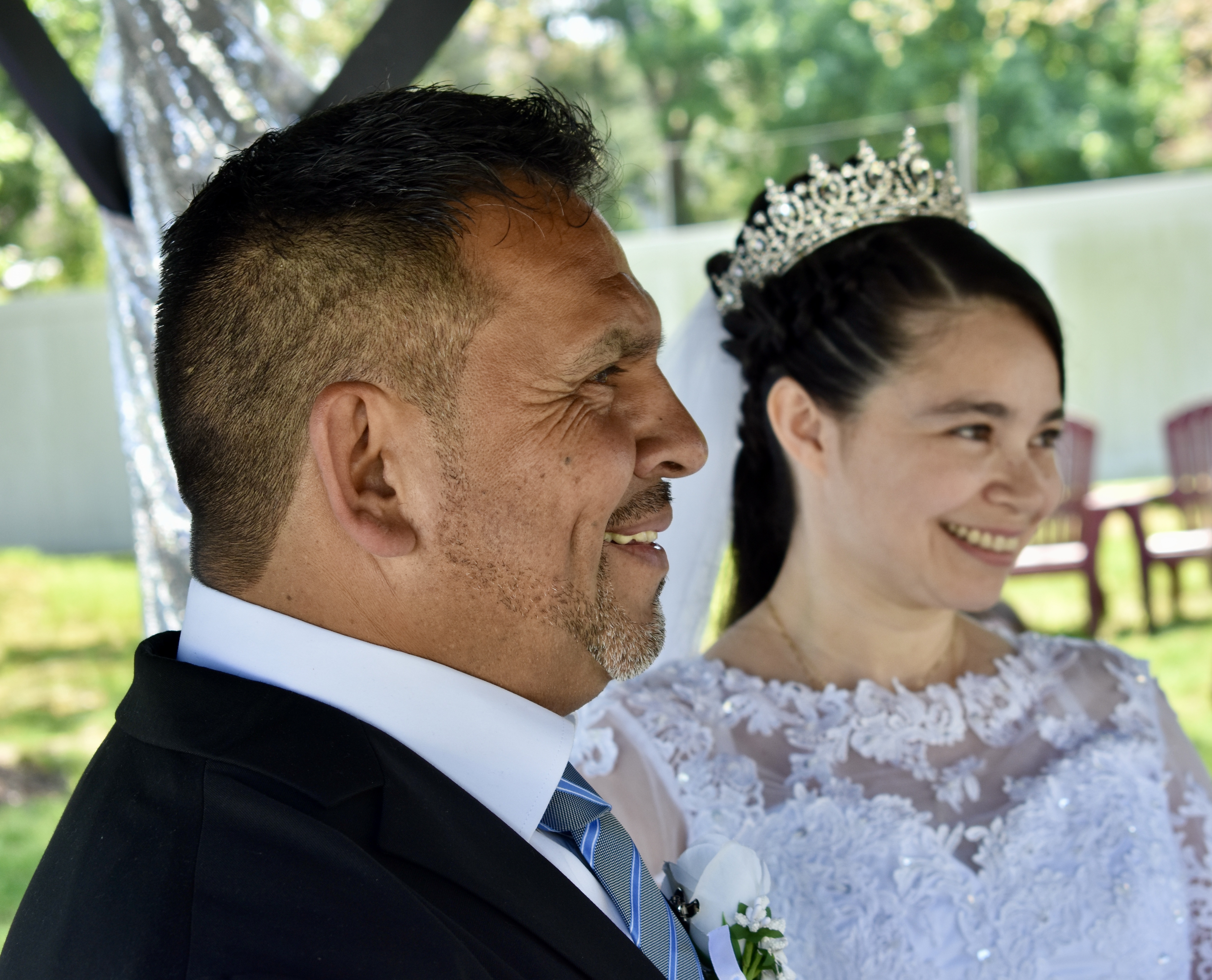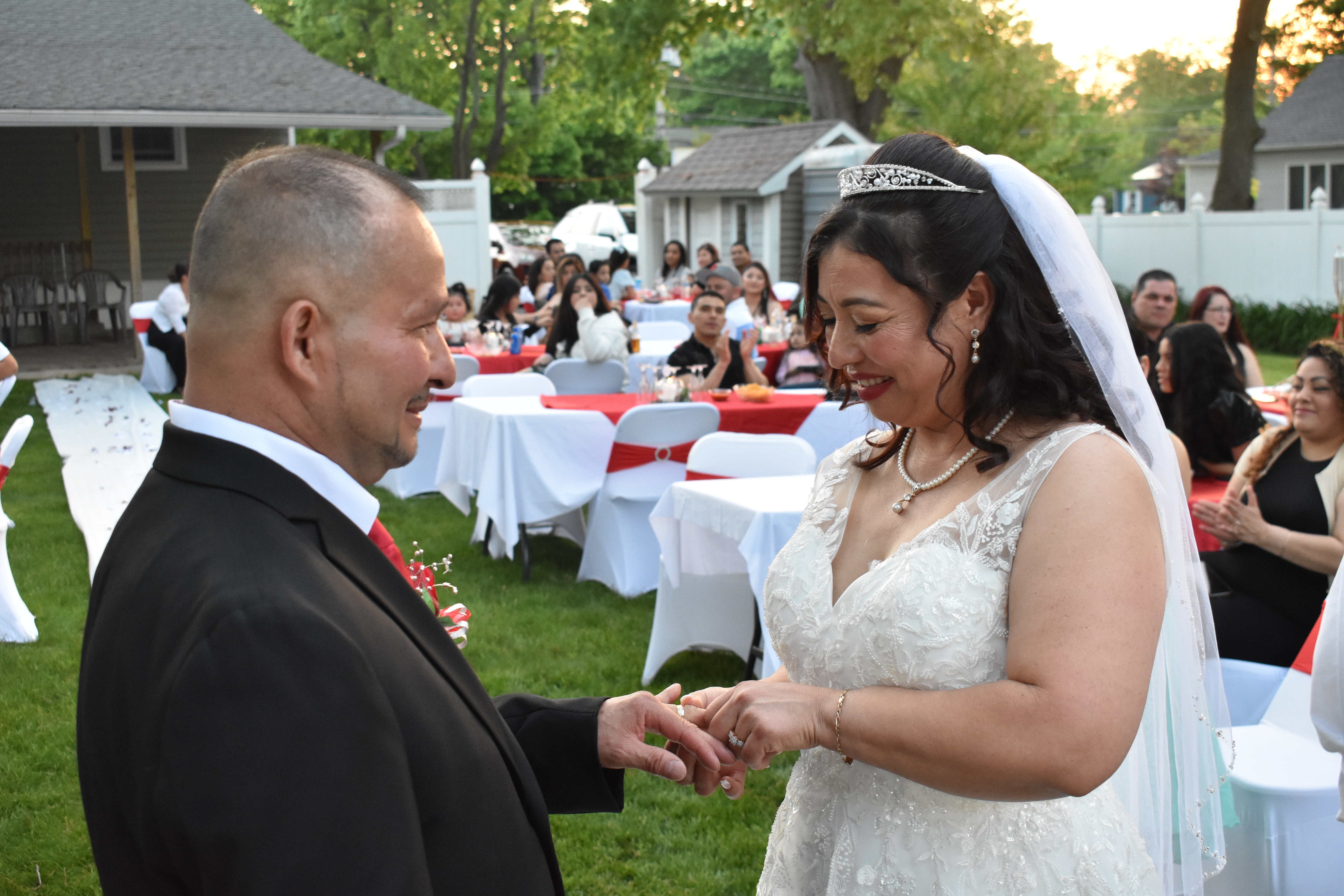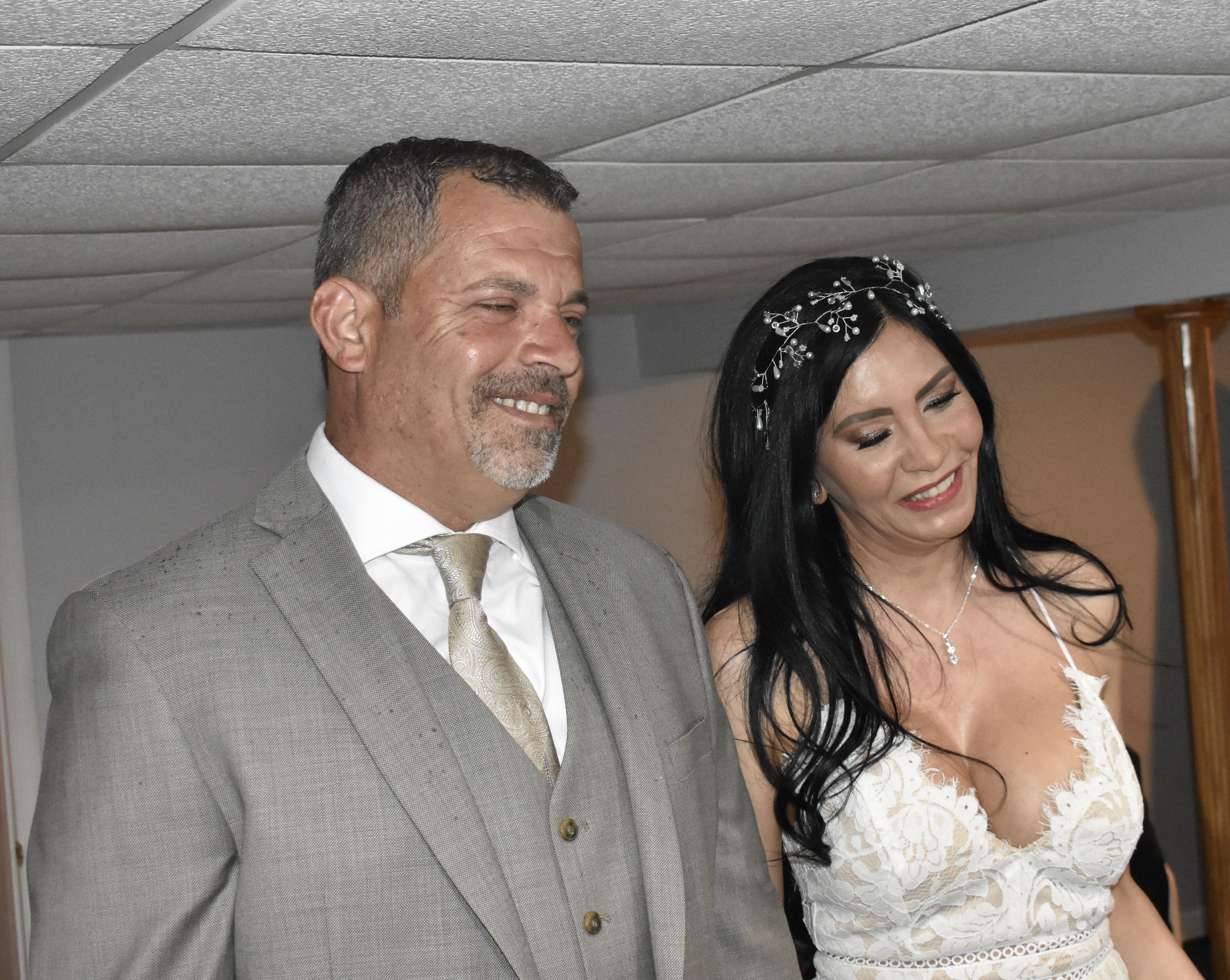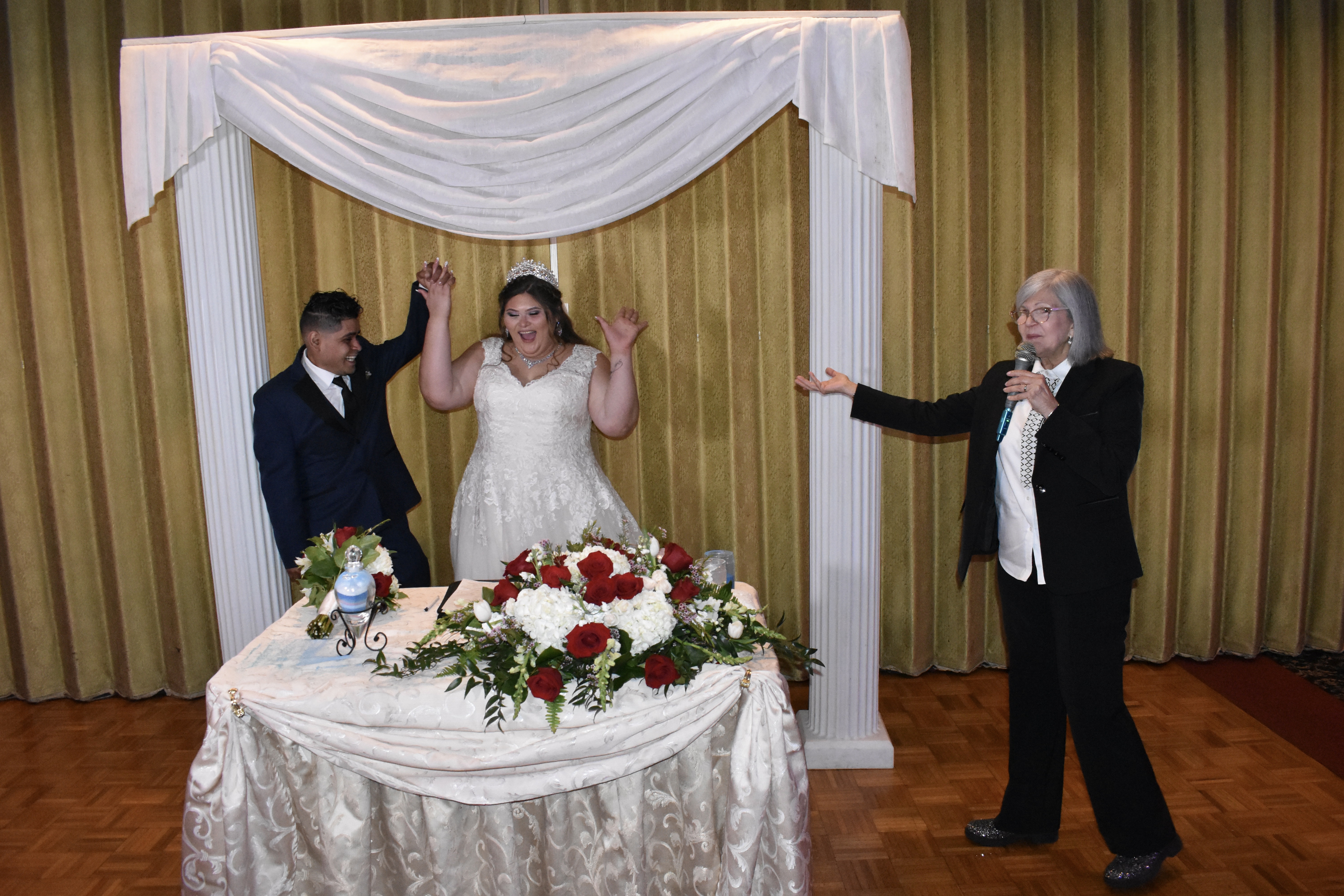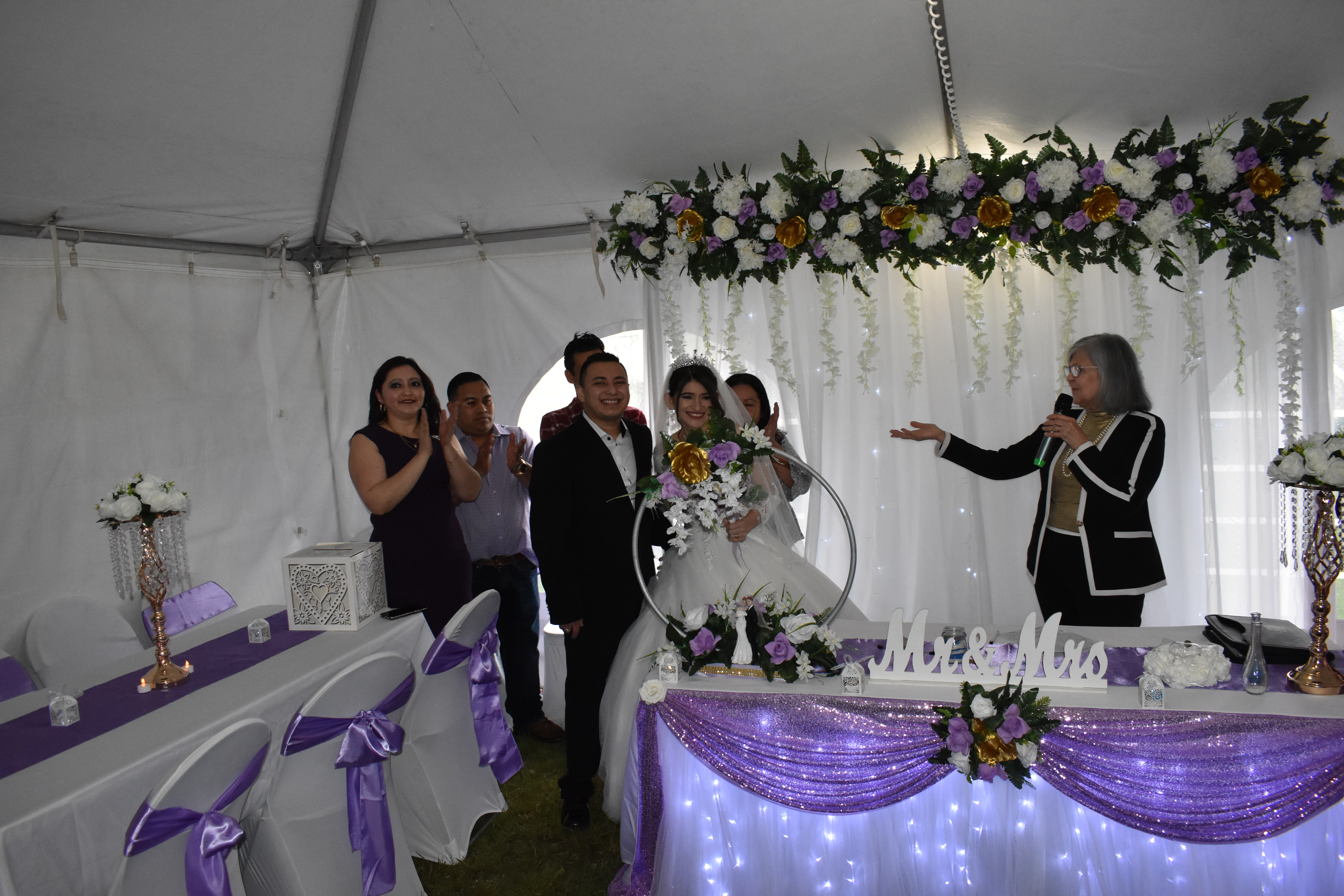 Fatima y Gilberto son salvadoreños, se conocieron en Long Island y tienen diez años viviendo juntos. Disfrutan de una linda familia conformada con sus dos hijas, Katherine y Belen. Gilberto llegó acompañado de su abuela, Herminia Mejía. Las damas de honor fueron las hermanas del novio; Cruz, Griselda y Maria Mejias, y la hermana de la novia, Erika Alfaro. Los pétalos los regaron las hijas de los novios. La novia llegó acompañada de su madre, Maria Arias. La boda fue el dia 22 de mayo a las 4:30 y cómo rara vez sucede, antes de las hora fijada, ya estaban presentes los novios, familiares y amigos.