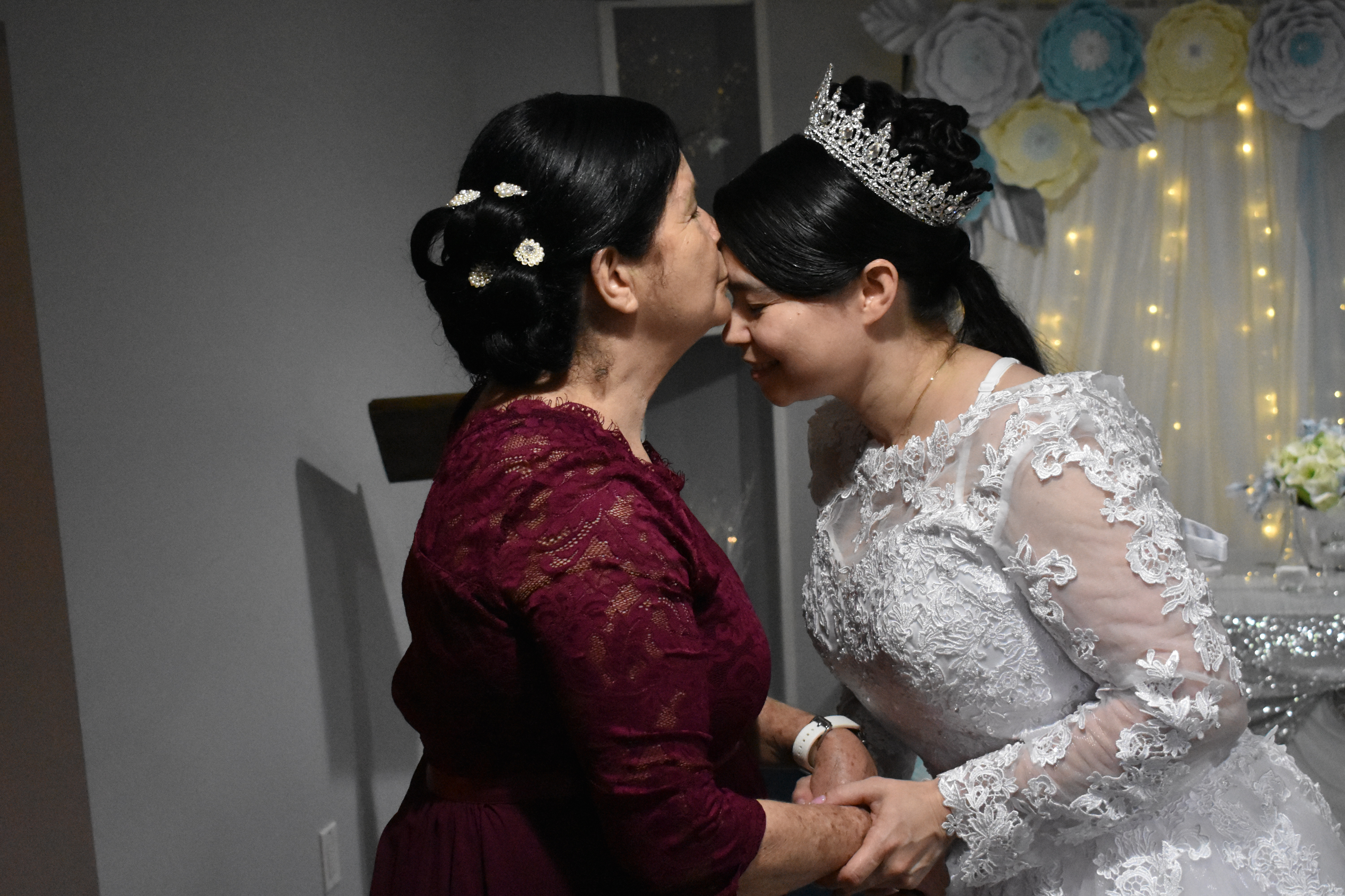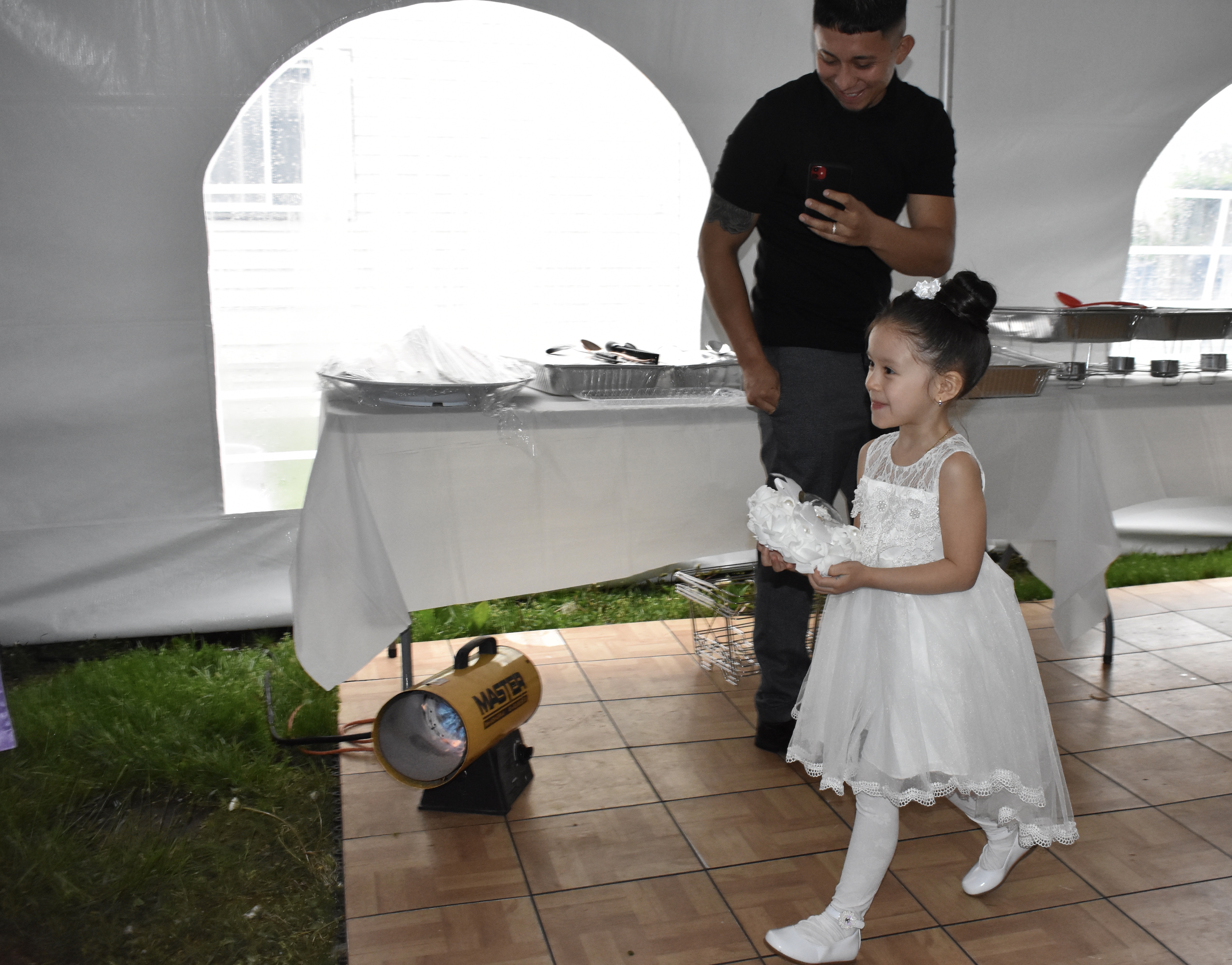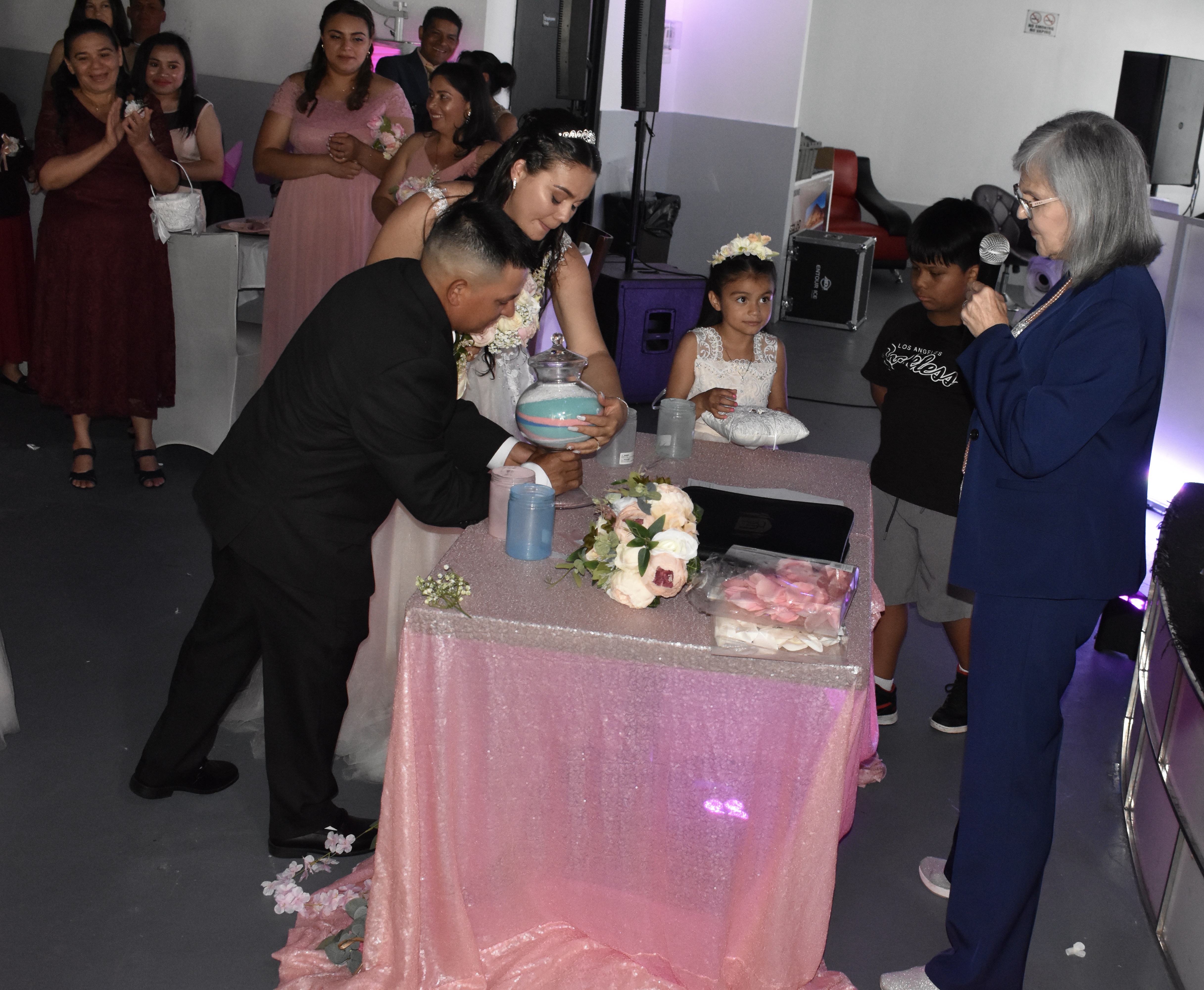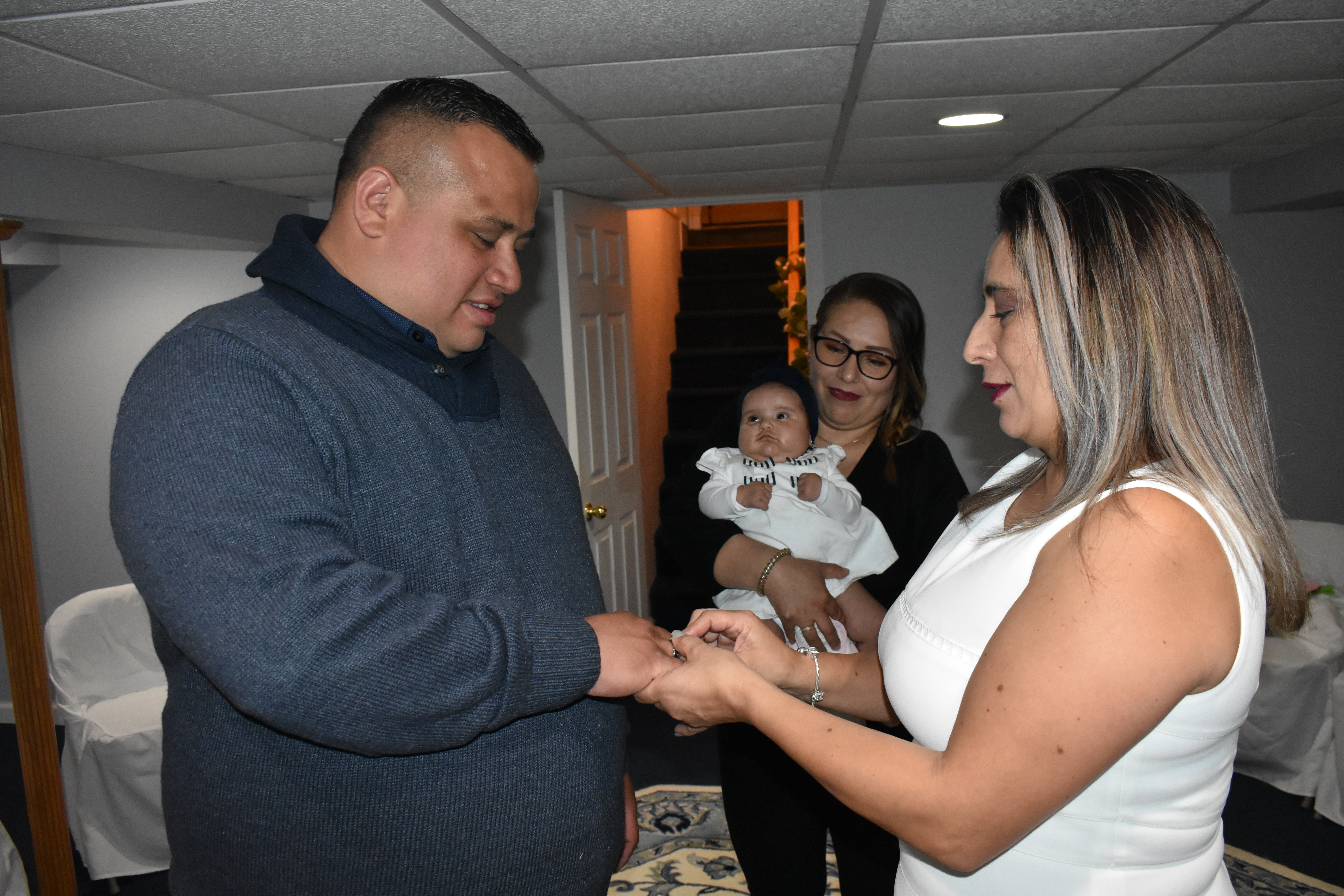 Fatima y Gilberto son salvadoreños, se conocieron en Long Island y tienen diez años viviendo juntos. Disfrutan de una linda familia conformada con sus dos hijas, Katherine y Belen. Gilberto llegó acompañado de su abuela, Herminia Mejía. Las damas de honor fueron las hermanas del novio; Cruz, Griselda y Maria Mejias, y la hermana de la novia, Erika Alfaro. Los pétalos los regaron las hijas de los novios. La novia llegó acompañada de su madre, Maria Arias. La boda fue el dia 22 de mayo a las 4:30 y cómo rara vez sucede, antes de las hora fijada, ya estaban presentes los novios, familiares y amigos.