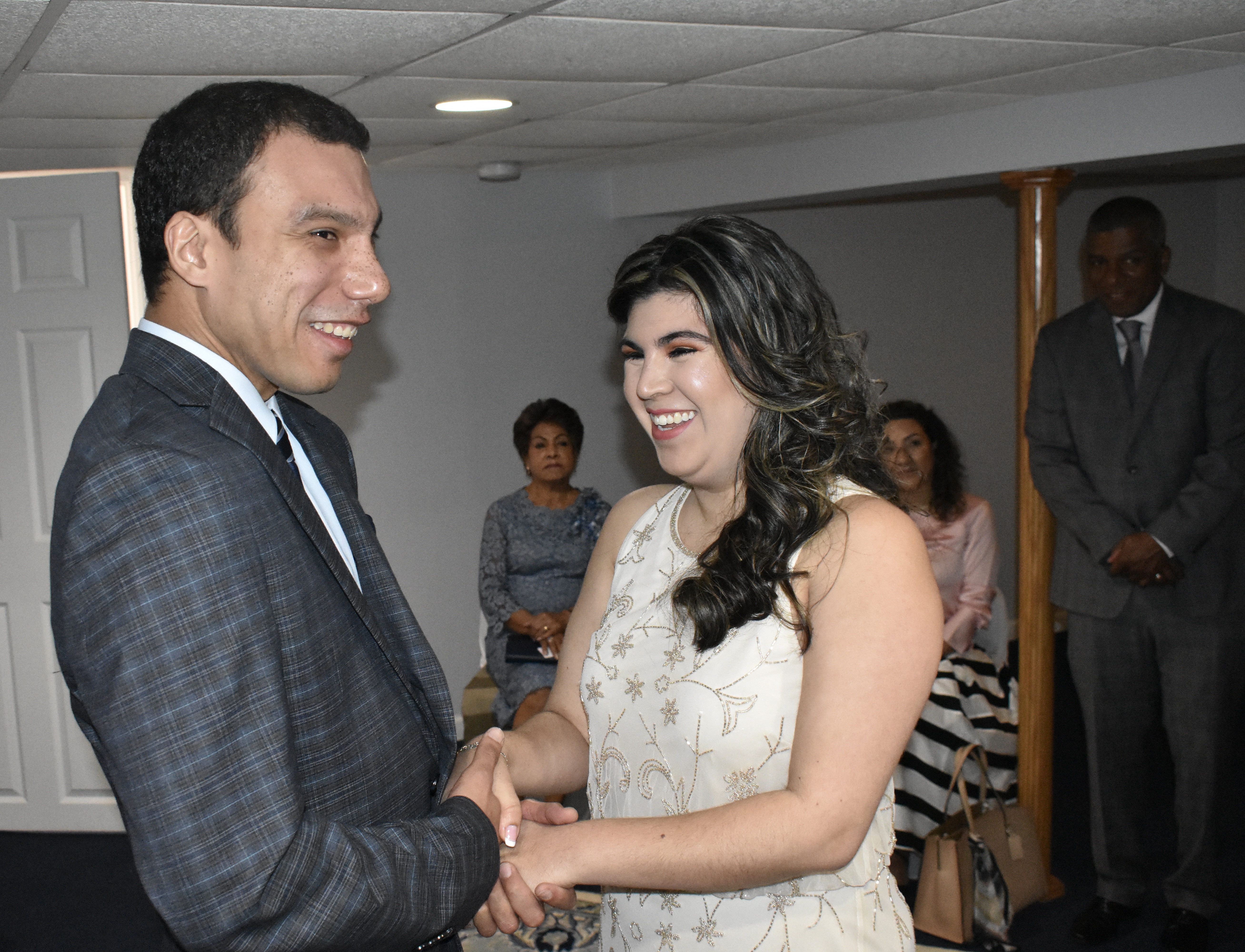 El jueves 21 de abril tuve el placer de recibir en mi capilla, a Eyibeth y Carlos, ambos de Colombia. Vinieron acompañados de sus padres, hermanos y otros familiares. Tanto en sus votos como en las palabras de los invitados, siempre estuvieron presentes el agradecimiento a Dios por permitirles estar uniendo sus vidas en matrimonio. Los jóvenes se conocieron en la Iglesia, a la cual, ambos han asistido por años, e igualmente sus padres y de una amistad fraternal, nació el amor.
