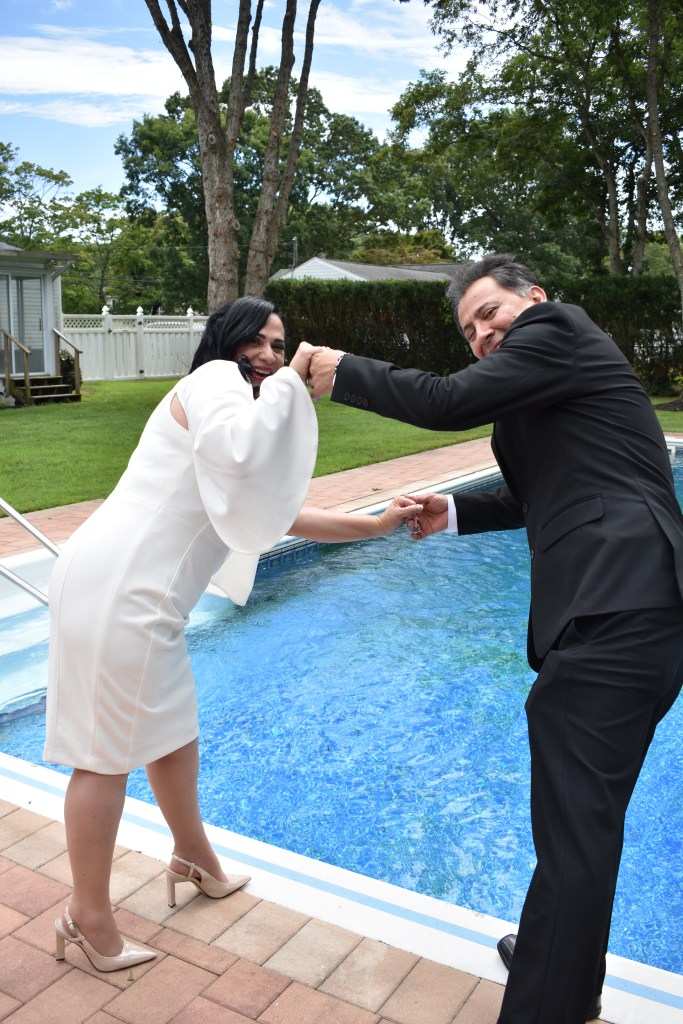 Anayancy es de Costa Rica y Carlos es de Colombia. Ambos son divorciados y tienen tres años de noviazgo. En el momento de los votos matrimoniales, Carlos dijo las siguientes palabras: “Mi vida estaba rota, terminada. Te conocí y comencé a vivir de nuevo”. Vinieron acompañados de dos amigas que hicieron de testigos. El buen humor los hizo reírse en todo momento y hacer bromas para fotos divertidas.