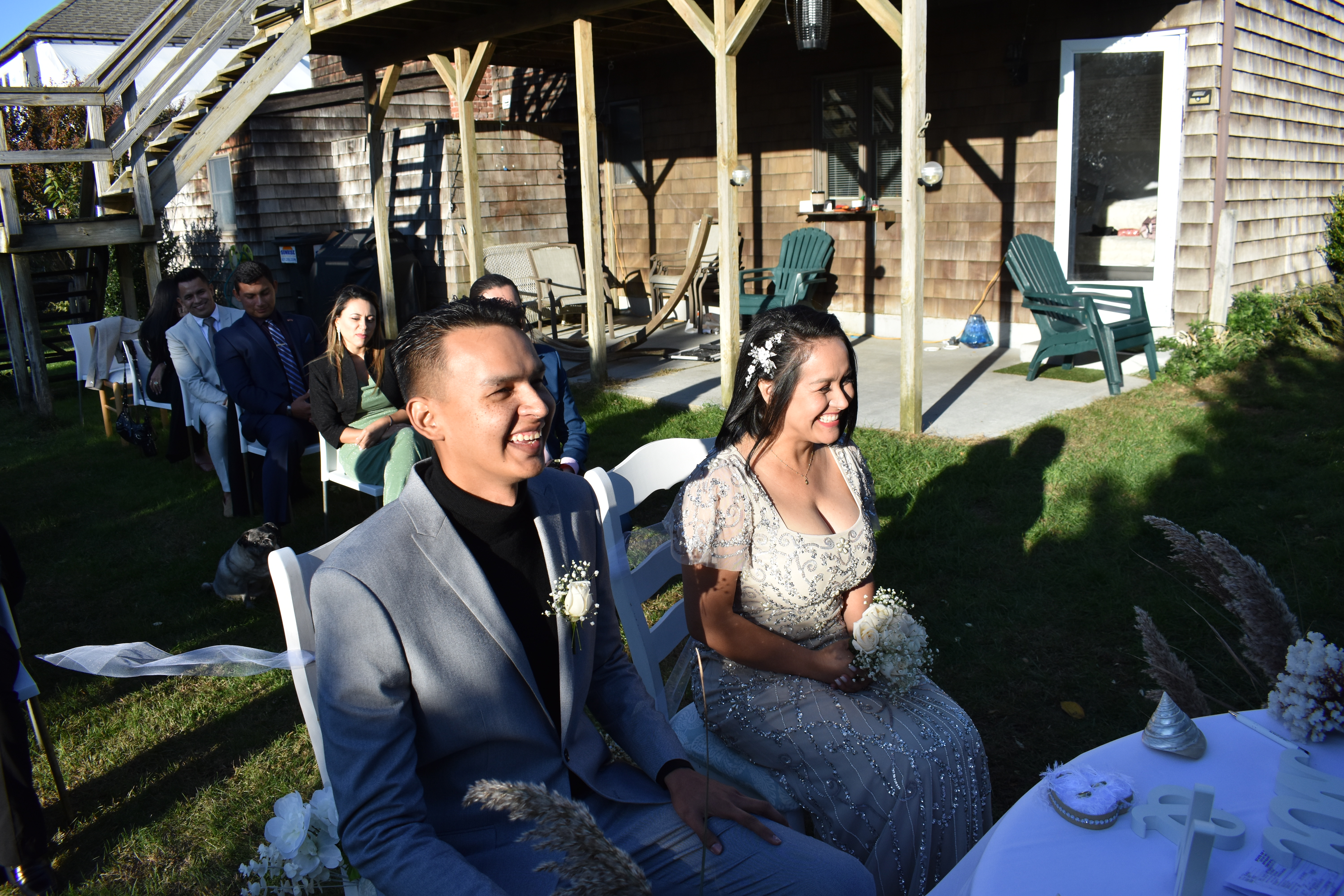 Jenny y Christian son colombianos, han sido amigos por muchos años y de la linda amistad, floreció un amor que los hace sonreír constantemente. Christian está en la marina, por lo cual, escogieron una de las fechas de permiso para celebrar la boda, jueves 1 de octubre, donde hubo viento y frio, los cuales no detuvieron el evento; al contrario, hacia reír a los presentes que trataban de mantener los cabellos en su lugar. El evento se realizó en el hogar del Cuñado de la novia, Zahir; una linda casa en el área de playa de East Quogue. El novio fue acompañado por su hermana, Diana Hernandez, a quien tuve el placer de casar en el 2021. Un ambiente jovial, lleno de amor, risas y bromas.