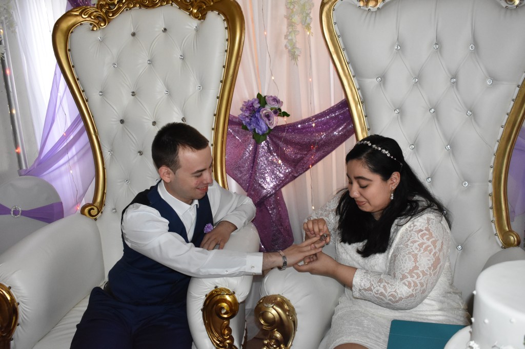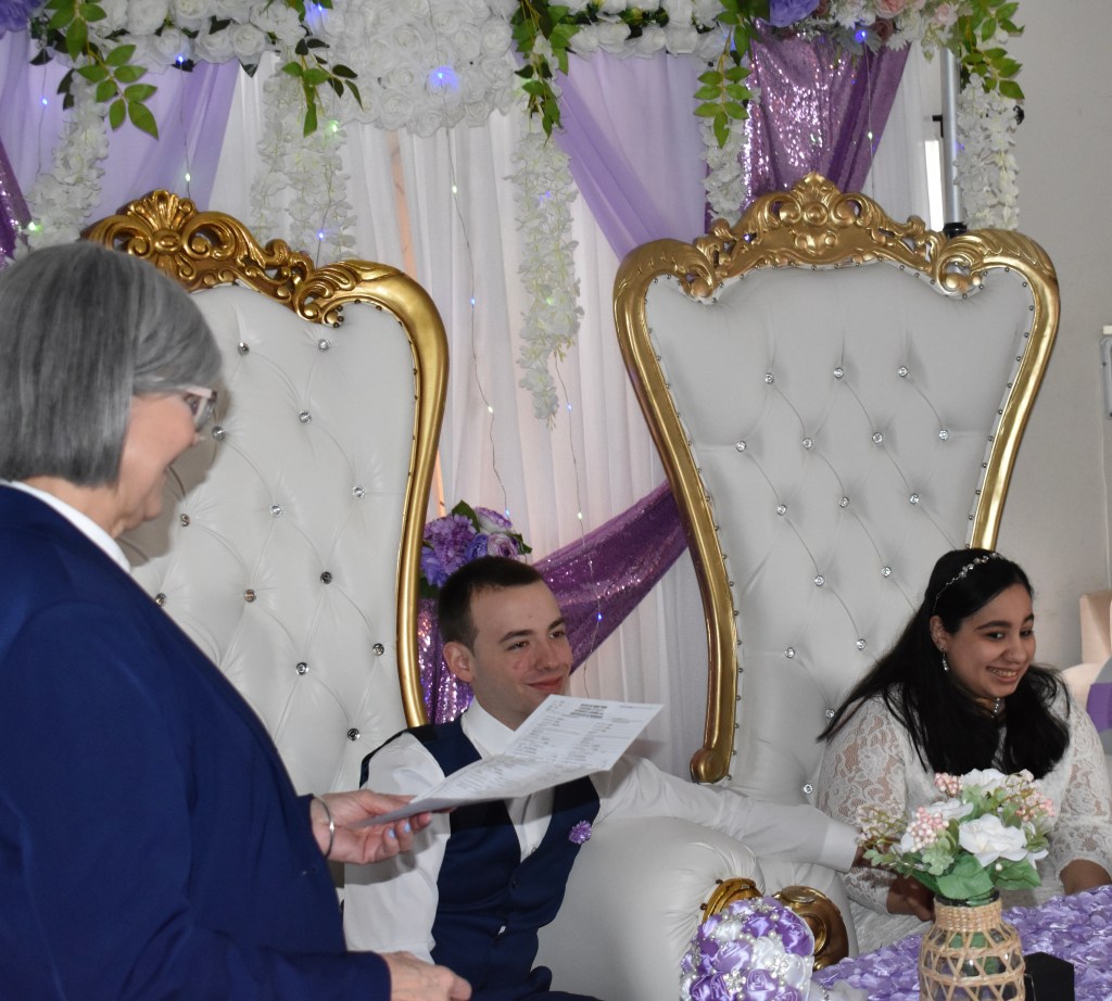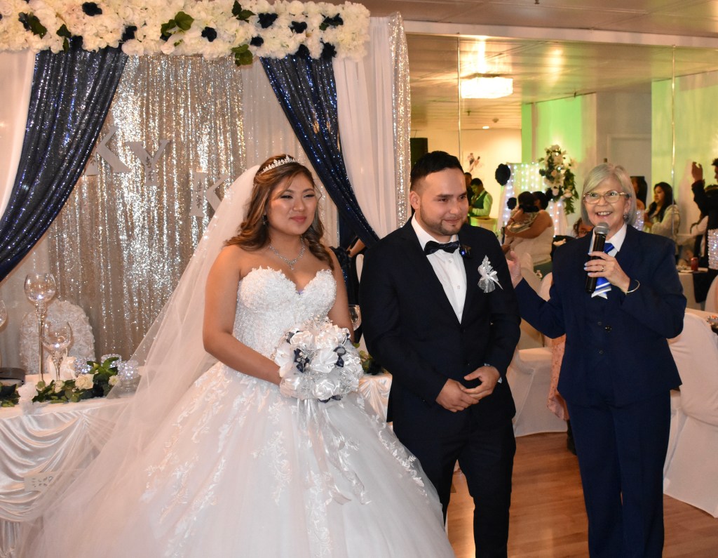 Esther y Oscar, ambos hondureños, tienen tres años de noviazgo. Esther vive en Honduras y viajó a NY a cumplir el sueño de casarse con su novio. Ambos son muy creyentes, por lo cual, combinaron hacer las dos ceremonias el mismo dia. Al yo terminar la boda civil, le di la palabra al Pastor (está a mi lado en las fotos) para que realizara la bendición religiosa. Los testigos de la unión fueron Nolberta y Adrian, a quien tuve el placer de casar hace unos años. Los padres de la novia estuvieron presentes por video llamada. Siempre un placer regresar a hogares de familias en las cuales ya he competido celebraciones. Boda 18/3/2023 en Bayshore.