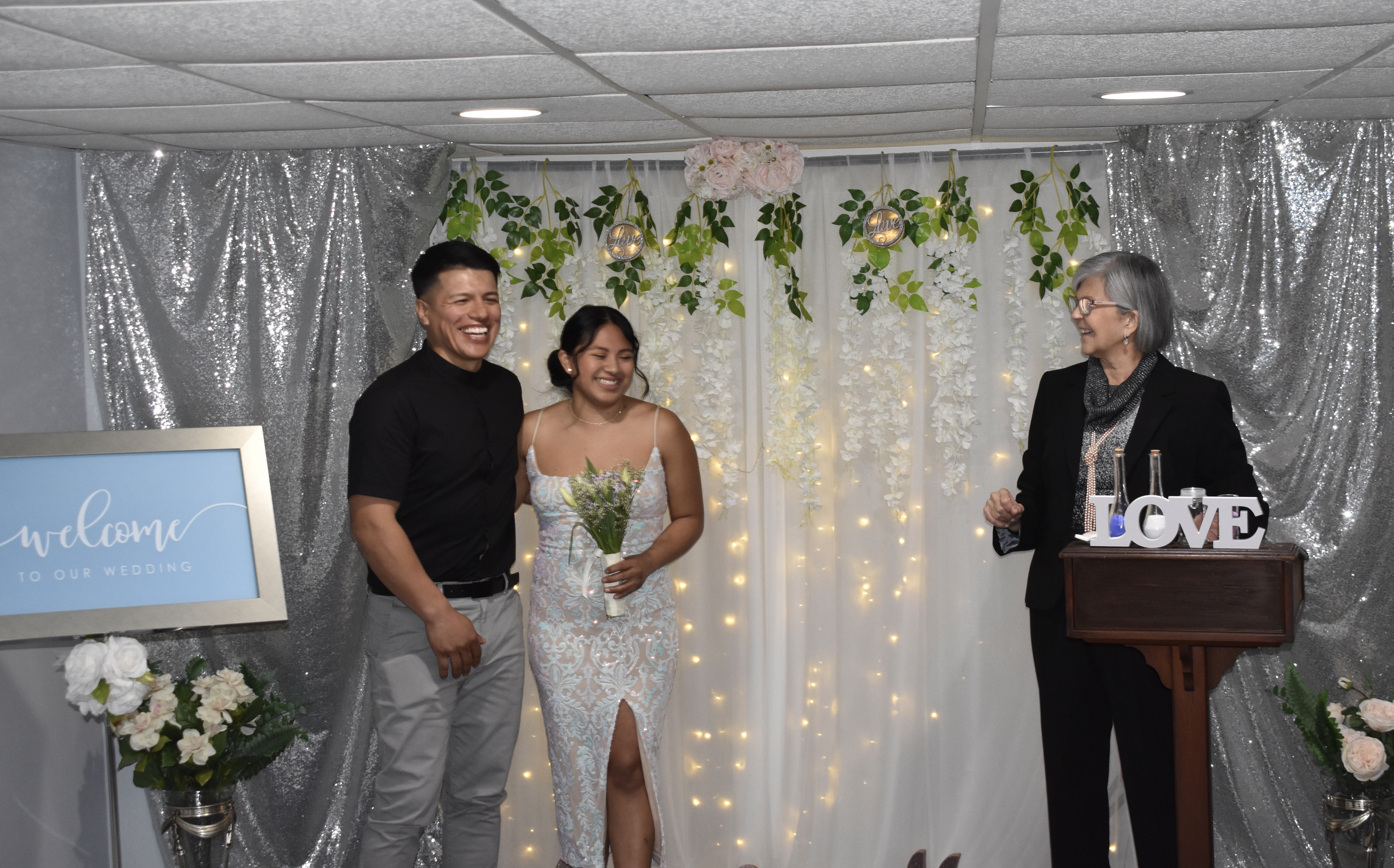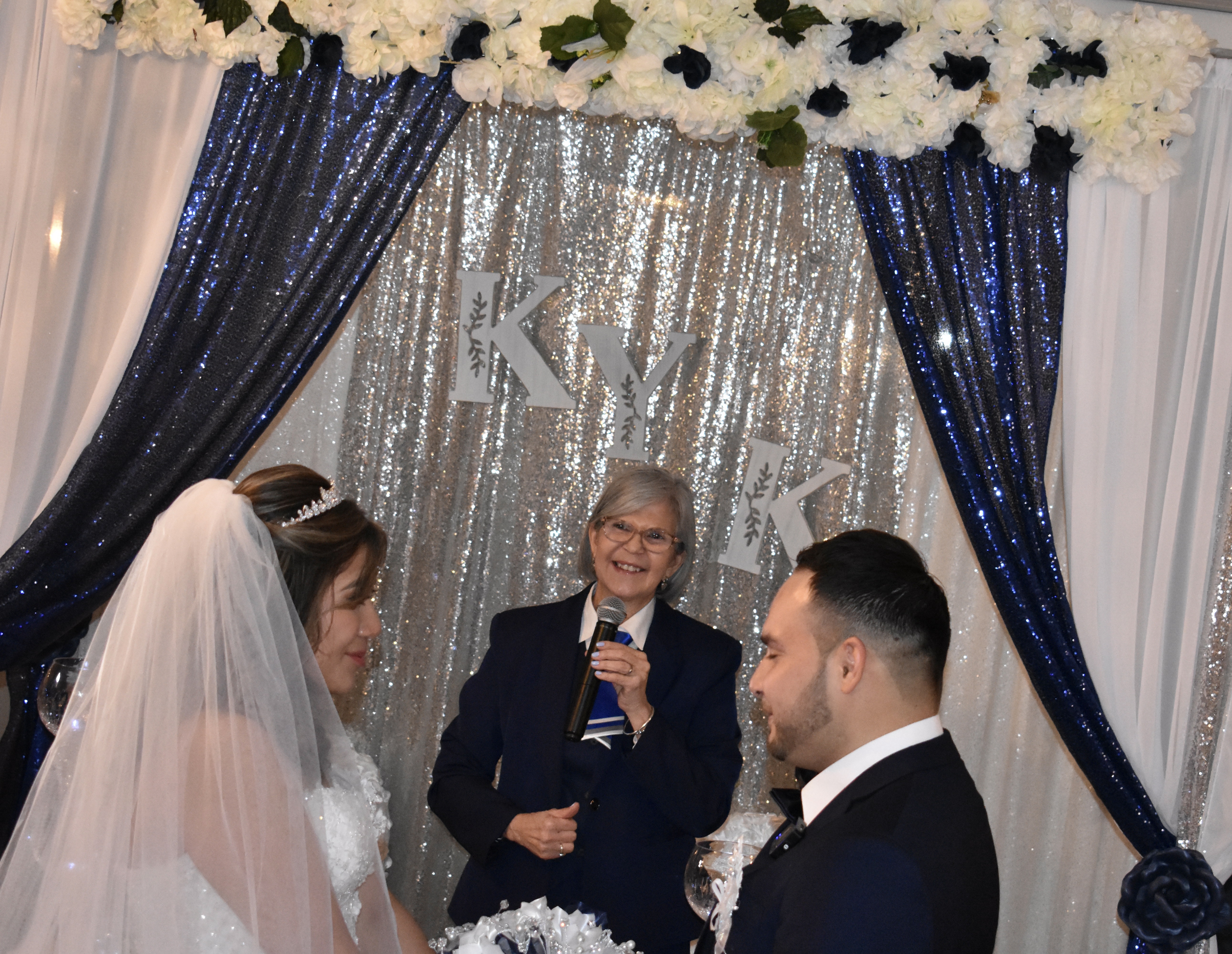 Esther y Oscar, ambos hondureños, tienen tres años de noviazgo. Esther vive en Honduras y viajó a NY a cumplir el sueño de casarse con su novio. Ambos son muy creyentes, por lo cual, combinaron hacer las dos ceremonias el mismo dia. Al yo terminar la boda civil, le di la palabra al Pastor (está a mi lado en las fotos) para que realizara la bendición religiosa. Los testigos de la unión fueron Nolberta y Adrian, a quien tuve el placer de casar hace unos años. Los padres de la novia estuvieron presentes por video llamada. Siempre un placer regresar a hogares de familias en las cuales ya he competido celebraciones. Boda 18/3/2023 en Bayshore.