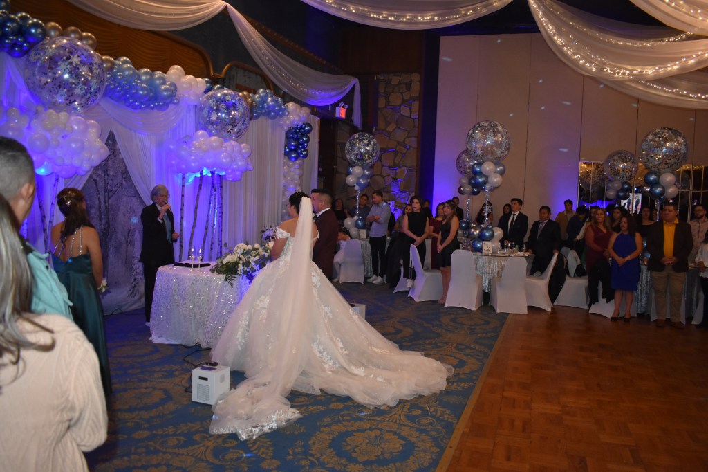 Karla y Ovidio, son ambos salvadoreños; tienen 16 años de relación y tres hijos. Estuvieron acompañados de padres, hijos, familiares y amigos. La decoración estuvo bellísima y el local quedó de ensueño. La novia usó un vestido maravilloso. Una boda que recordaran por siempre. Boda en febrero 2024