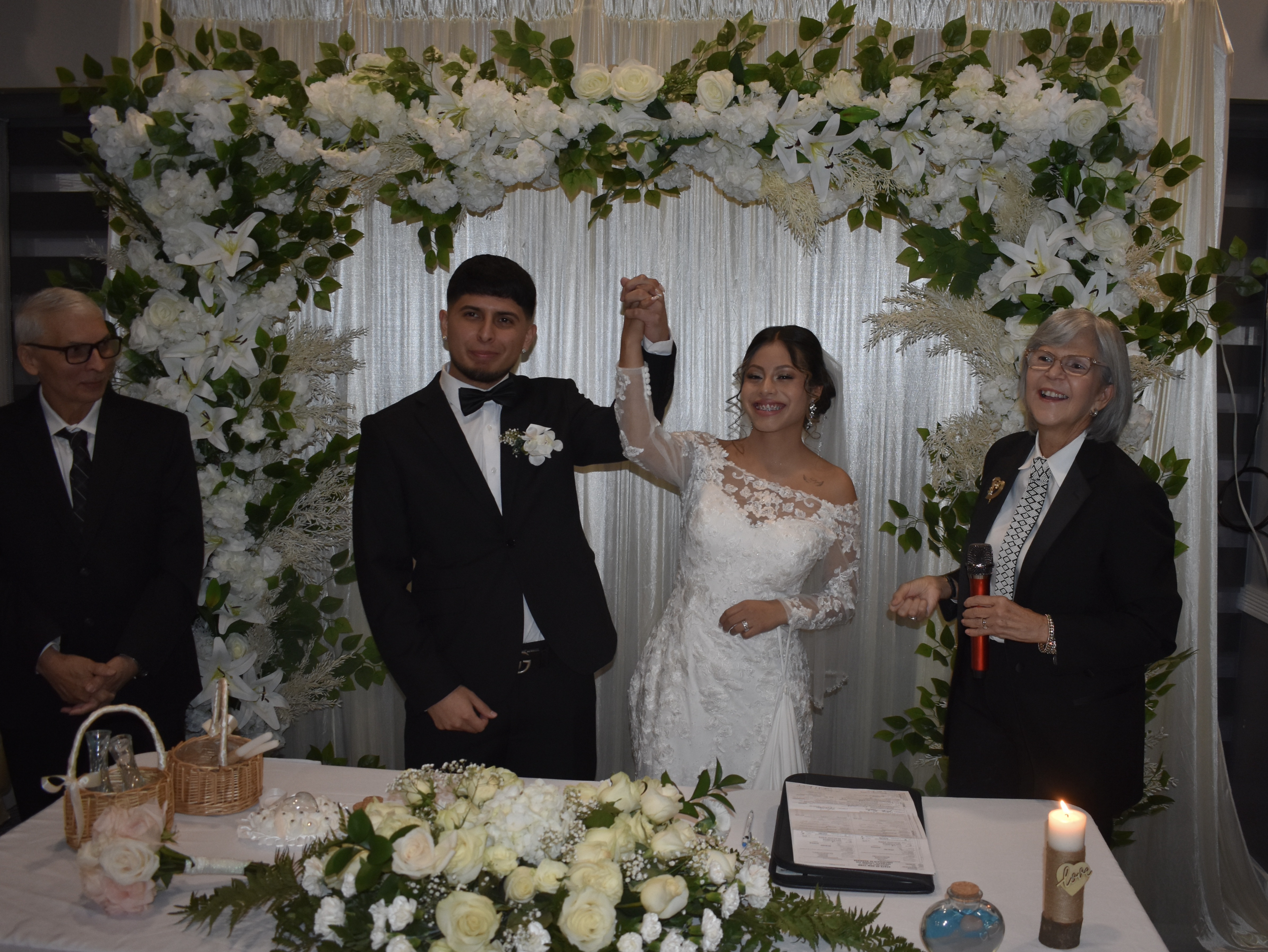 Melissa Dayanna y Victor Alexander, fueron presentados por un amigo en común; el cual, sin saber, hizo de Cupido entre ambos. Fue un amor trasparente y a primera vista. Hace un tiempo, casé a un tío del novio y eso hizo que la pareja me contactara. Una linda familia. Unos días después de esta boda, me llamó una tia de Victor, para decirme, que había visto la ceremonia y quiere que realice su boda en noviembre 2024. Hacer lindas ceremonias crea conexiones de amor que no se rompen fácilmente. Felicidades a los recién casados.