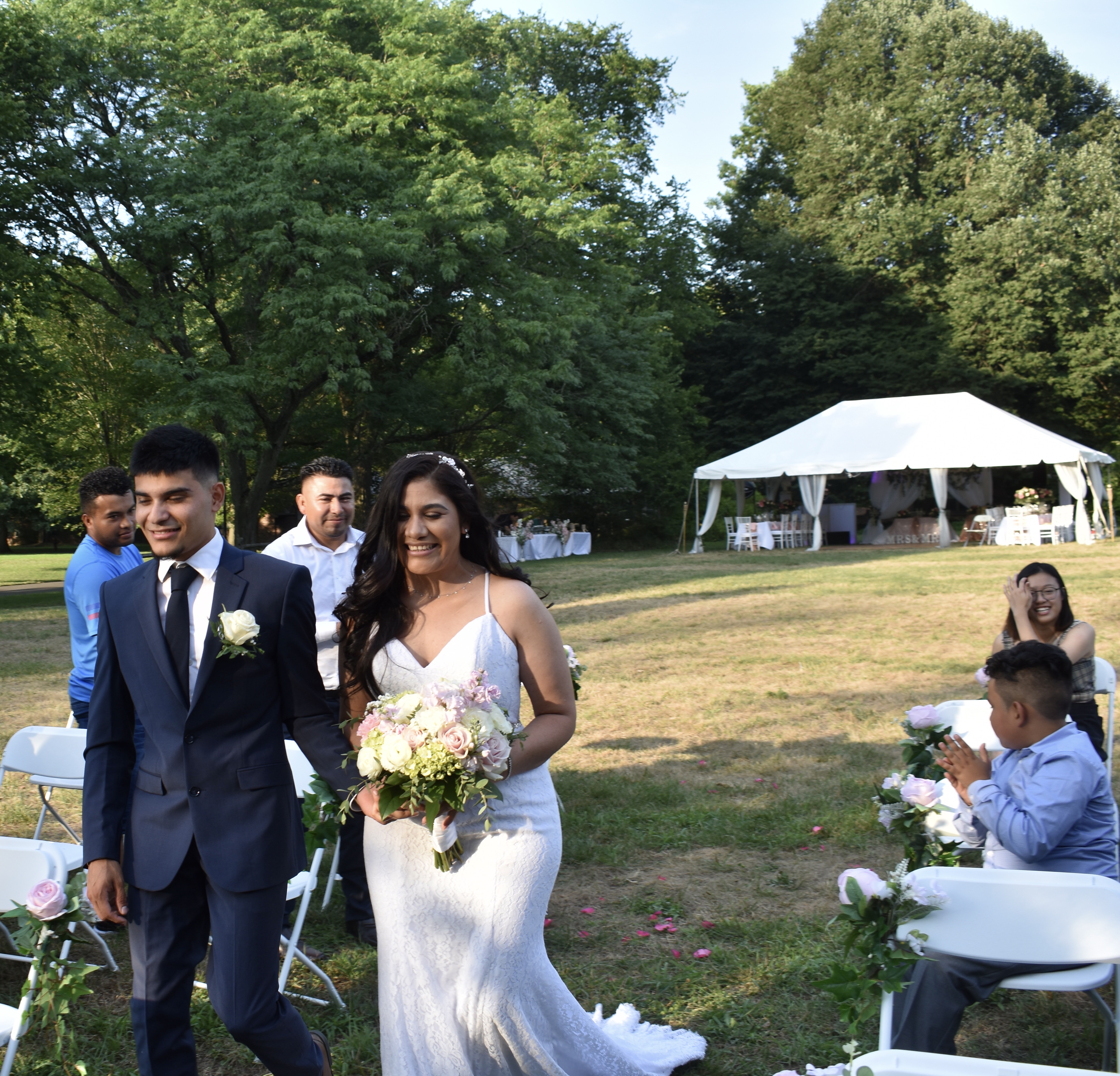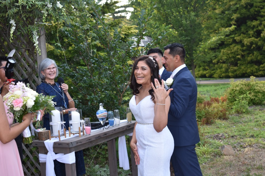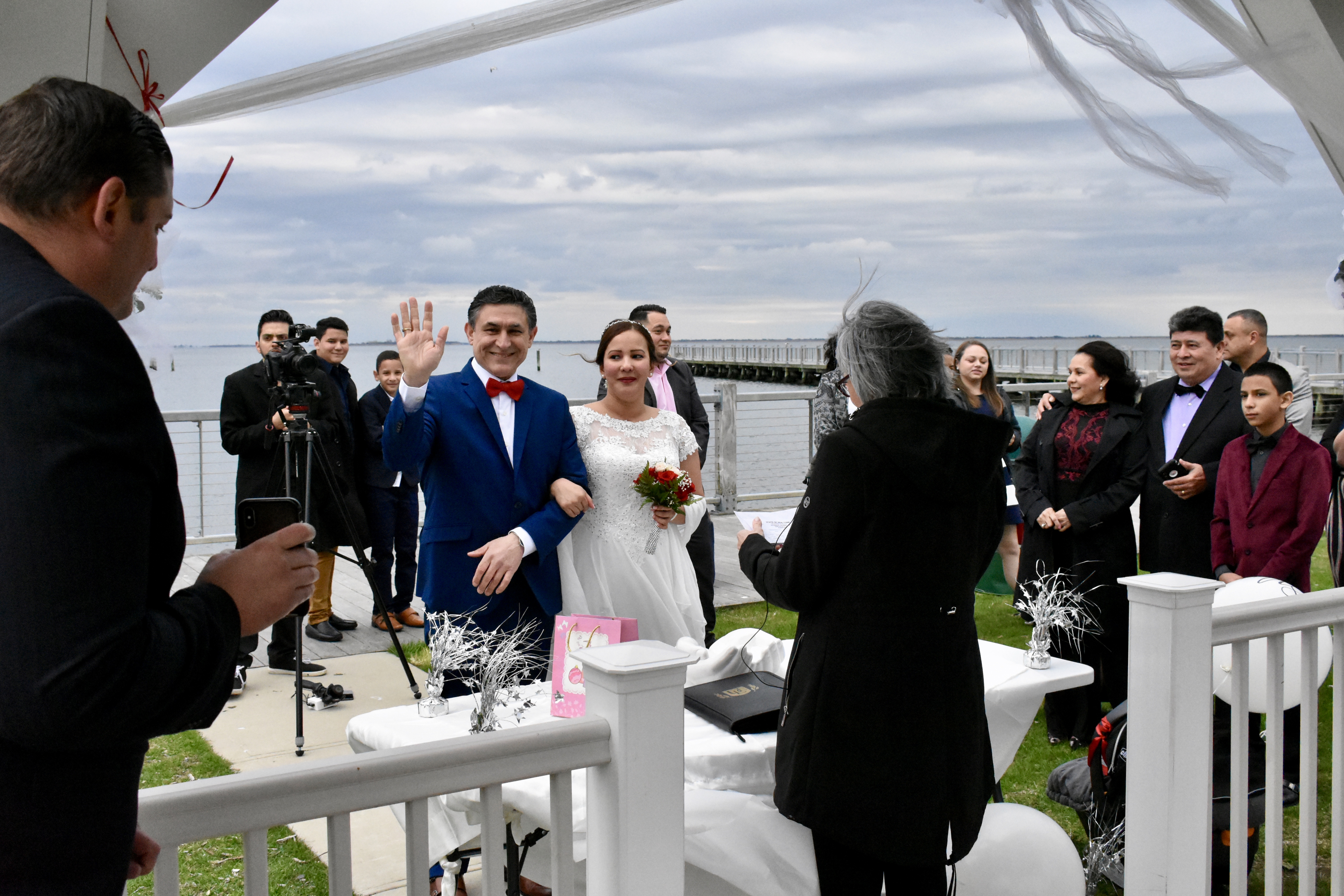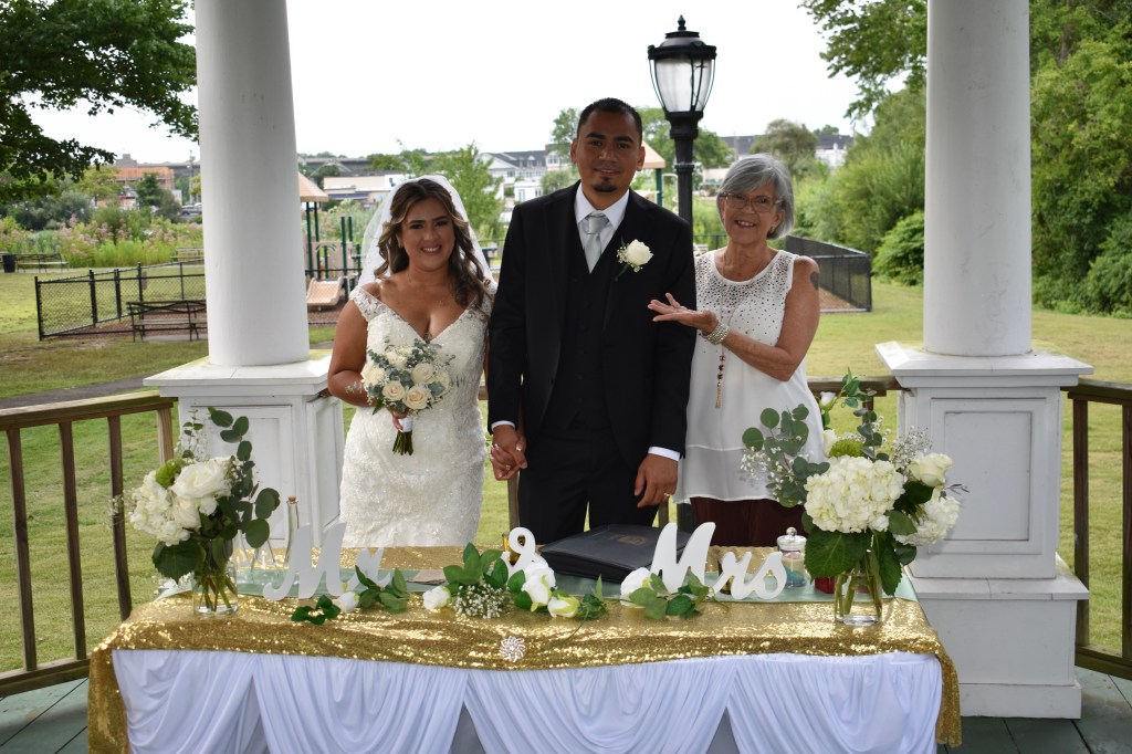 El 21 de noviembre, a pesar del frio, la ceremonia se realizó en el Parque Wantagh de Hempstead, en un lindo gazebo. Estaban los padres del novio, la hija menor de la novia y algunos amigos allegados a ambos. La madre de la novia estuvo presente via Zoom. La música de fondo provenía de una violinista. Cada detalle impecablemente pensado por la novia y apoyada por el novio.