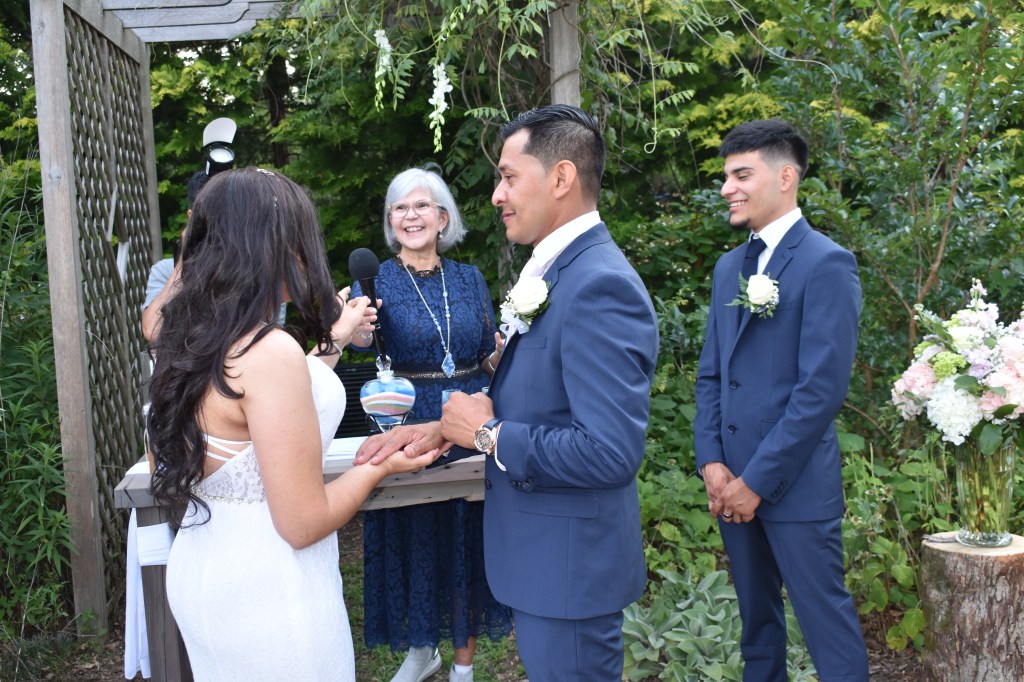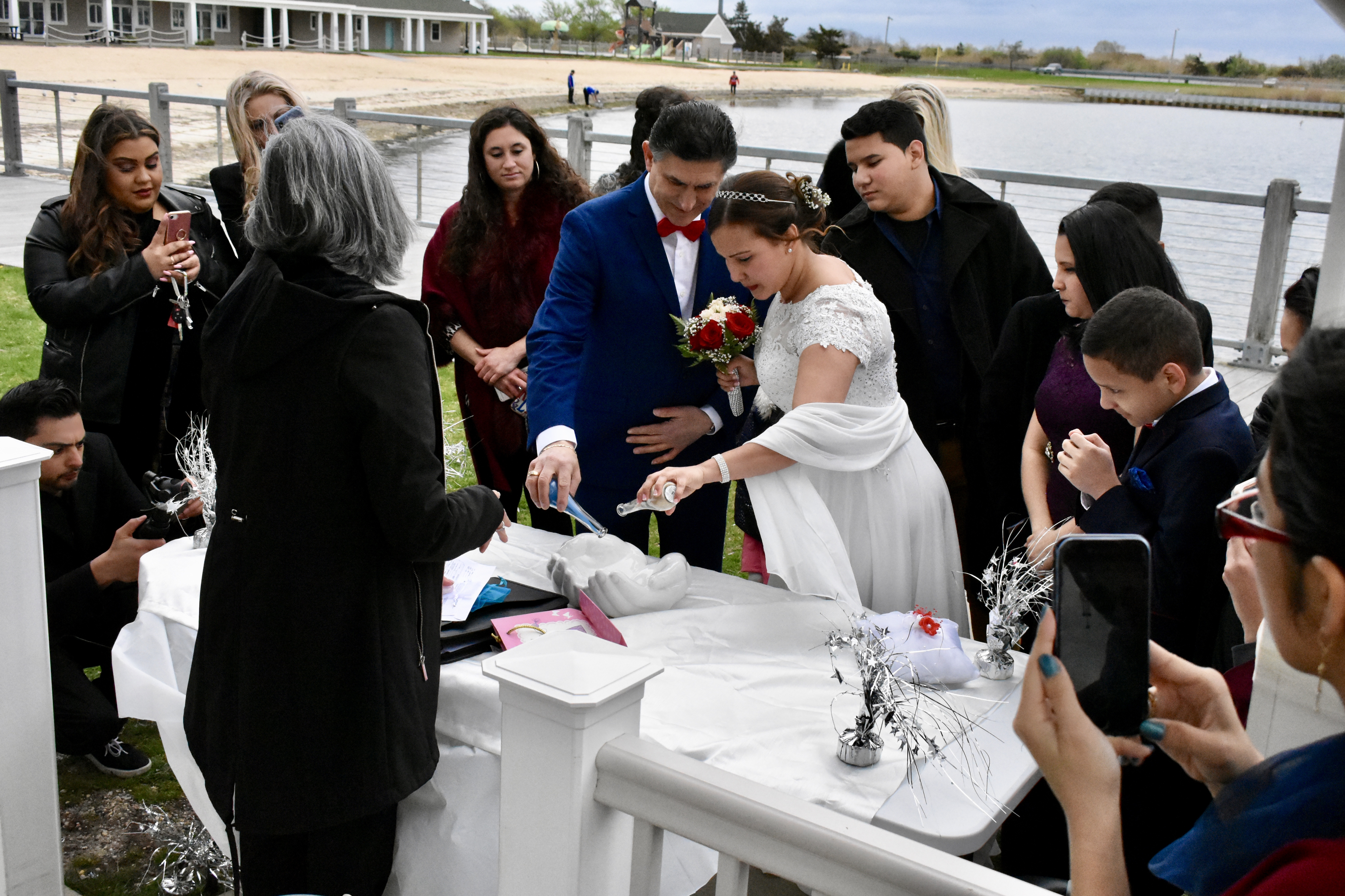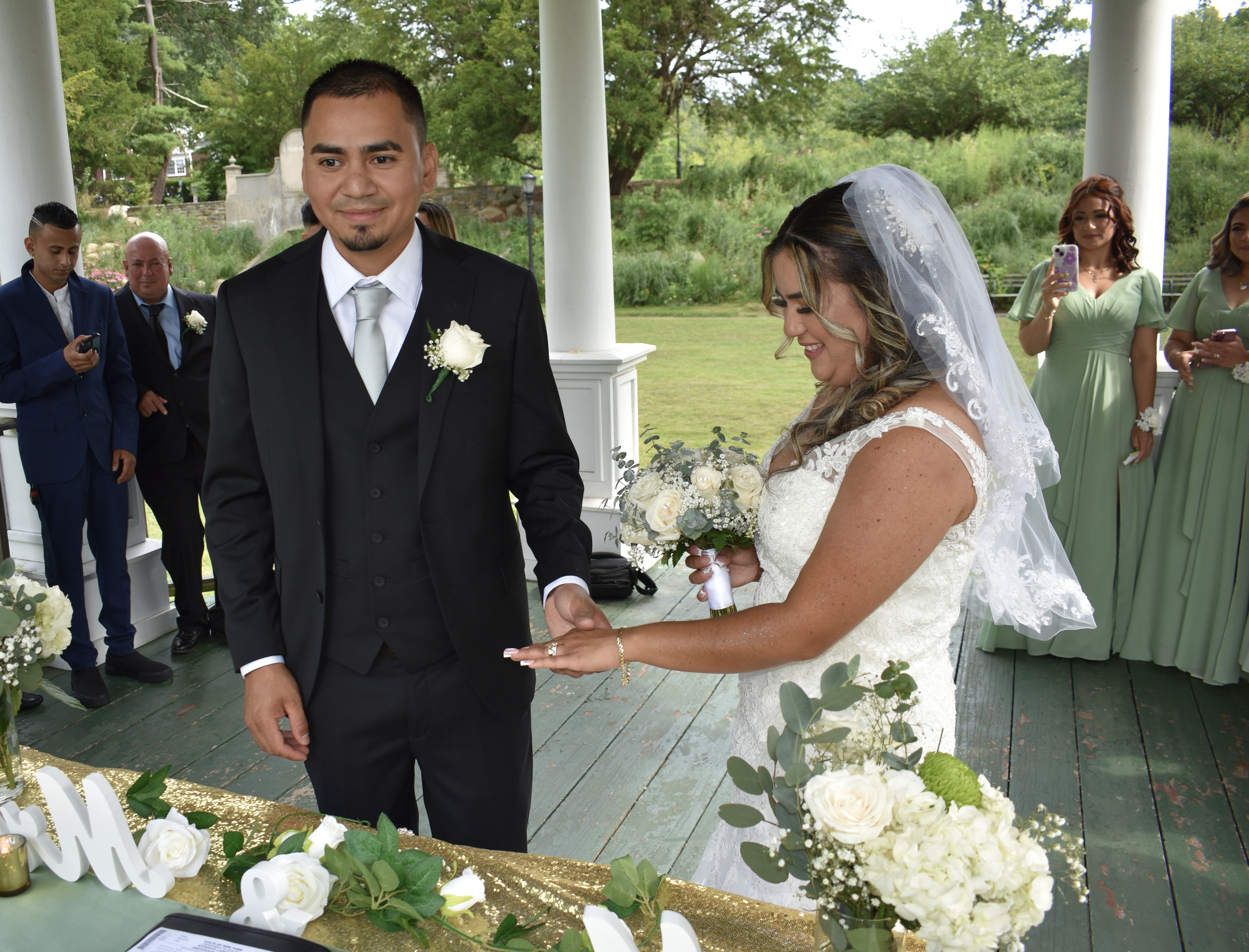 El 21 de noviembre, a pesar del frio, la ceremonia se realizó en el Parque Wantagh de Hempstead, en un lindo gazebo. Estaban los padres del novio, la hija menor de la novia y algunos amigos allegados a ambos. La madre de la novia estuvo presente via Zoom. La música de fondo provenía de una violinista. Cada detalle impecablemente pensado por la novia y apoyada por el novio.