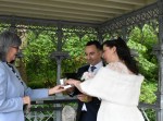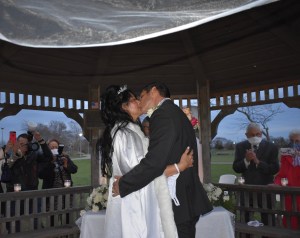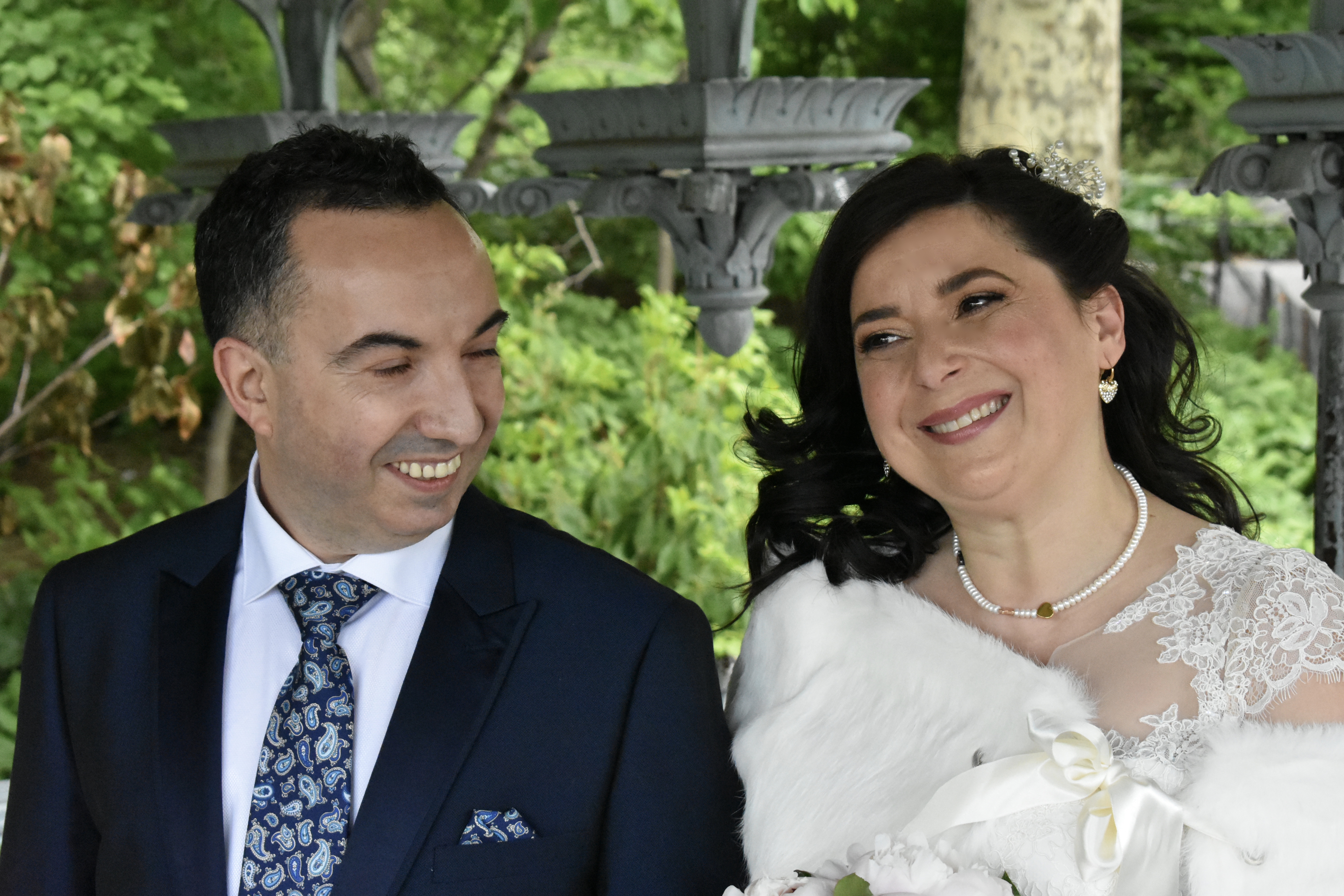 DSC_0760Los simpáticos y divertidos Inma y Luis, vinieron desde España a cumplir su sueño de casarse en Central Park. Me contactaron hace un largo tiempo y diseñamos la ceremonia via Skype. Todo prometía ser hermoso en el lugar seleccionado: Wagner Cove, un pequeño gazebo de madera al lado de un lago dentro del hermoso parque. Lo que no pudimos predecir con tanta antelación, es que los efectos de un huracán harían que el día tuviera lluvias tormentosas que exactamente llegaban a las horas pautadas para la boda. No podíamos posponer el evento, debido a los planes de vuelo de la pareja. Adicionalmente, debo comentar que vinieron solos por lo cual no tenían testigos, los cuales inicialmente pensamos en conseguir en los asistentes al parque.