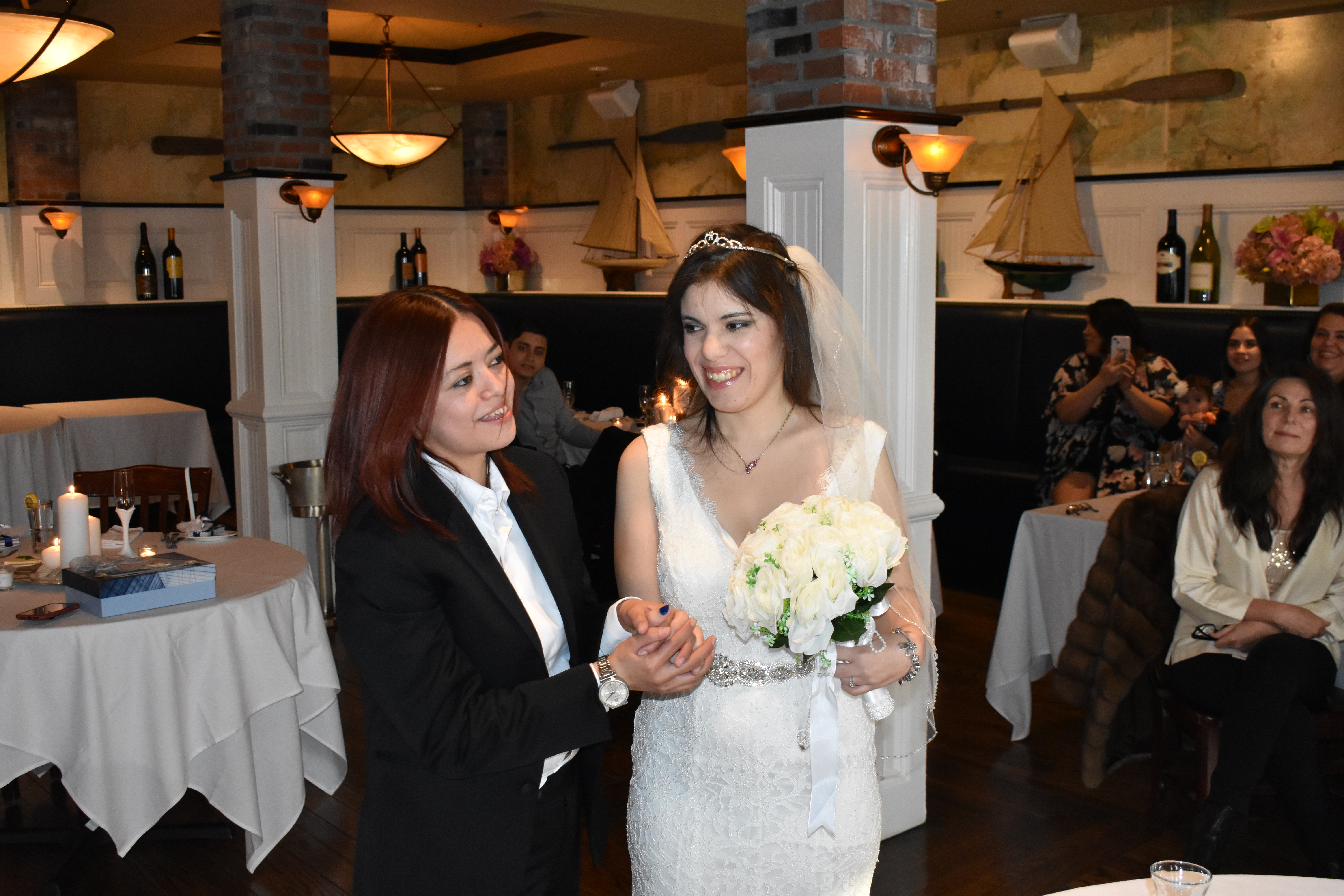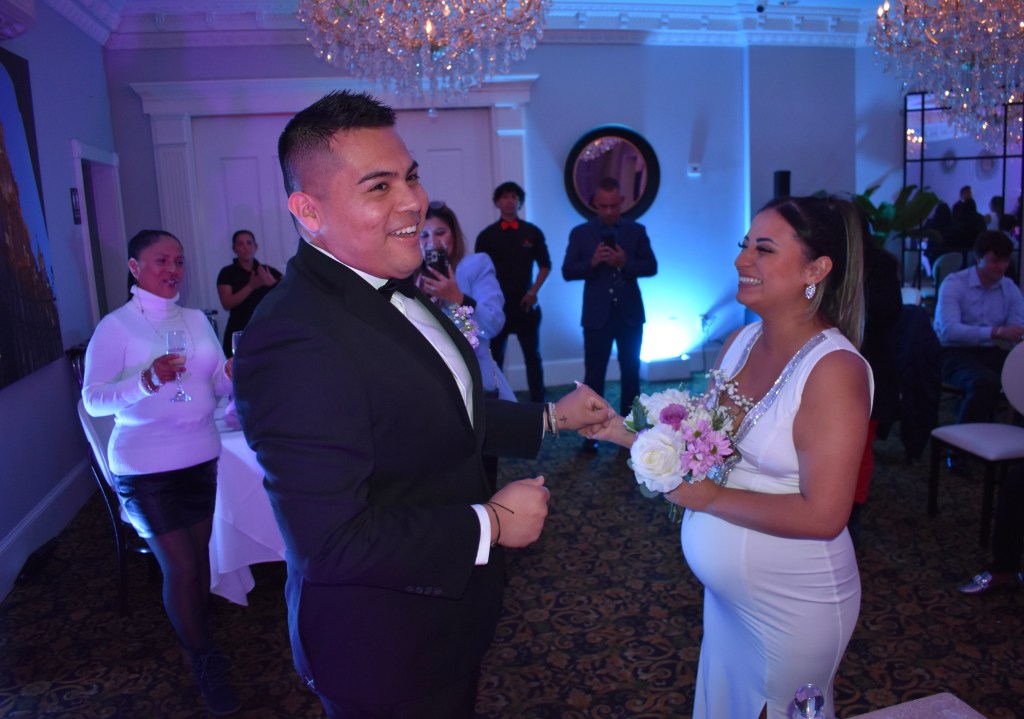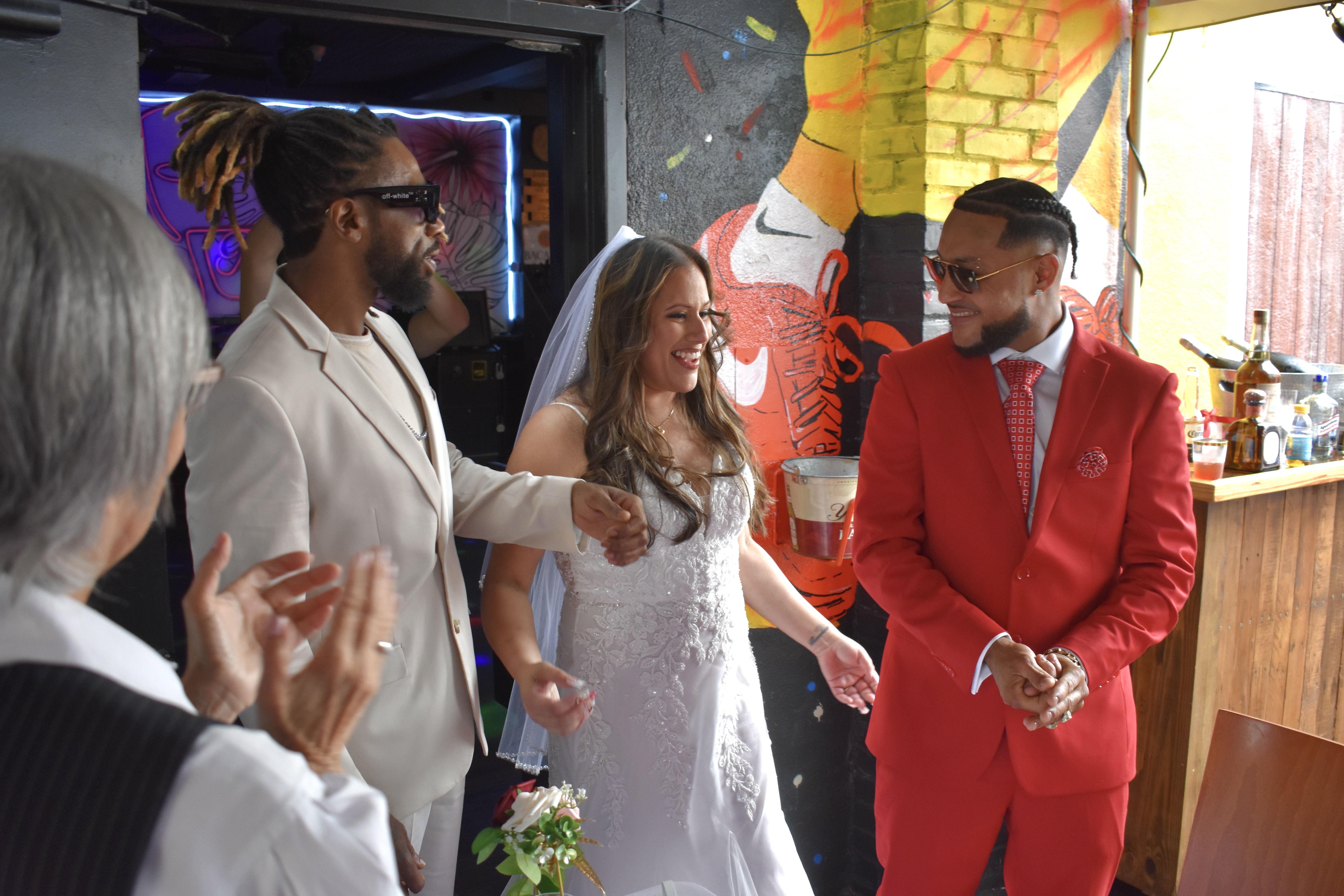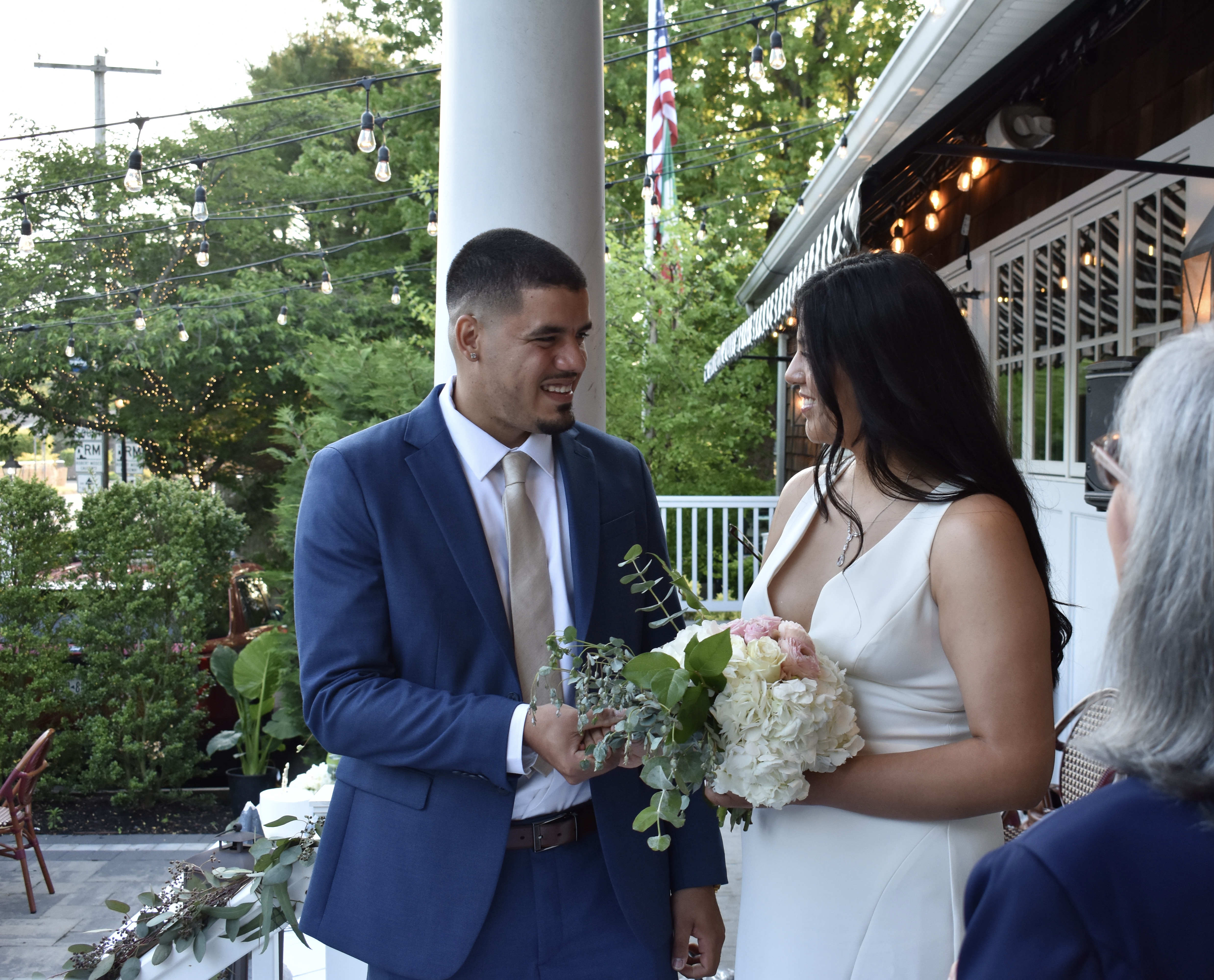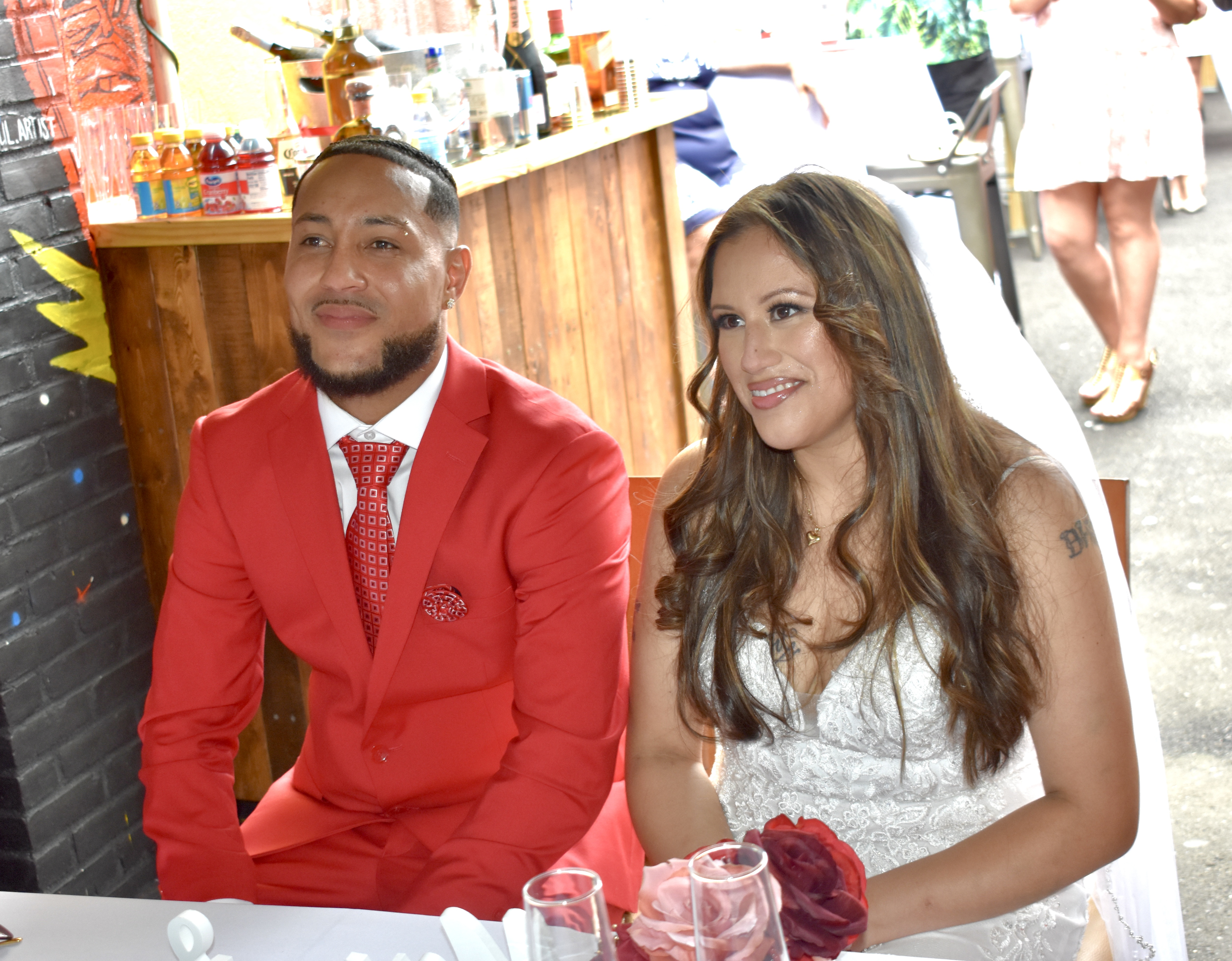 En Long Island, es usual, que se casen personas, con diferentes nacionalidades. Ver la union de culturas en las bodas es sublime. Amanda nació en New York, de padre mexicano y madre americana. Angel es dominicano y sus padres también. La boda fue bilingüe para entendimiento de los presentes. El evento se realizó en Copas Bar, restaurante dominicano. Un ambiente alegre y festivo con decoración en rojo, color del traje del novio.