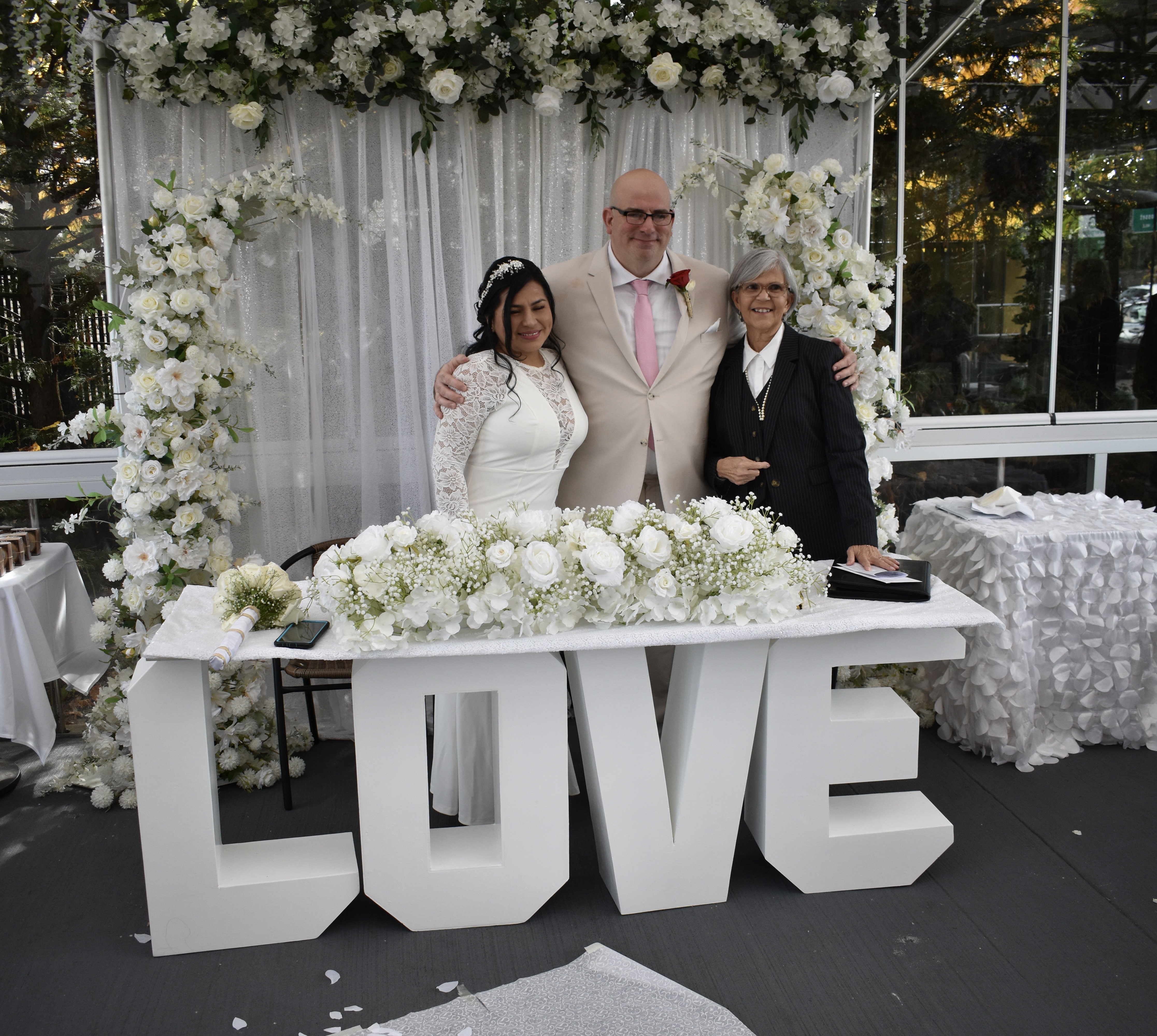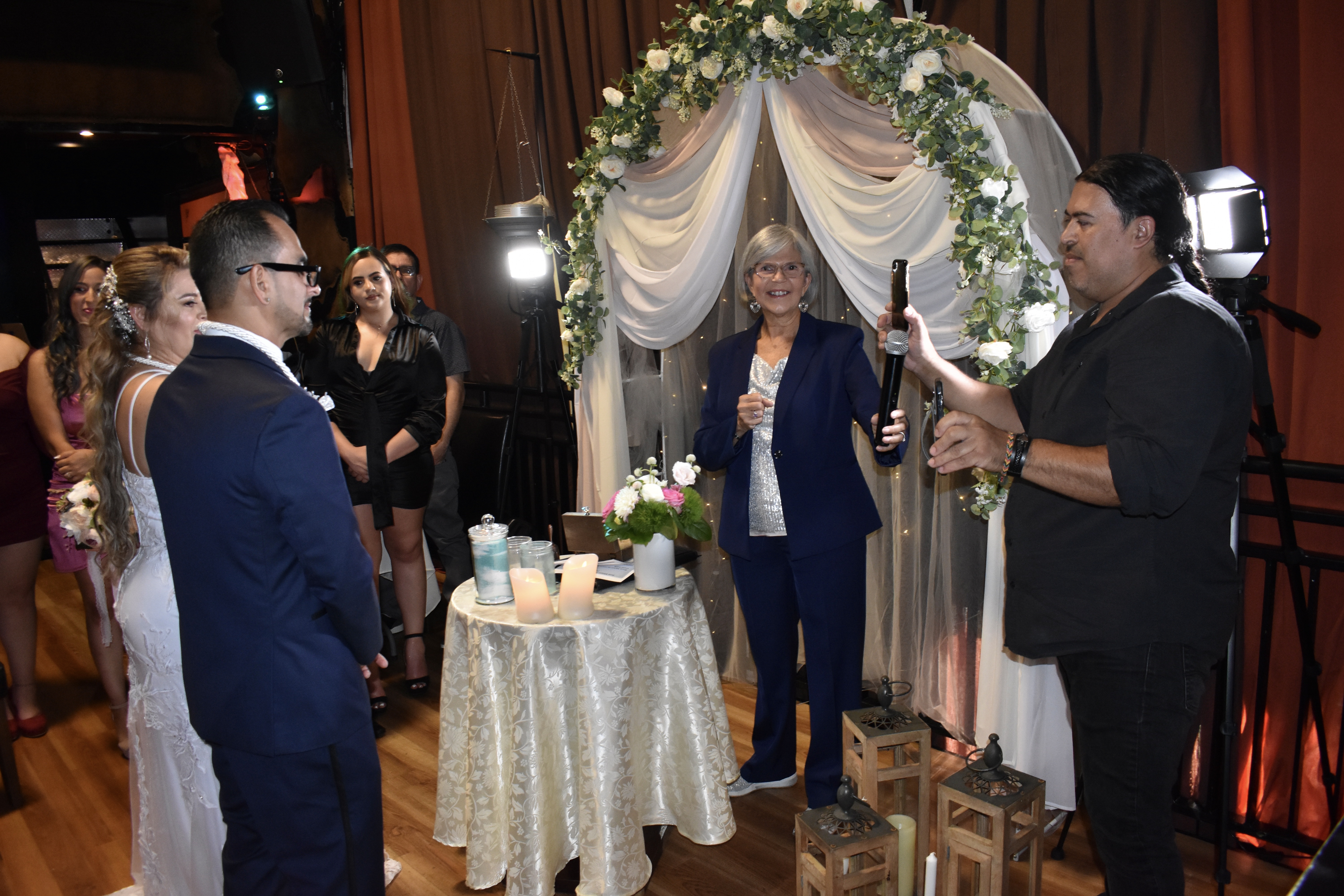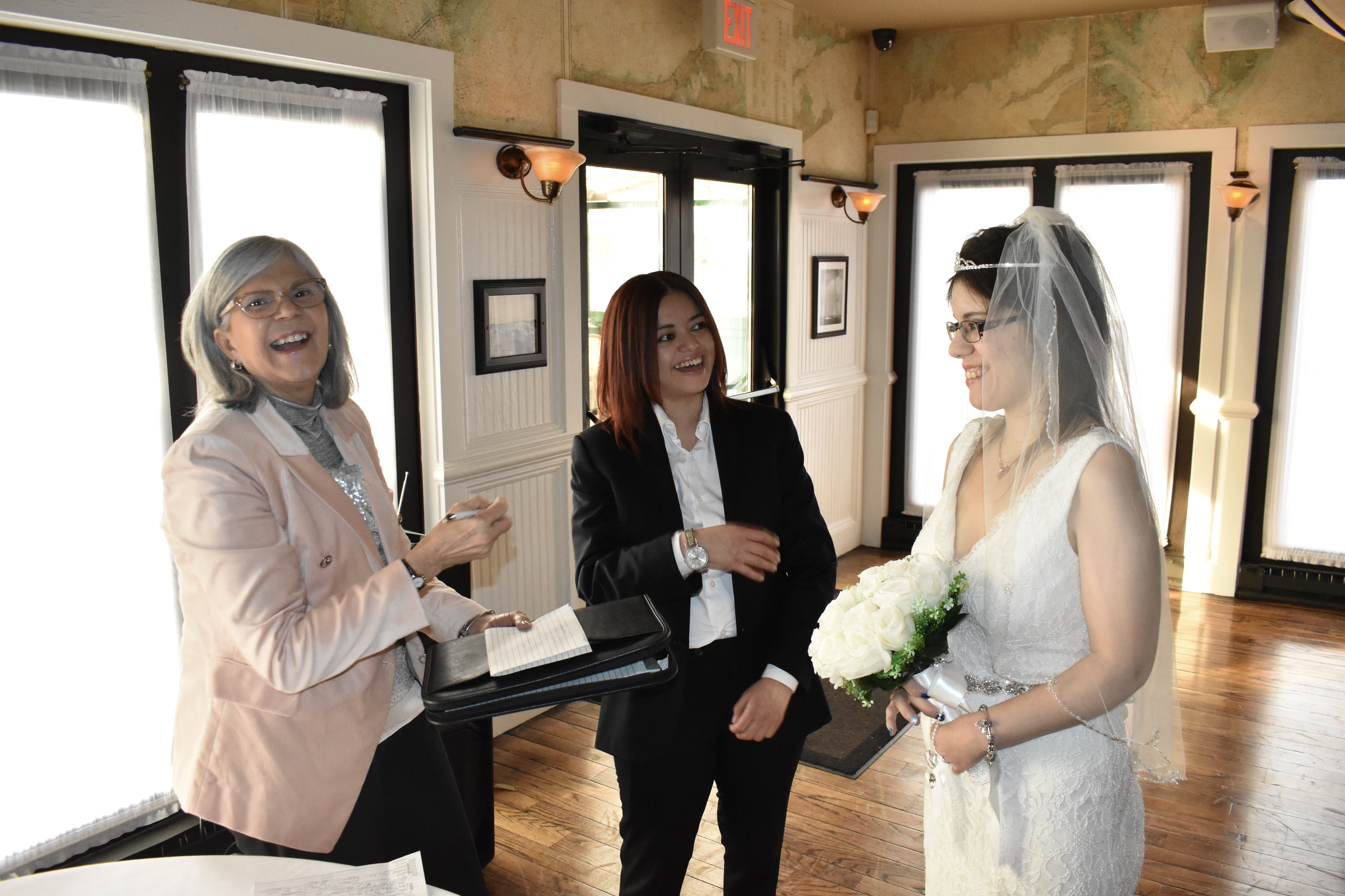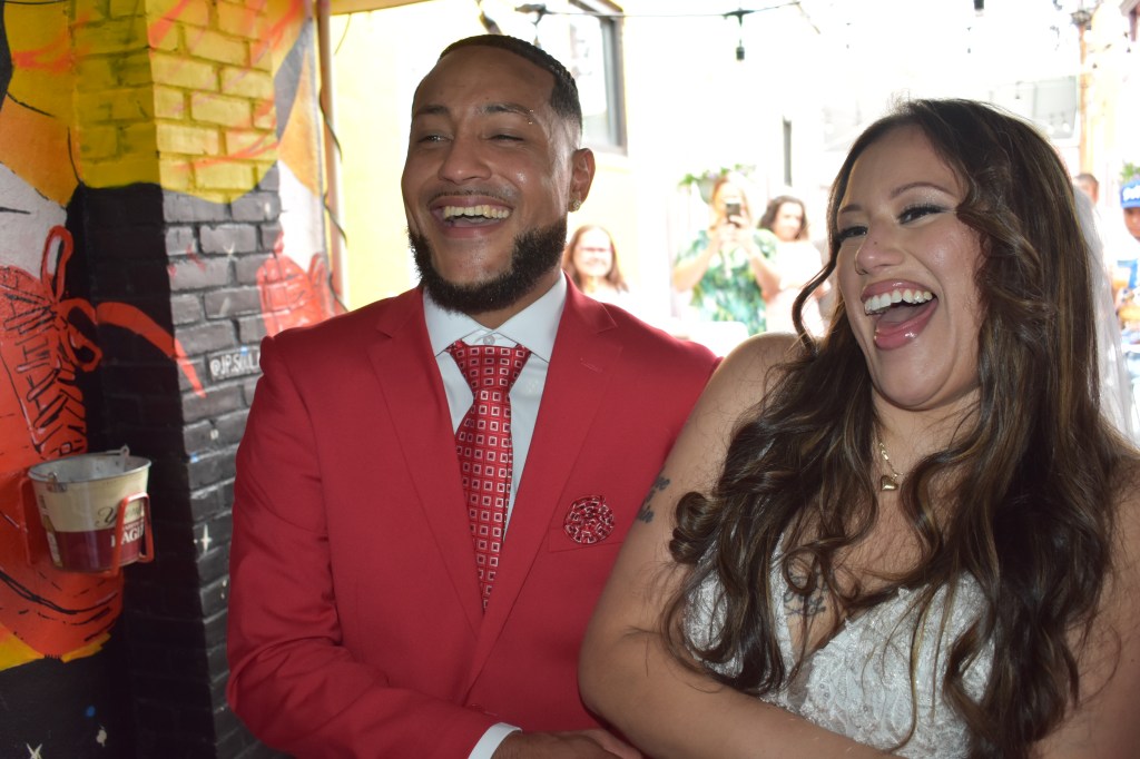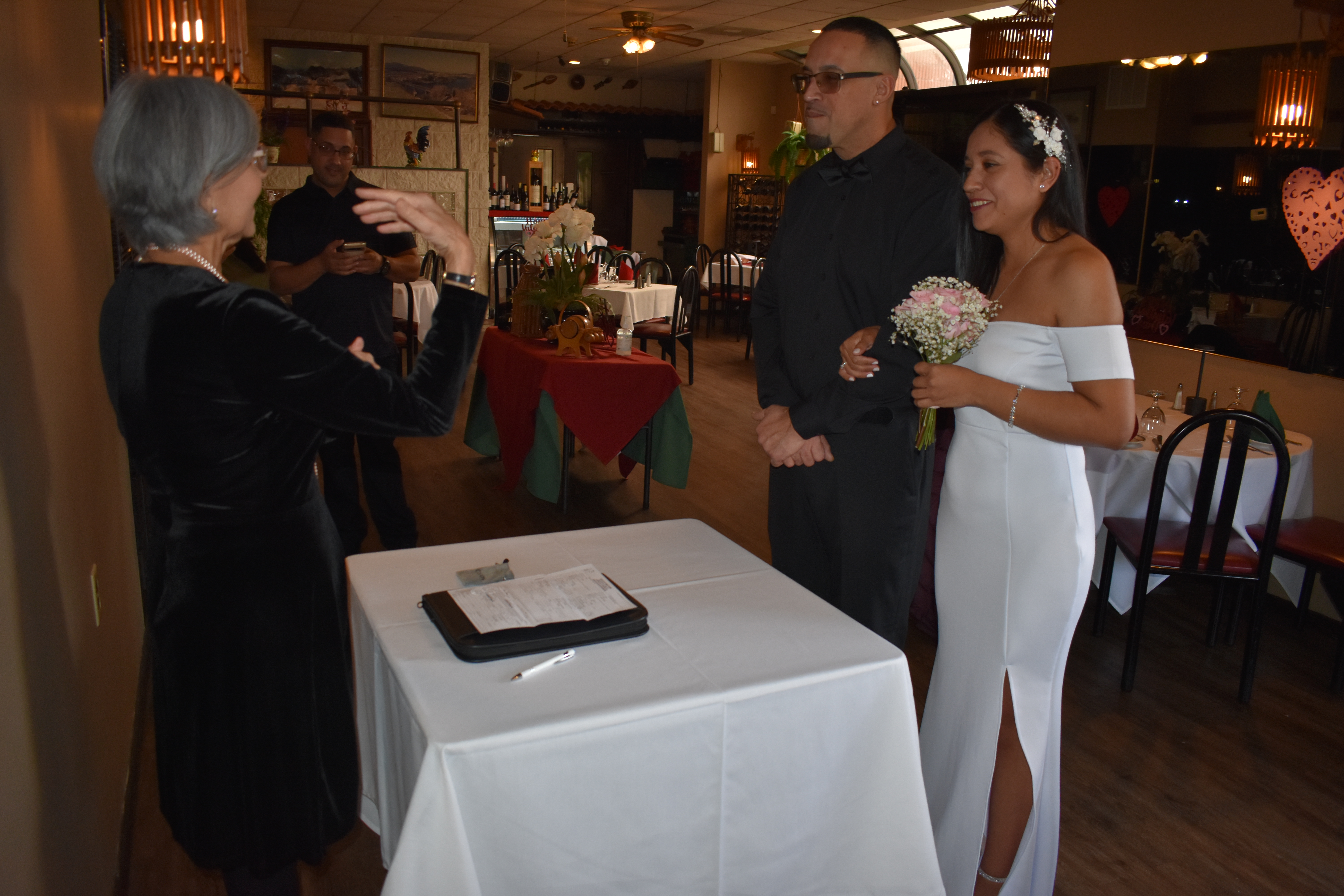 En Long Island, es usual, que se casen personas, con diferentes nacionalidades. Ver la union de culturas en las bodas es sublime. Amanda nació en New York, de padre mexicano y madre americana. Angel es dominicano y sus padres también. La boda fue bilingüe para entendimiento de los presentes. El evento se realizó en Copas Bar, restaurante dominicano. Un ambiente alegre y festivo con decoración en rojo, color del traje del novio.