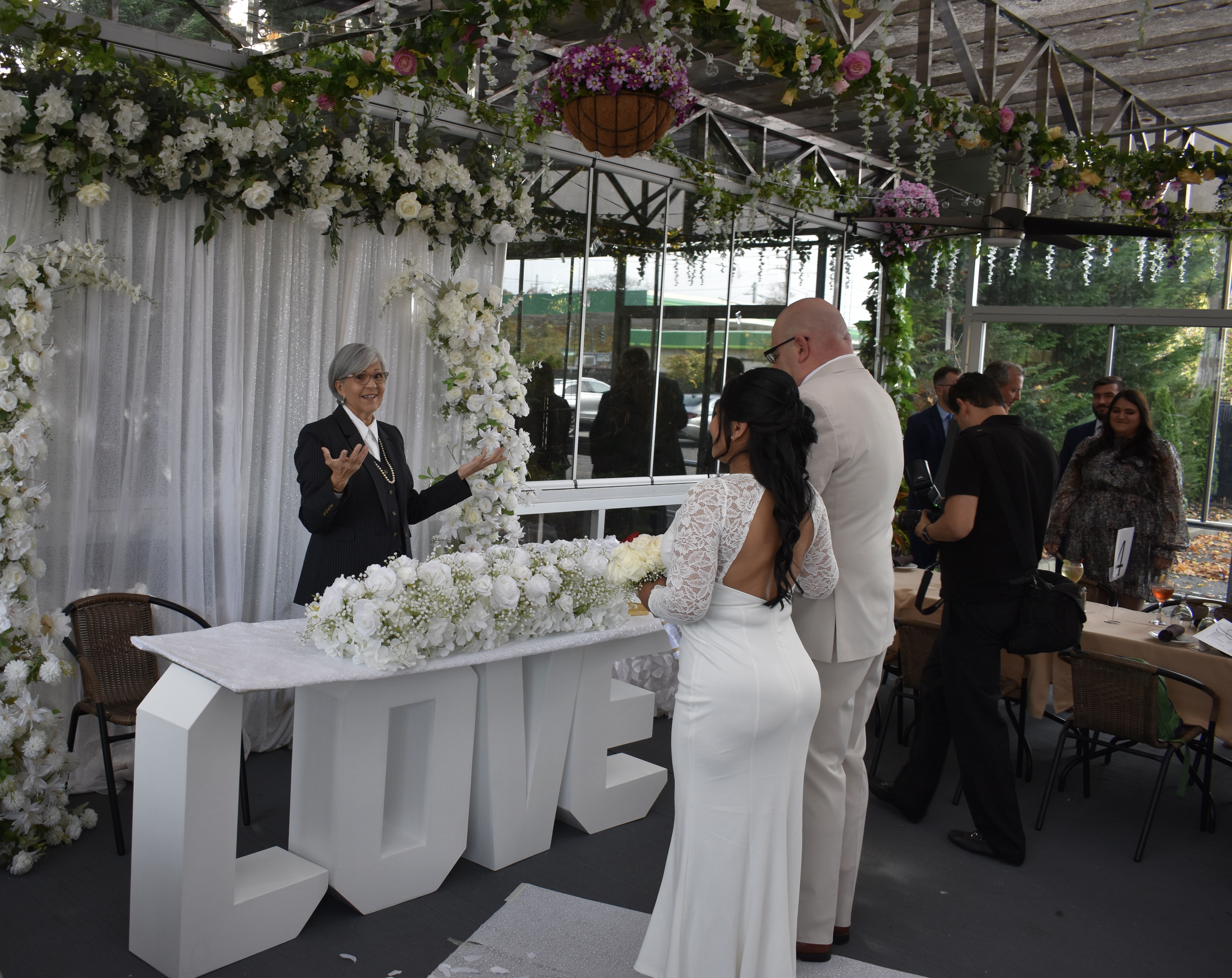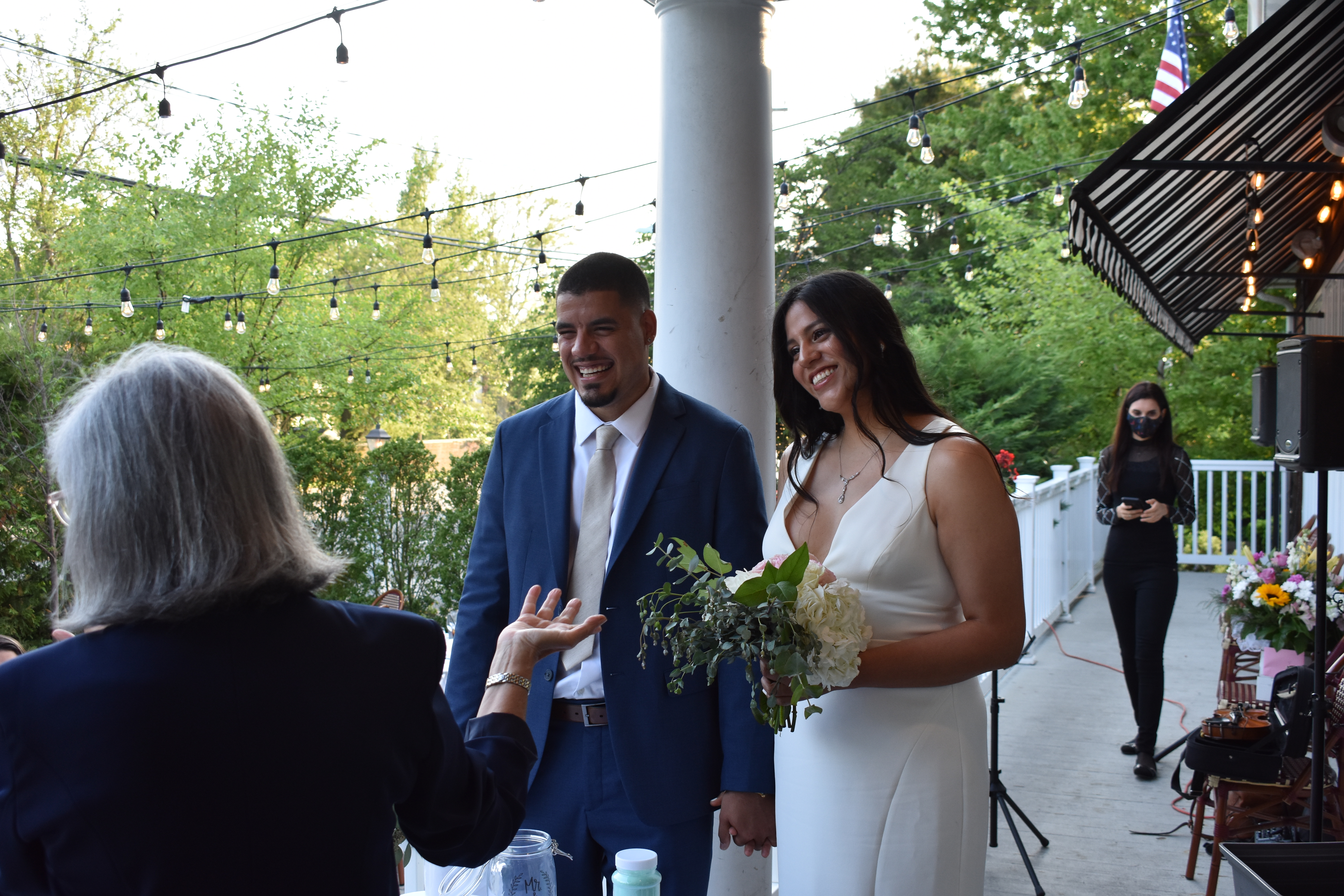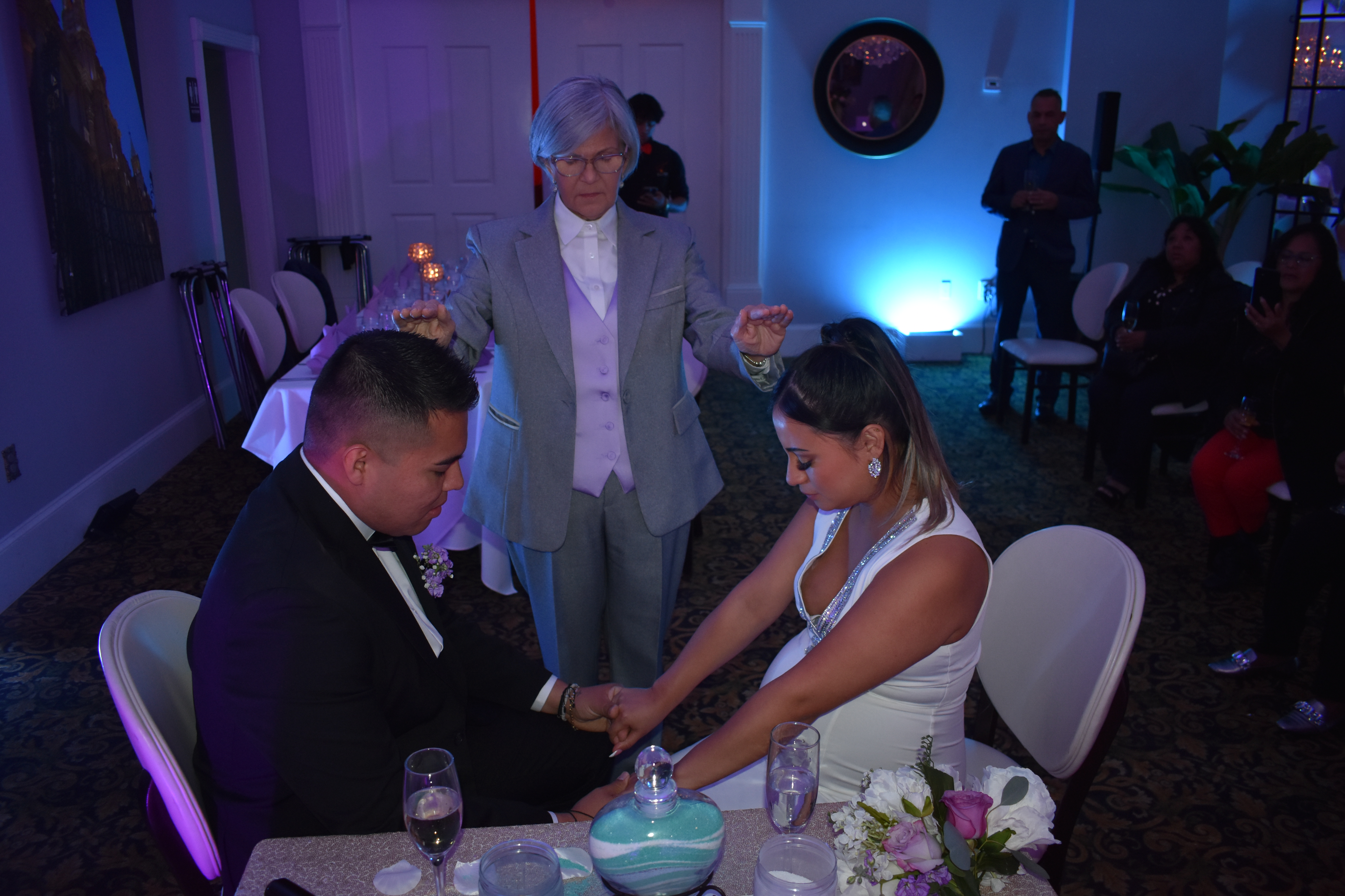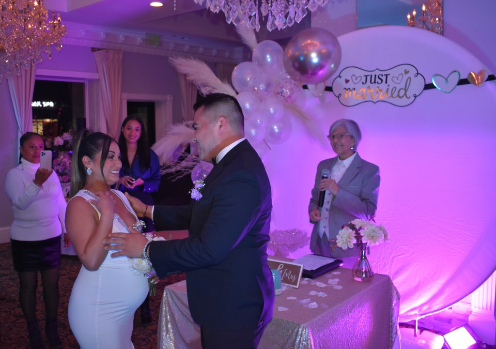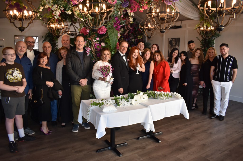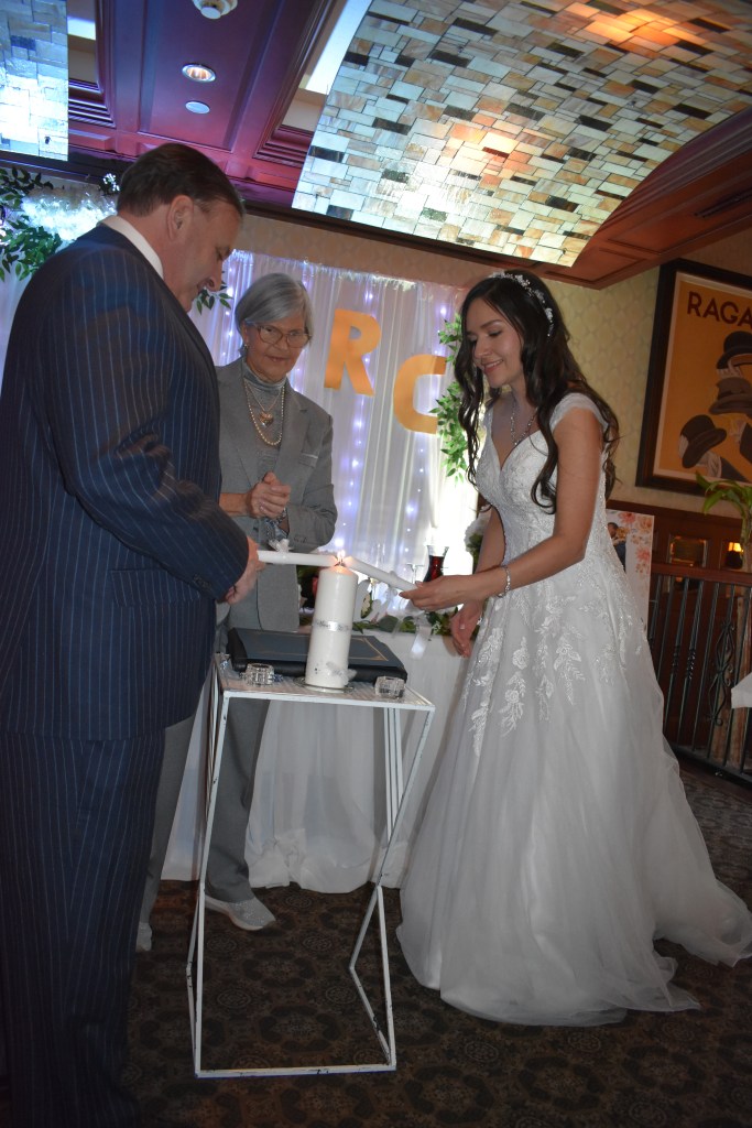 En Long Island, es usual, que se casen personas, con diferentes nacionalidades. Ver la union de culturas en las bodas es sublime. Amanda nació en New York, de padre mexicano y madre americana. Angel es dominicano y sus padres también. La boda fue bilingüe para entendimiento de los presentes. El evento se realizó en Copas Bar, restaurante dominicano. Un ambiente alegre y festivo con decoración en rojo, color del traje del novio.