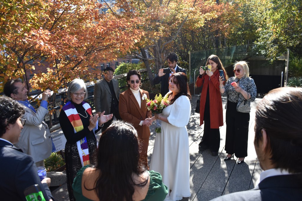 Romántica, bohemia, divertida y natural seria una excelente definición del entorno de la boda de Mariana y Manuela, realizada el 22 de octubre, 2022 en el Hight Light Park en Manhathan. Las novias lucían radiantes y felices; acompañadas de sus padres y amigos. Con el frio del otoño, abrazadas por el calor que brinda el amor que las ha unido por dos años.