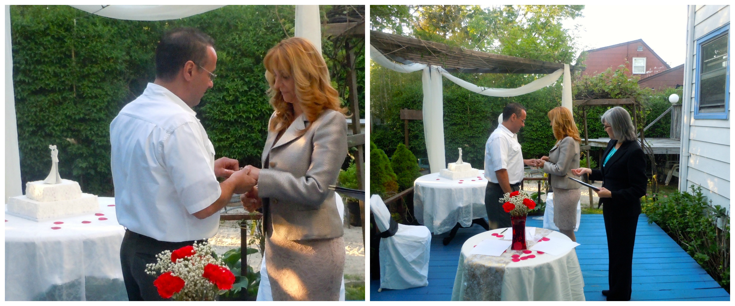 Oficiar la boda de mi estimada Nilda, fue un gran placer. Conozco a Nilda, desde el 2012, cuando llegó a Love Reiki Center, recomendada por una apreciada pareja, mis queridos estudiantes de Reiki, Juan y Sandra Aguero. Desde entonces, Nilda siempre ha sido constante en su asistencia al centro. Su alegre sonrisa, siempre la caracteriza y por ello las risas fluyeron constantemente en esta divertida reunión donde un ambiente alegre y amigable predominó en toda la ceremonia. Durante el tiempo que la conozco he sido testigo de como el amor ha ido floreciendo entre Nilda y su ahora esposo, Salvatore.