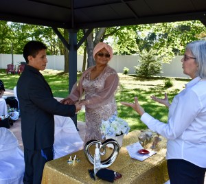 Al momento de finalizar la ceremonia, me agarraron de imprevisto, ya que por la cuarentena no me tomo la acostumbrada foto junto a los novios y en este caso, en un segundo, José me abrazó rápidamente y a su lado, la novia y en las fotos pueden ver mi expresión de sorpresa. Risas al por mayor.