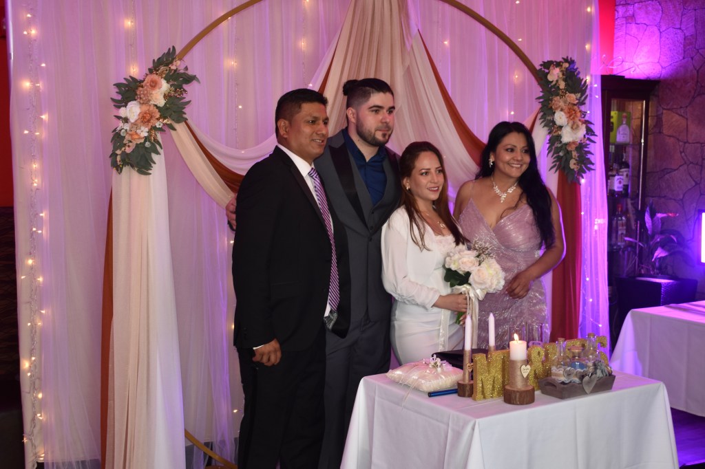 Bodas de culturas diferentes, es cada vez, más usual en New York. Dora es una linda peruana que conoció y se enamoró de José, de Guatemala. Dora era cajera un establecimiento y José comenzó a ser el mejor cliente; su incentivo era socializar con Dora. Se conocieron en el 2019, sin embargo, se hicieron novios en el 2021. En el dia de la boda, 12/6/2023, Doris tenia tres meses de embarazo, un secreto que revelaría al final de la ceremonia, para la alegría de todos los presentes. José llegó con su madre, Margarita Lemus. Los padrinos de anillos, Alicia Pineda y Ciro Julcapama, quienes viajaron desde Peru para estar en el evento. Los testigos fueron Julissa Baltazar y Edgar Avila, quienes ademas de ser amigos de la pareja, le hicieron una bella decoración en el Rest. La Candela. Dora llegó con su madre, Dora Pineda. Felicidades a los recién casados y sus allegados.