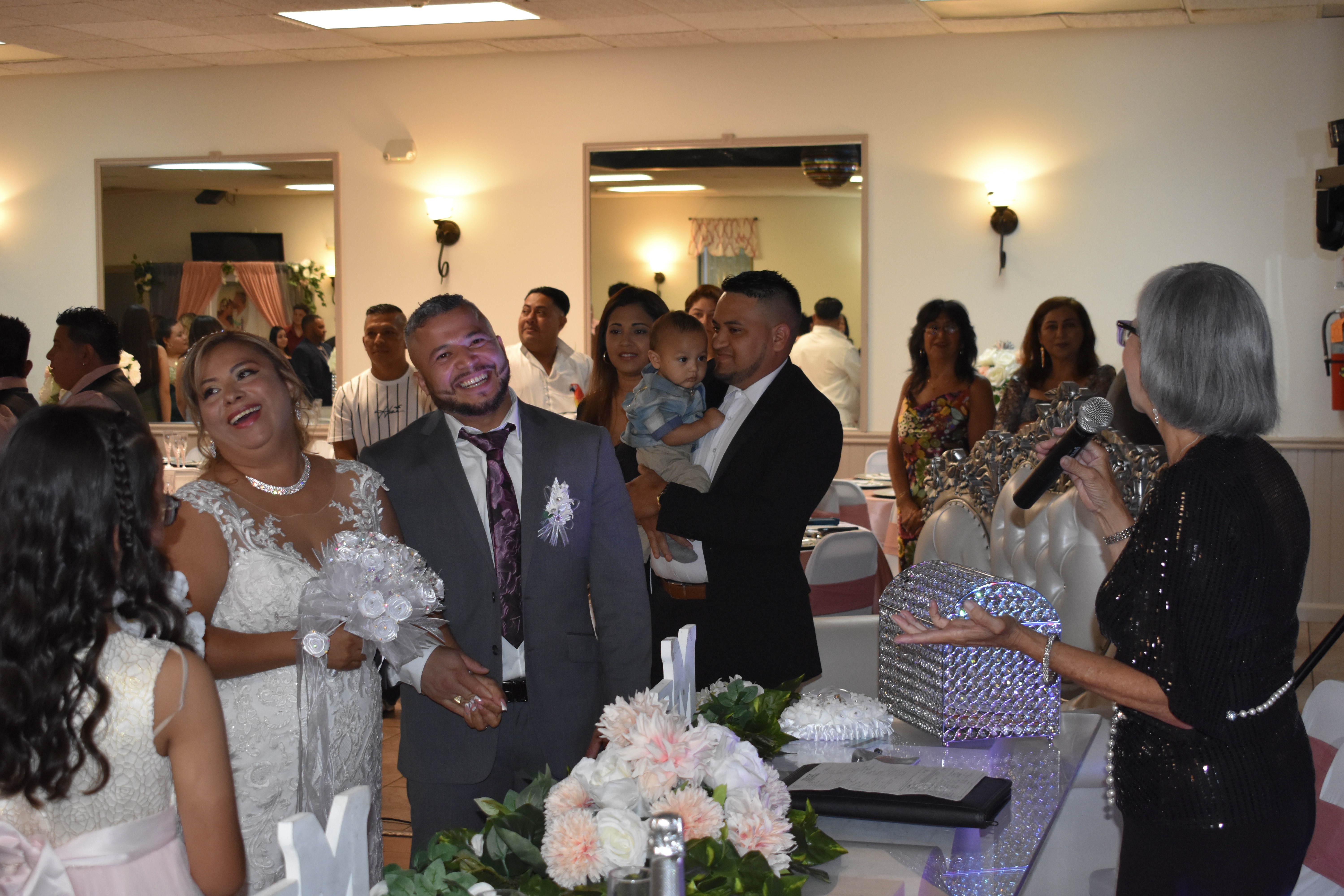 La fecha de la boda de Abigail Esmeralda e Irvin Manuel, coincide con su aniversario; cumplen doce años y cuatro meses de estar juntos. Ambos son salvadoreños y tienen un hijo de cuatro años de edad. El evento se realizó en un salón del restaurante Karla Pizza & Grill, en Hempstead, el 11/2/2023. Los padres no pudieron estar presentes, sin embargo, el novio entró acompañado de una tía que es como una segunda madre para ambos, Maria Castillo. La novia entró acompañada de Gustavo Quintanilla. Los anillos los trae el hijo de la pareja, Santiago Martinez acompañado de la niña Madison Sanchez.