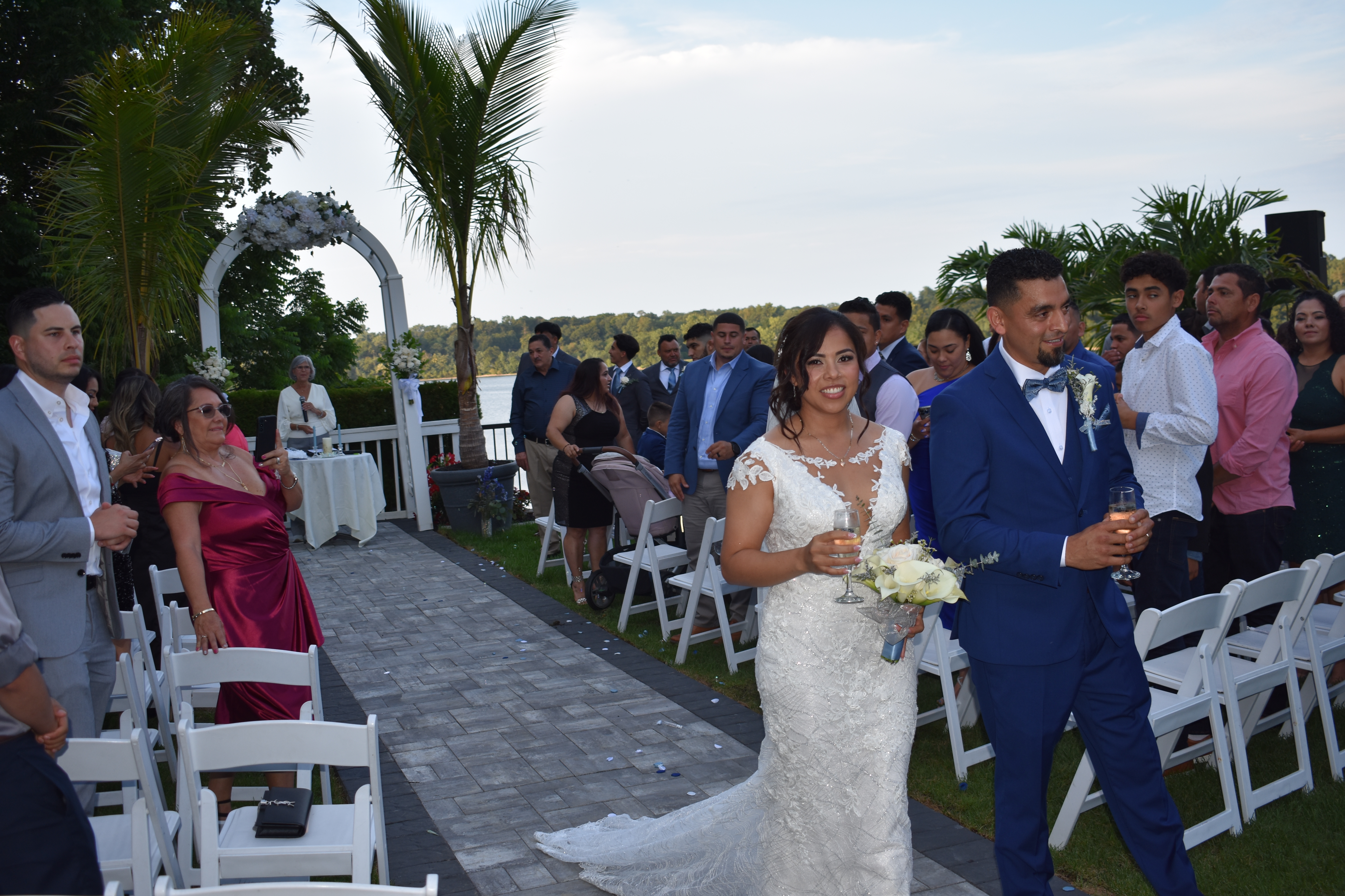 Cuando inicie las conversaciones con los novios, preguntando su historia, simpáticamente dijeron: “tenemos dos años de noviazgo y un perrito adoptado por los dos”. Ambos son muy jovenes, Kimberlyn es de Guatemala y Kevin es de Ecuador. La decoración estuvo a cargo de Irma Ramos y quedó espectacularmente hermosa; en fondos blancos con adornos en azul Navy. A la hora fijada, ya estaban en el Ballroom Factory Dance en Patchogue, gran cantidad de familiares y amigos.
